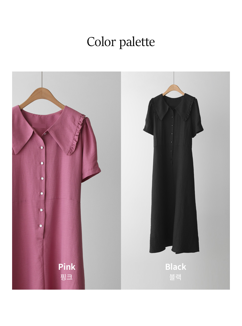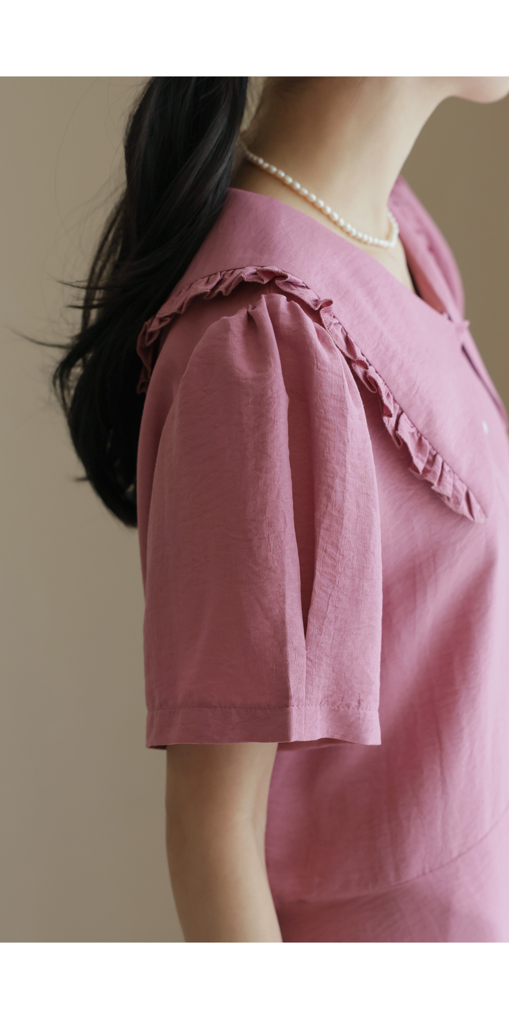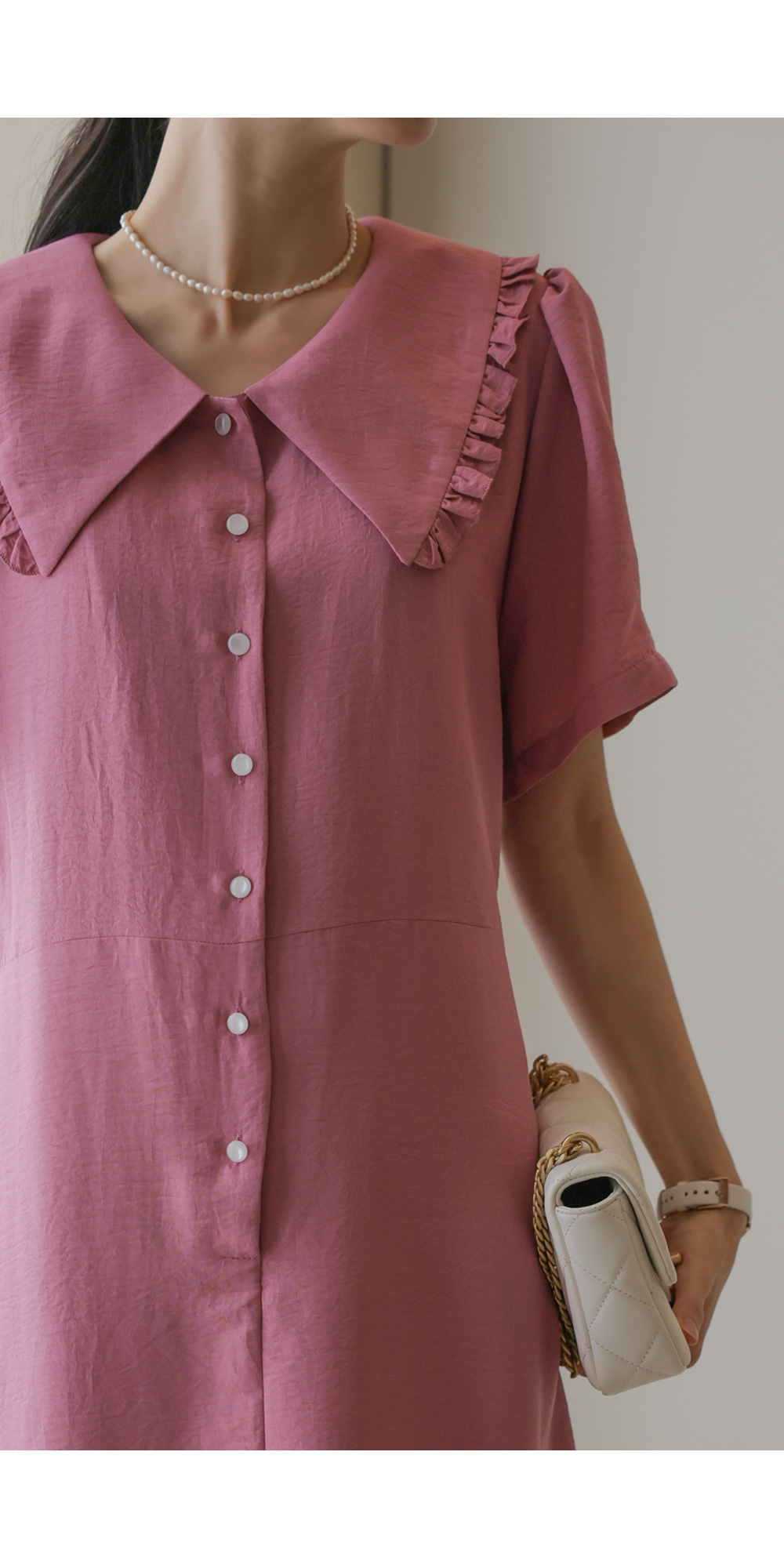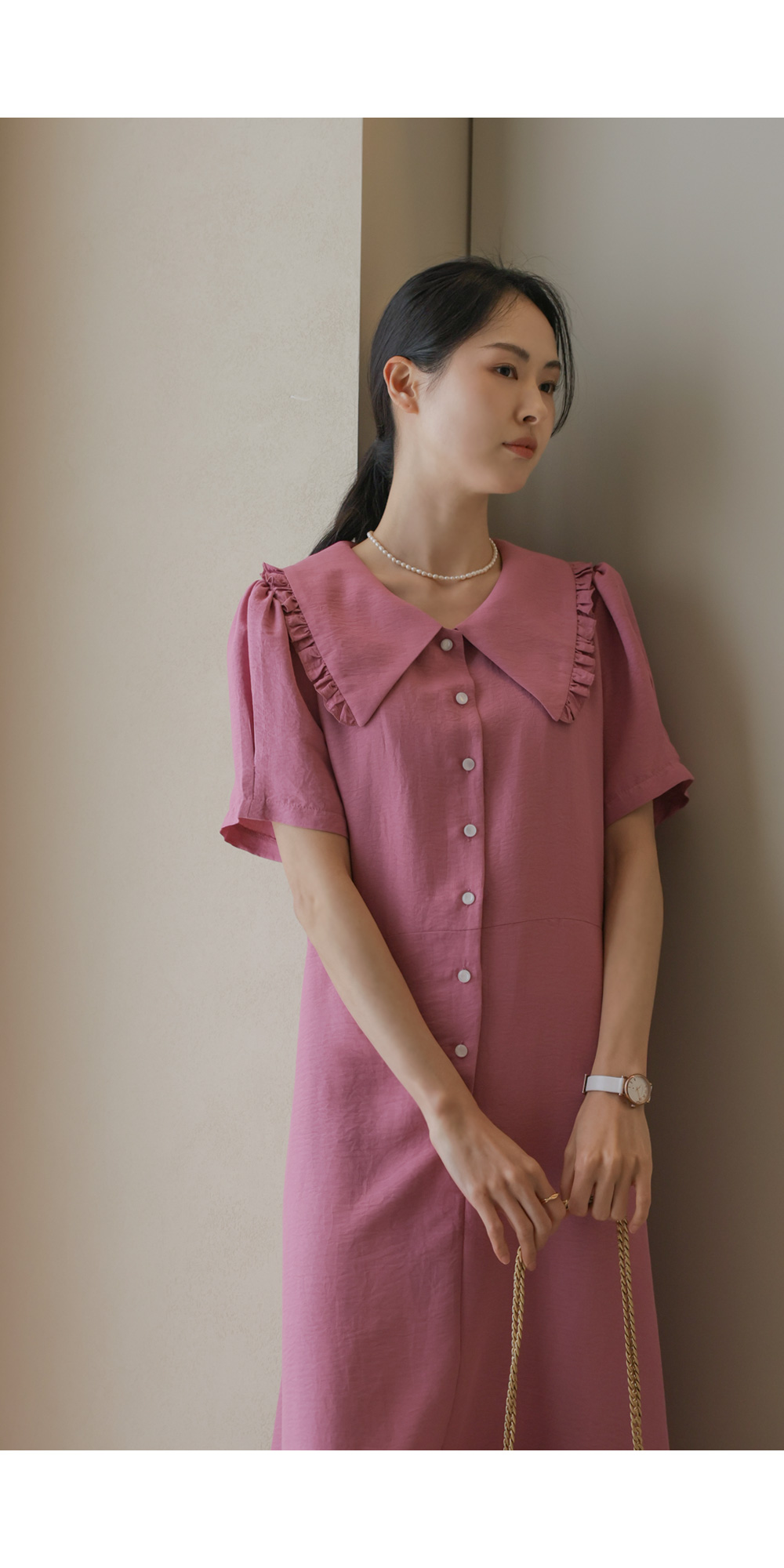 단 한 벌로도 충분히 로맨틱한 무드를 완성할 수 있는 원피스예요. 큼지막한 세일러 카라 디자인이 어깨 라인을 작아 보이게 해주고, 카라 끝단을 따라 섬세하게 더해진 프릴 디테일이 얼굴을 더욱 화사하고 입체적으로 연출해 준답니다.