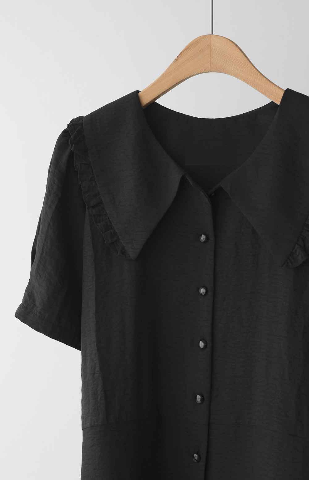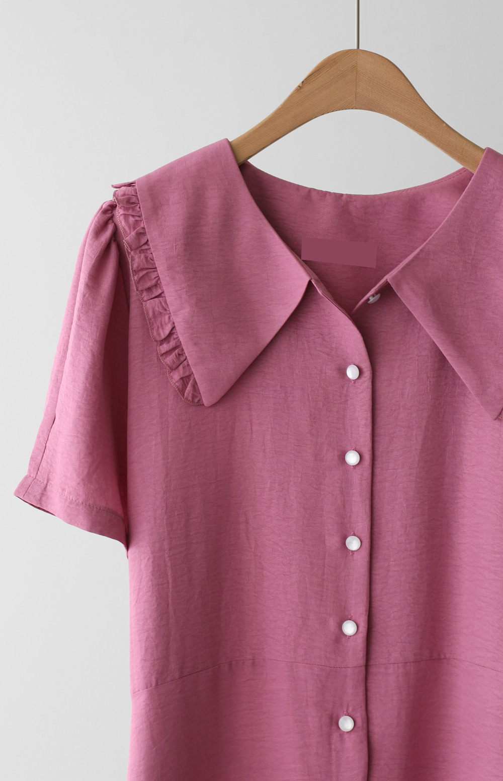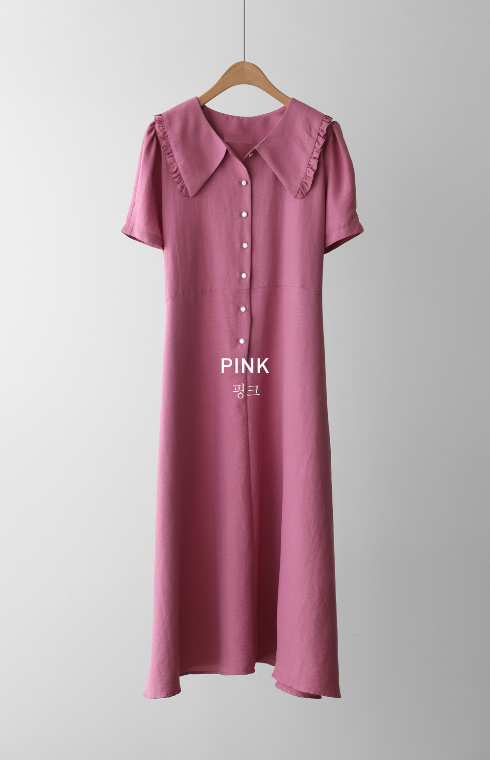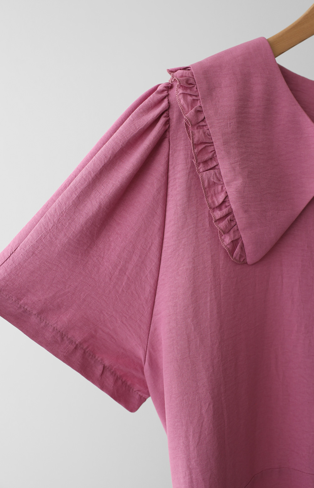 단 한 벌로도 충분히 로맨틱한 무드를 완성할 수 있는 원피스예요. 큼지막한 세일러 카라 디자인이 어깨 라인을 작아 보이게 해주고, 카라 끝단을 따라 섬세하게 더해진 프릴 디테일이 얼굴을 더욱 화사하고 입체적으로 연출해 준답니다.