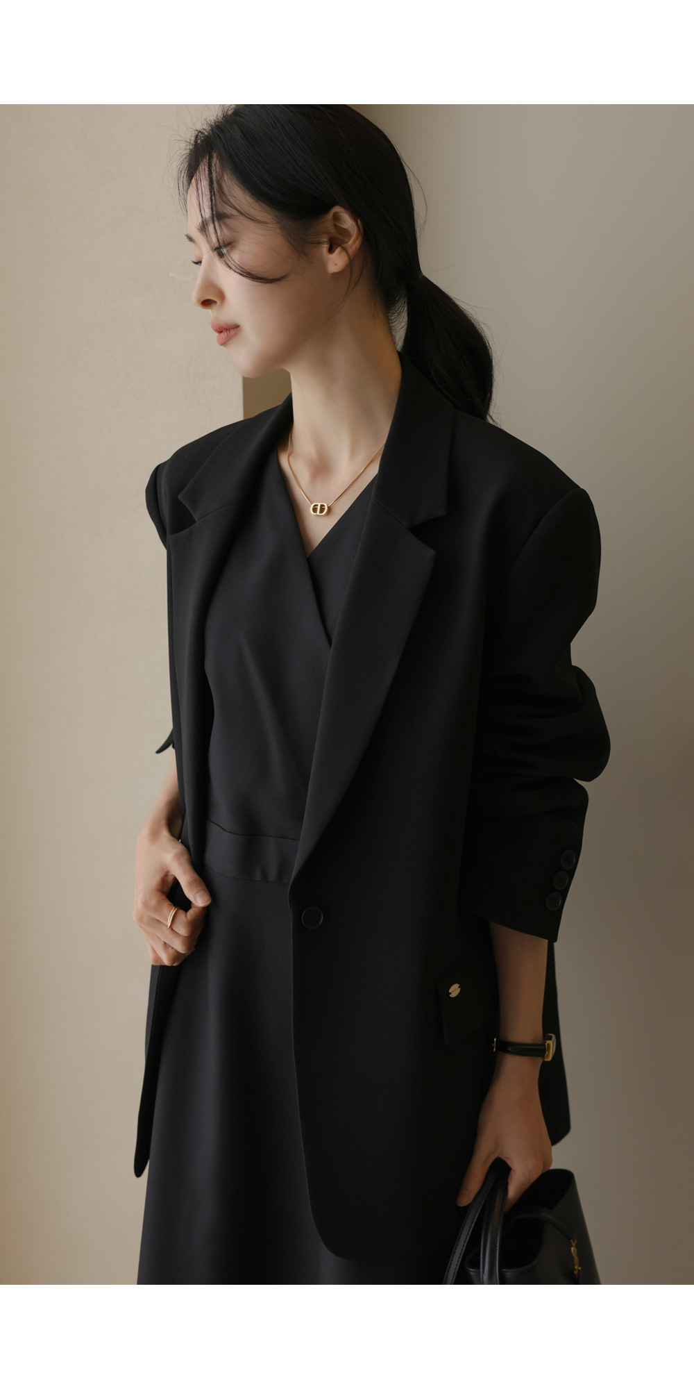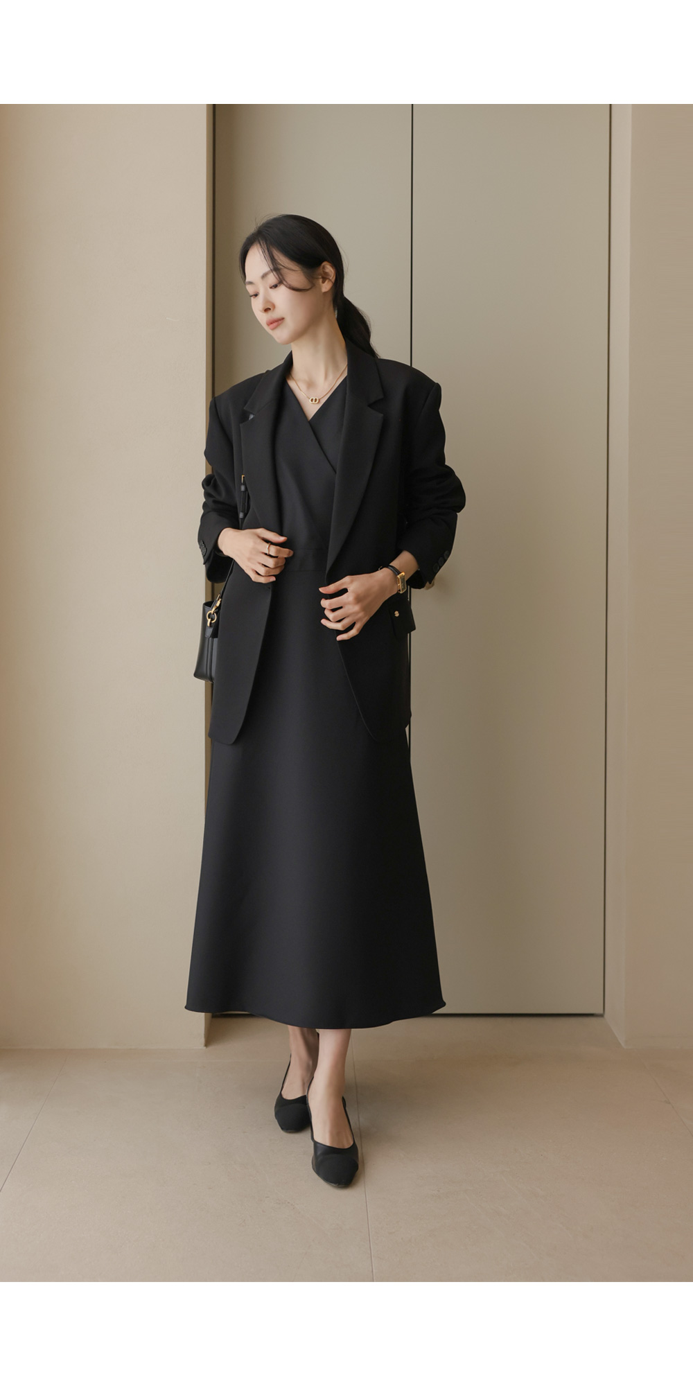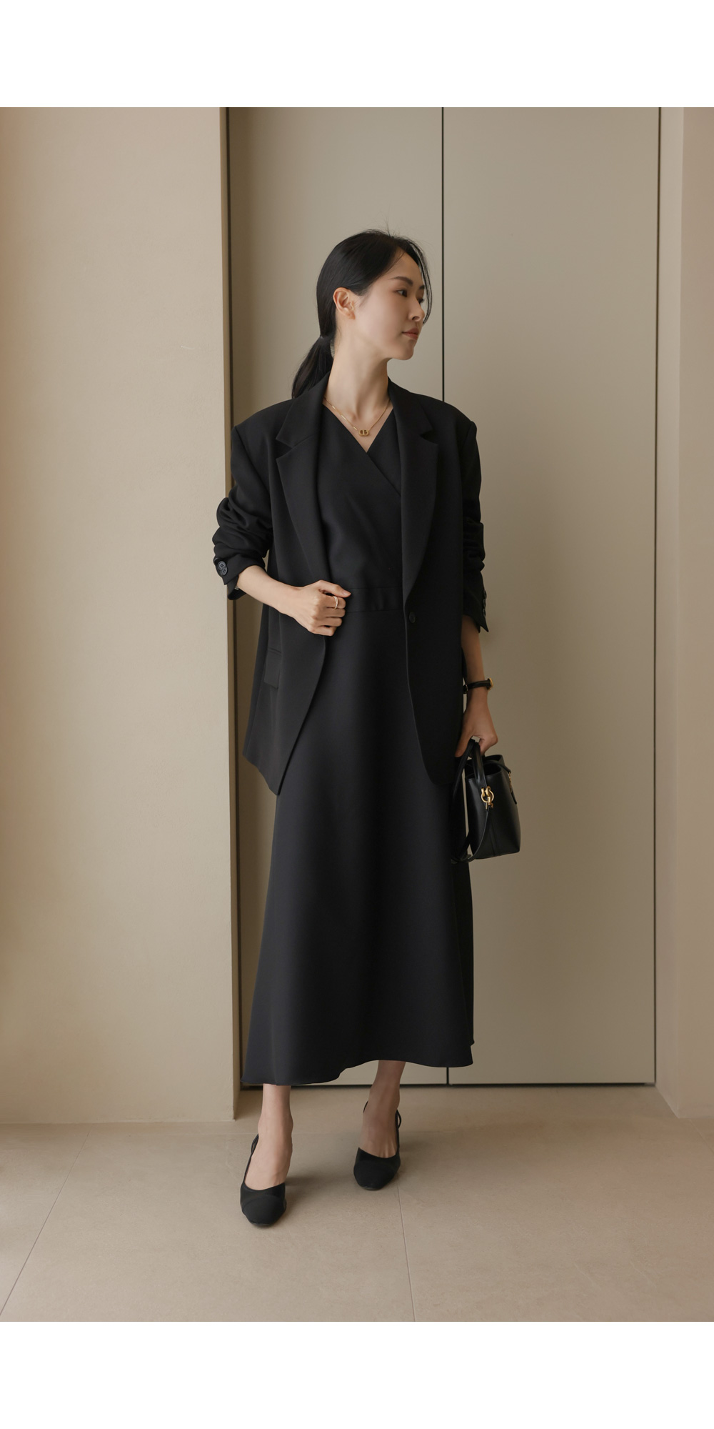 노토라 브이넥 원피스 _ 블랙