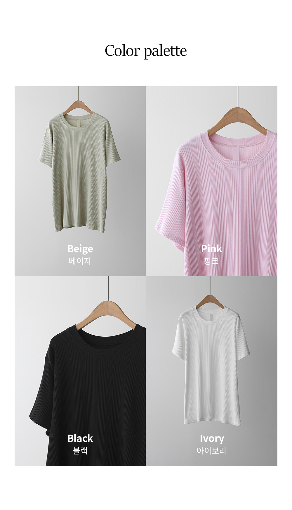 기본 티셔츠일수록 소재와 핏이 정말 중요하잖아요. 이 상품은 부드럽고 쫀쫀한 텐션감이 훌룡하답니다. 은은한 골지 결 덕분에 하나만 입어도 갖춰 입은 느낌이 나서 활용도가 정말 높으실 거예요!