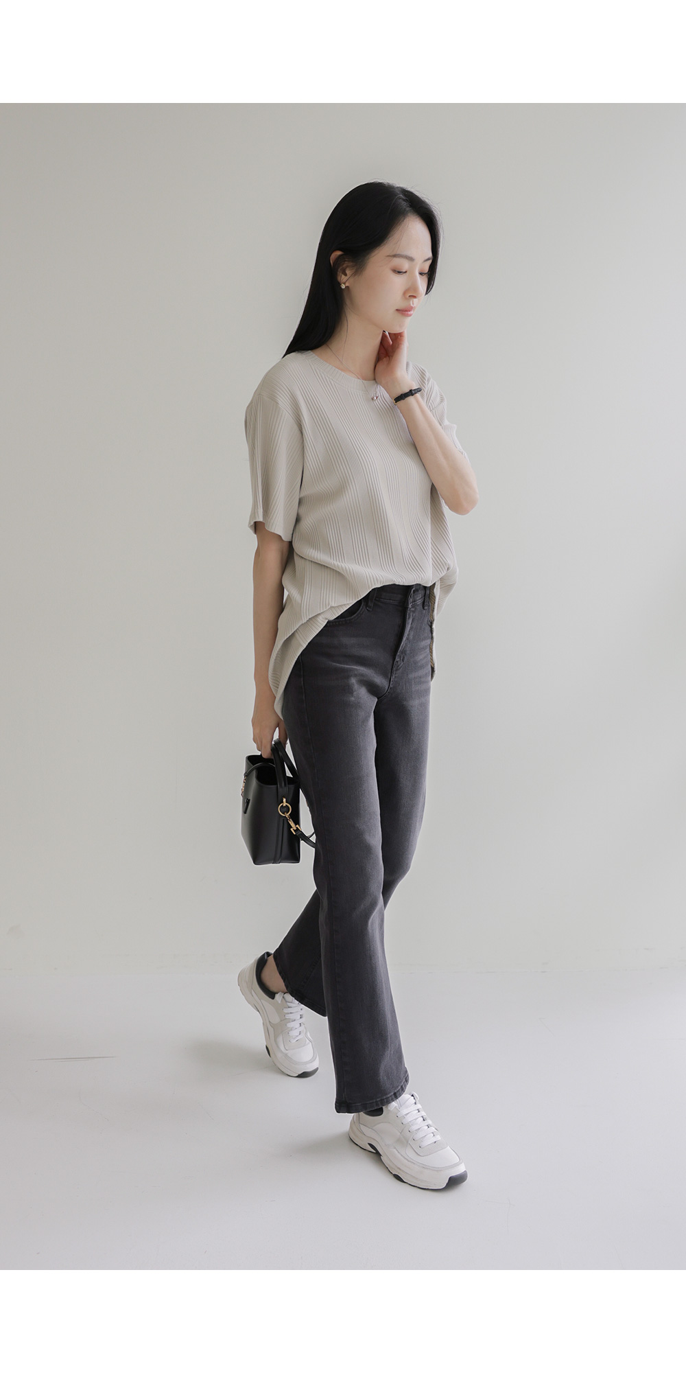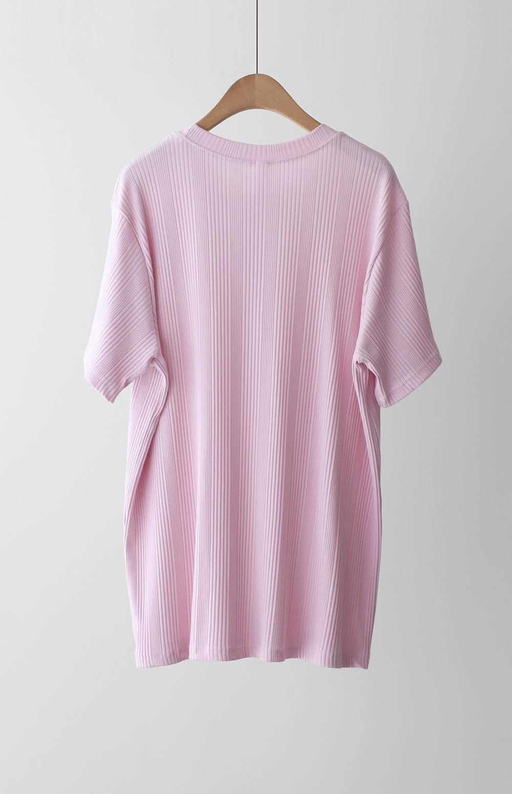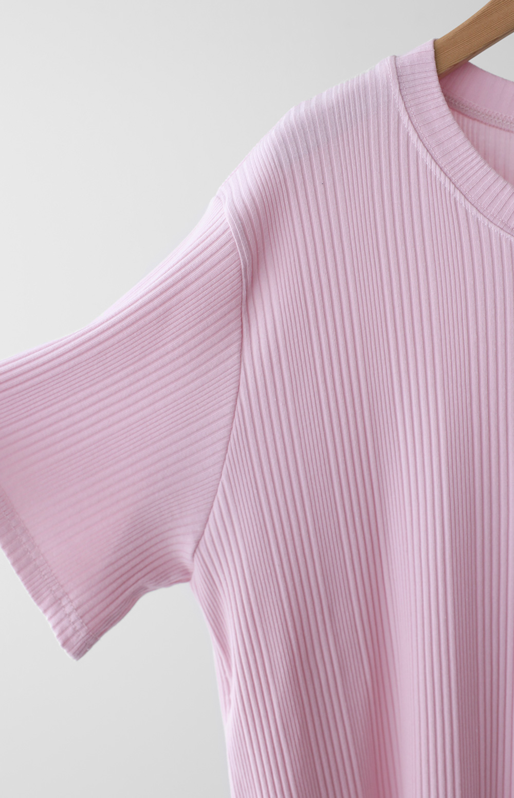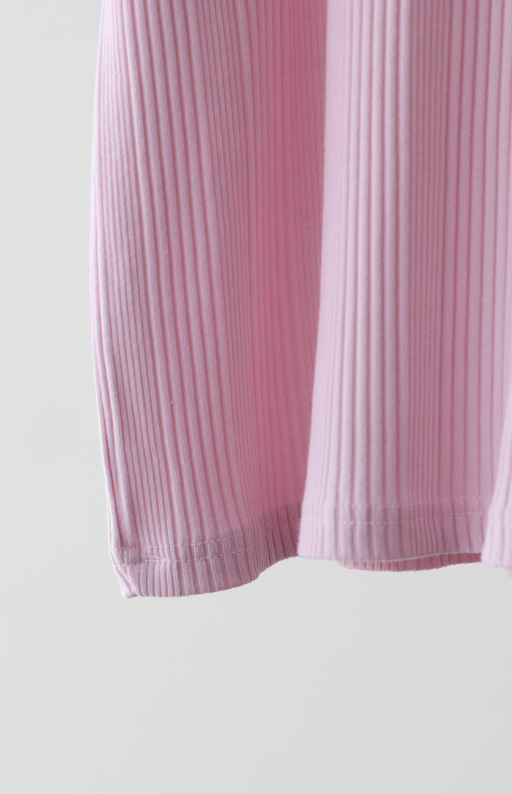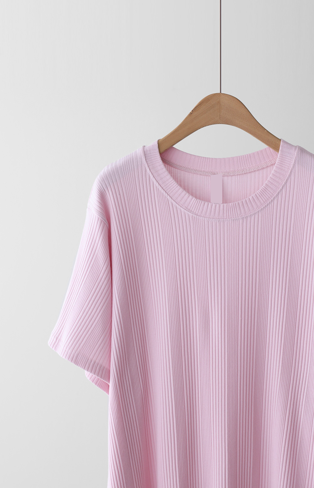 A:골지 텍스처 자체가 입체감을 주기 때문에 평면적인 티셔츠보다 속옷 라인 부각이 훨씬 덜해요. 적당히 탄탄한 두께감이 살결을 잡아주어 안정적으로 입으실 수 있어요.