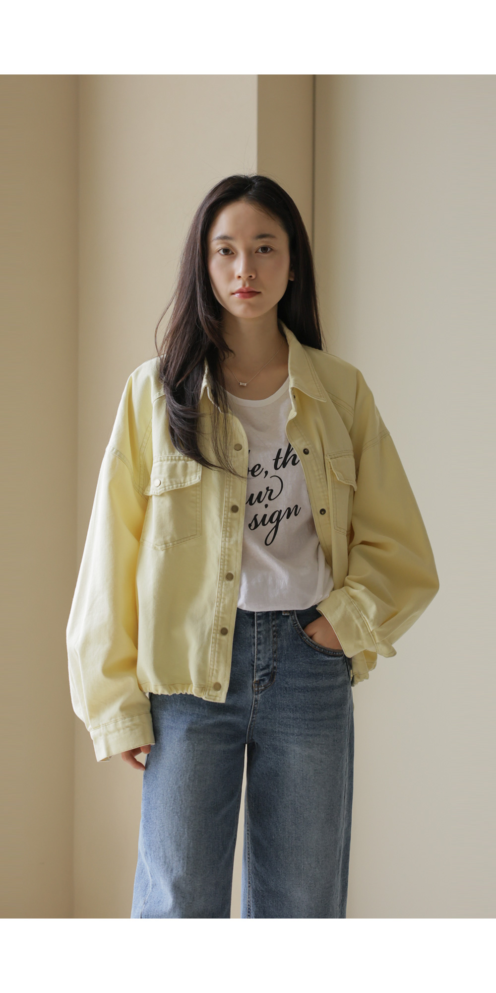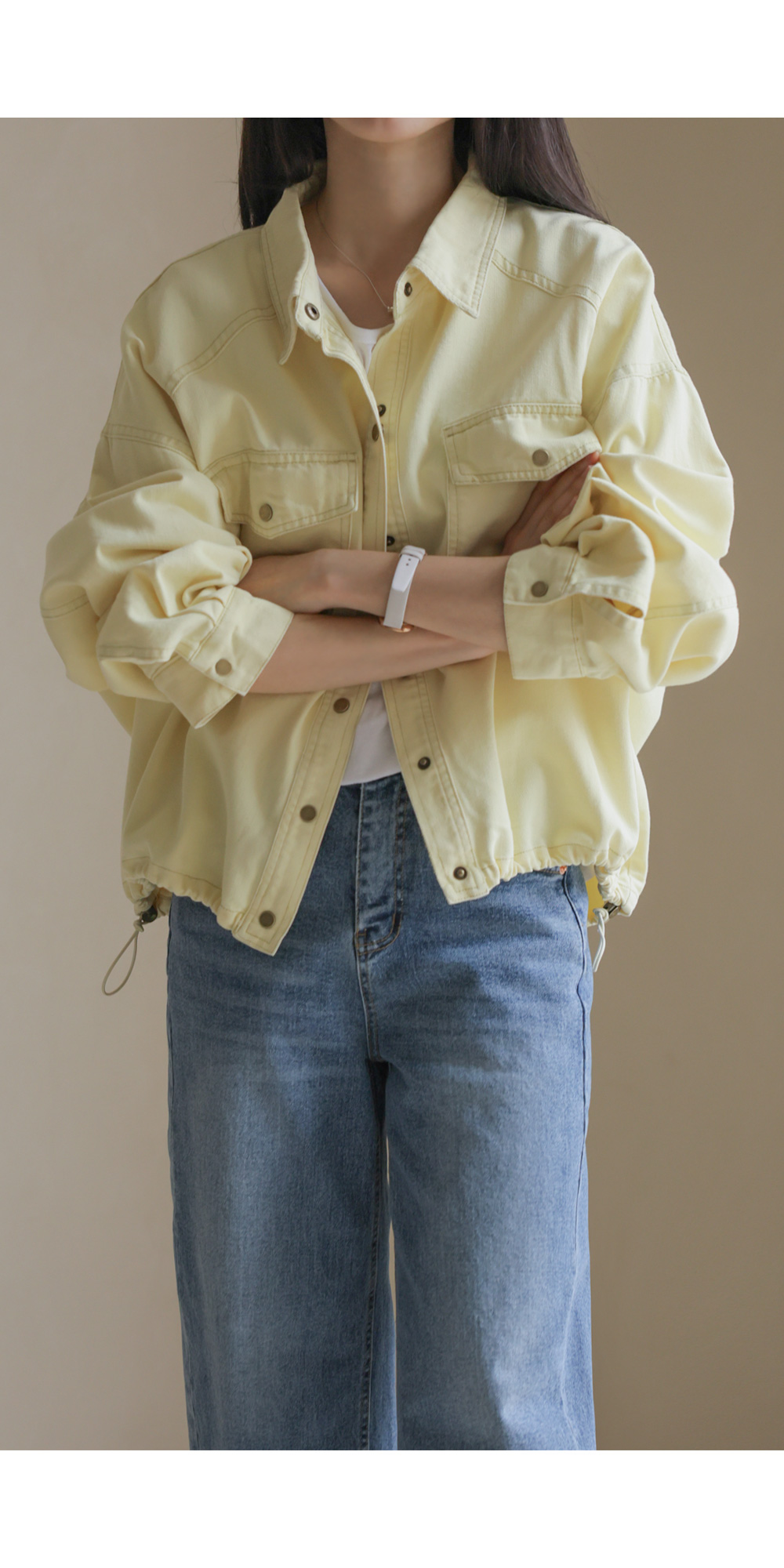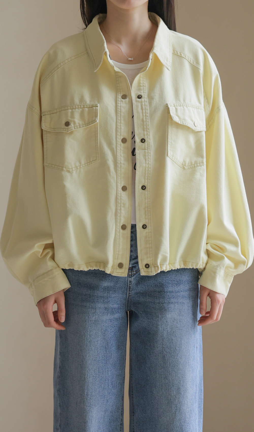간절기 시즌부터 초여름까지 가볍고 산뜻하게 즐기기 좋은 데님 자켓 아이템이에요. 옐로우, 스카이블루, 핑크, 그리고 차분한 그레이베이지까지 총 4가지의 화사하고 감각적인 컬러 구성으로 준비했답니다.