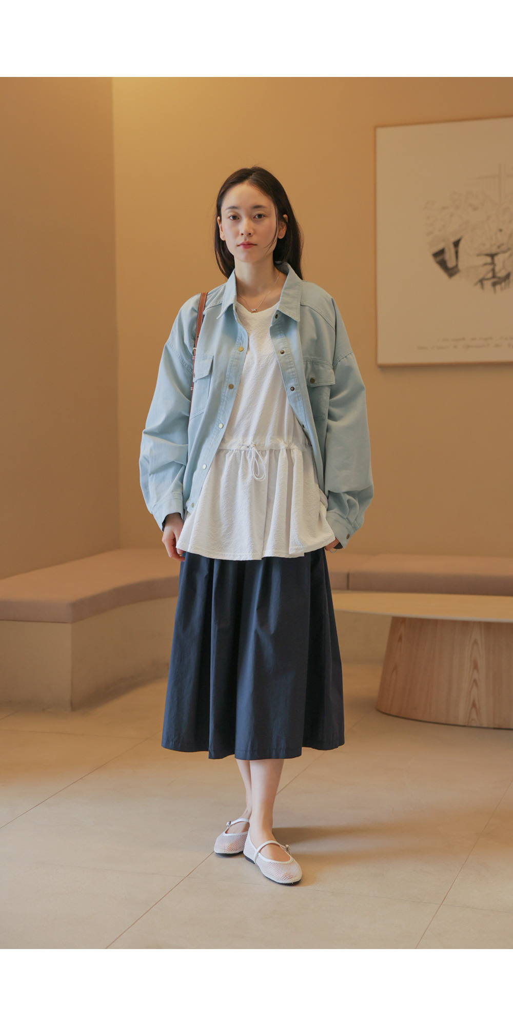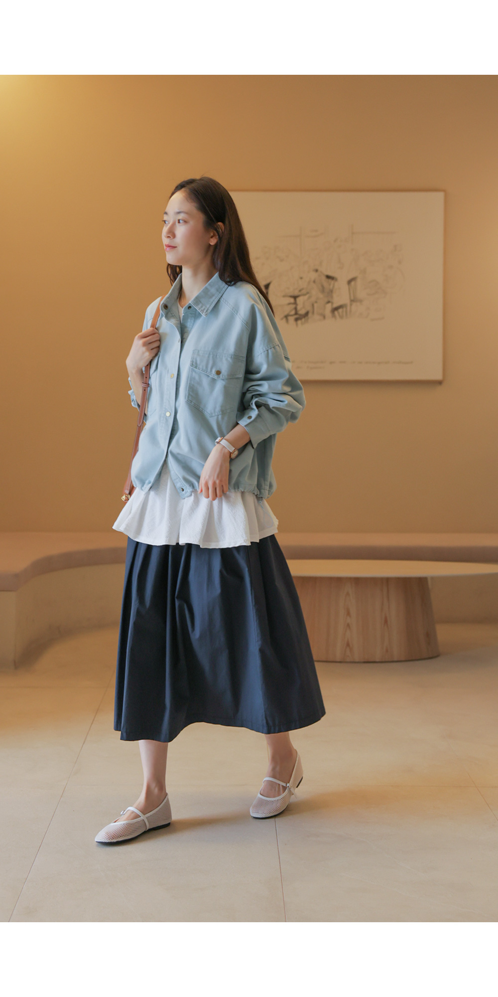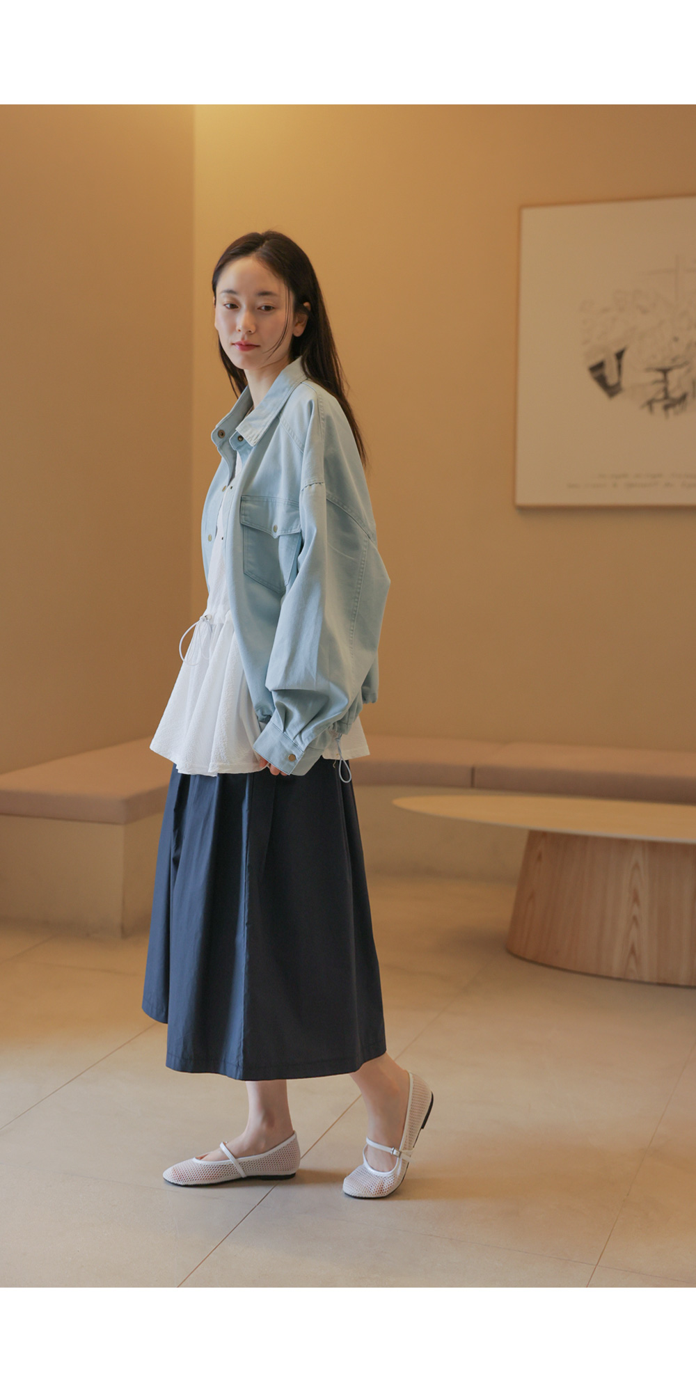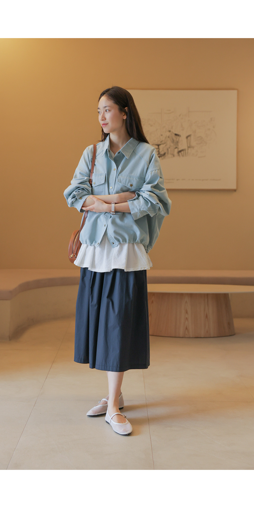 코튼 100% 소재로 피부에 닿는 느낌이 쾌적하고 자극이 없어요. 데님 특유의 탄탄한 조직감은 살아있으면서도, 얇고 유연한 소재감이 뻣뻣함 없이 부드러운 터치감을 자랑해요. 두께가 두껍지 않아 통기성이 좋고 가벼워 봄바람이 부는 날씨부터 에어컨 찬바람이 걱정되는 실내까지 폭넓게 활용하기 좋답니다. ![]() MD가 답하는 안심 Q&A