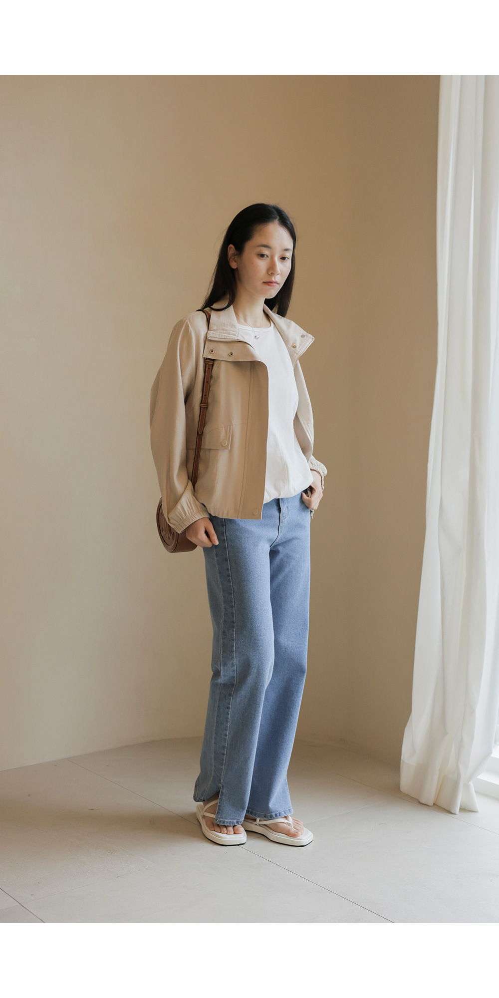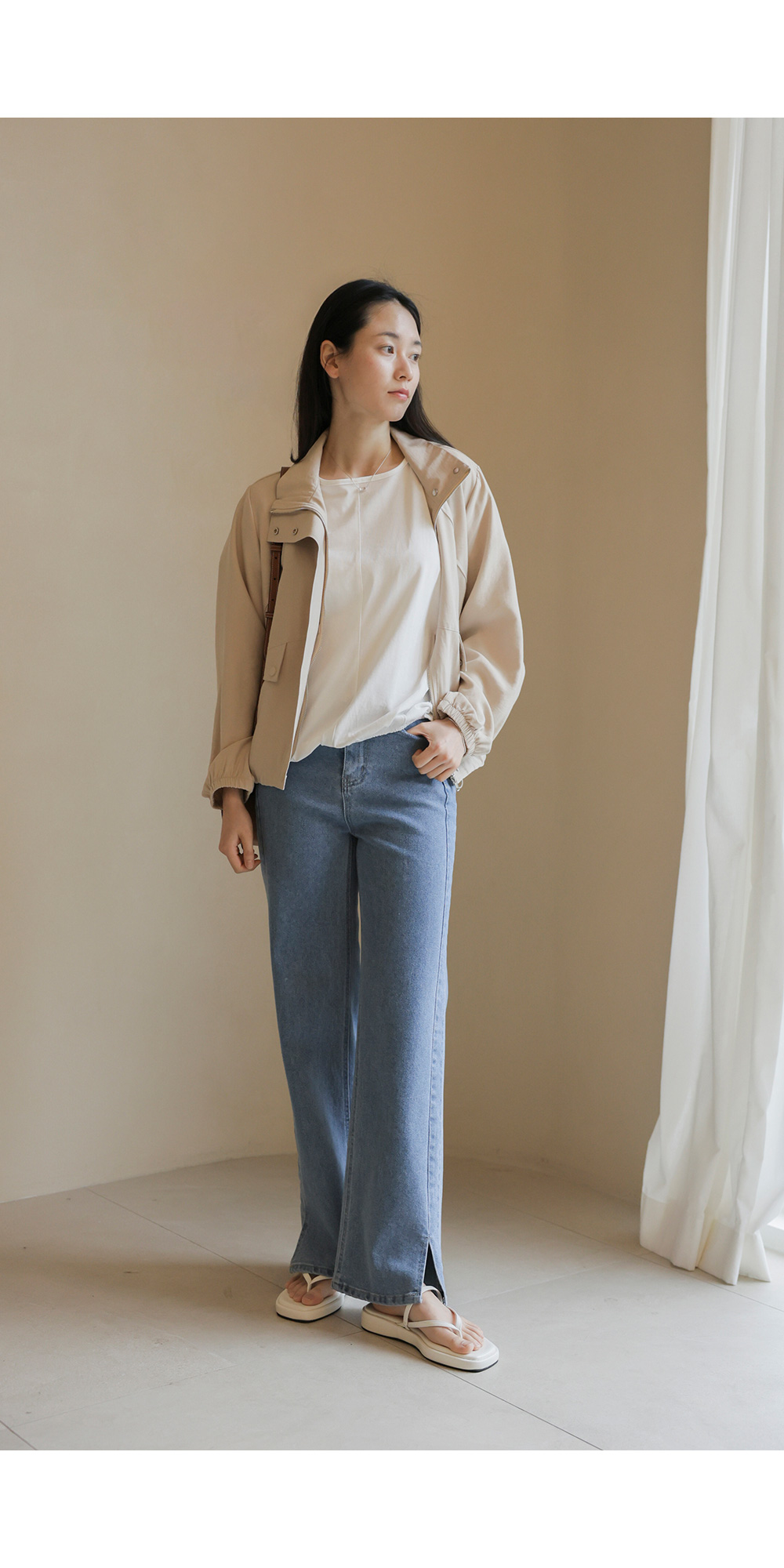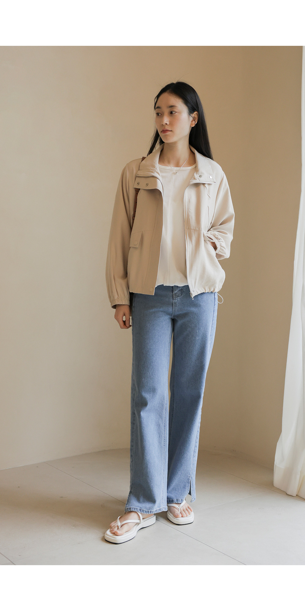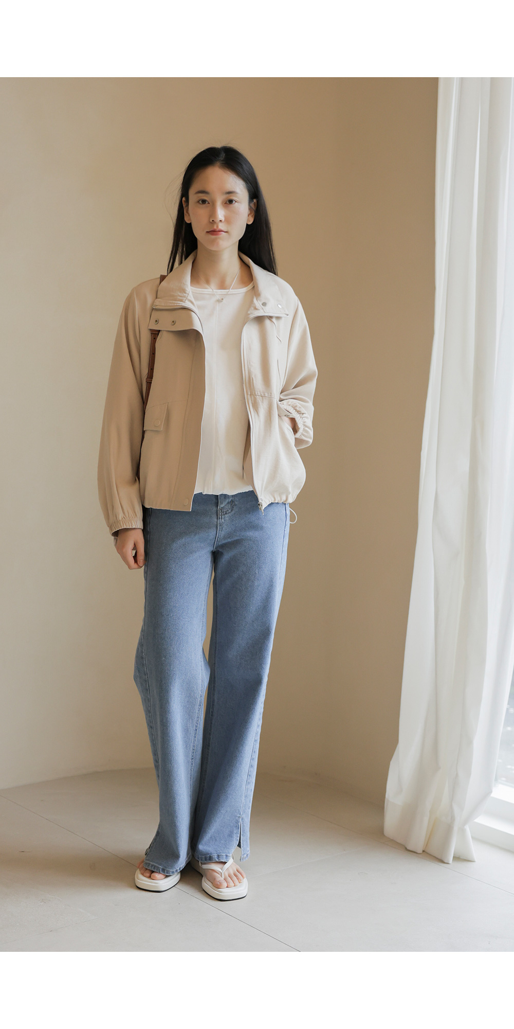 가벼운 외출부터 여행지에서의 활동적인 룩까지 두루 활용하기 좋은 아우터예요. 전체적으로 여유 있는 낙낙한 품 덕분에 이너를 챙겨 입어도 끼임 없이 편안하게 즐기기 좋구요.