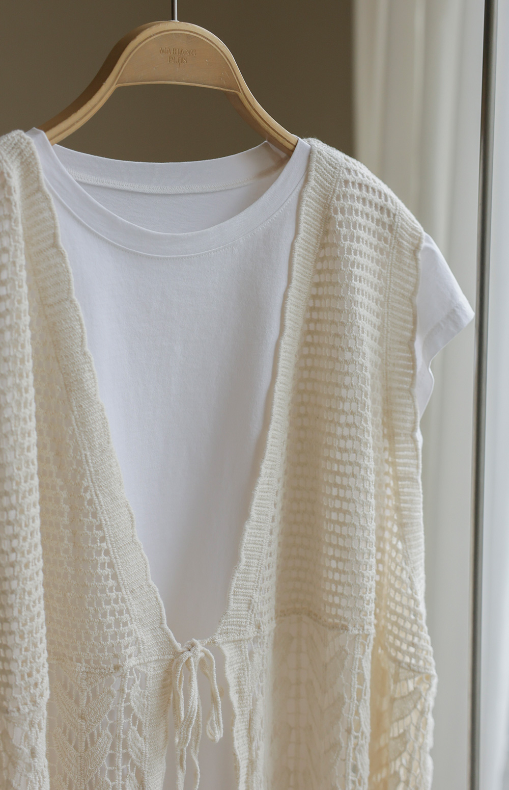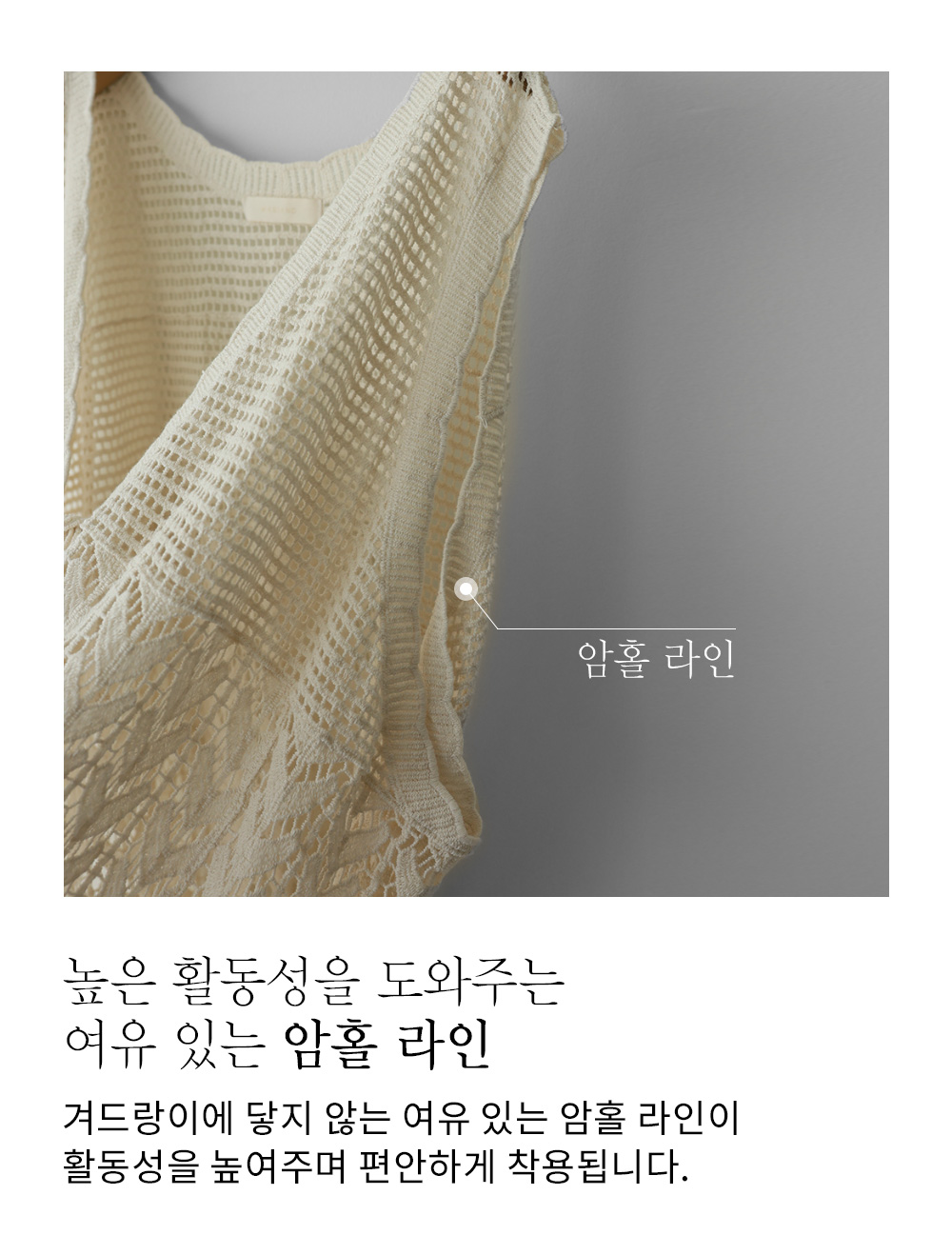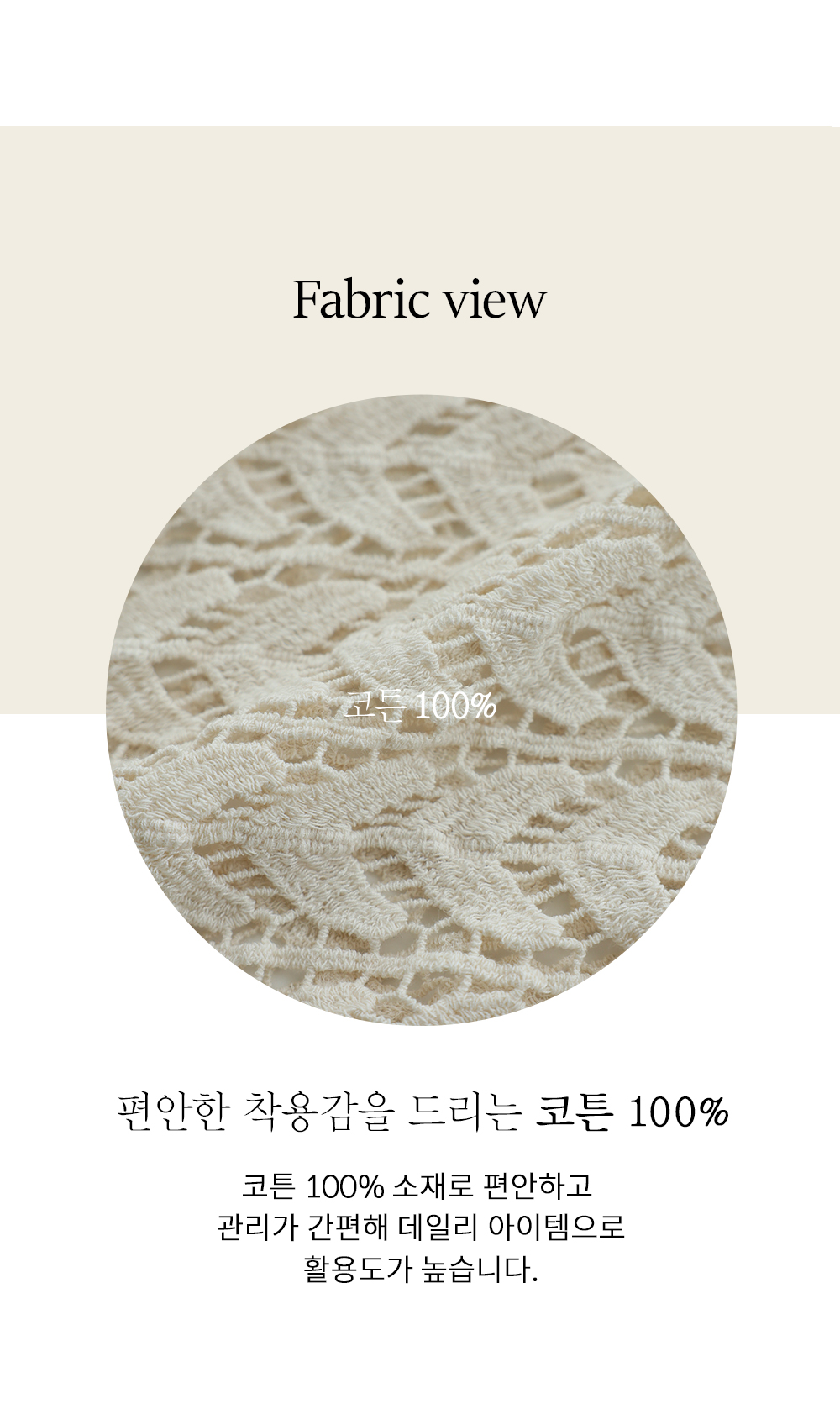 코튼 100% 원사를 사용하여 제작되었기 때문에 피부가 예민하신 분들도 자극 없이 부드러운 착용감을 느끼실 수 있어요. 가볍고 통기성이 우수하면서도 니트 조직이 탄탄하게 짜여 있어 실루엣이 쉽게 흐트러지지 않구요. 적당한 두께감 덕분에 레이어드했을 때 답답함이 없으며, 은은한 짜임 사이로 이너의 컬러가 살짝 비치듯 어우러져 더욱 고급스러운 룩을 완성해 준답니다. ![]() ![]() MD가 답하는 안심 Q&A