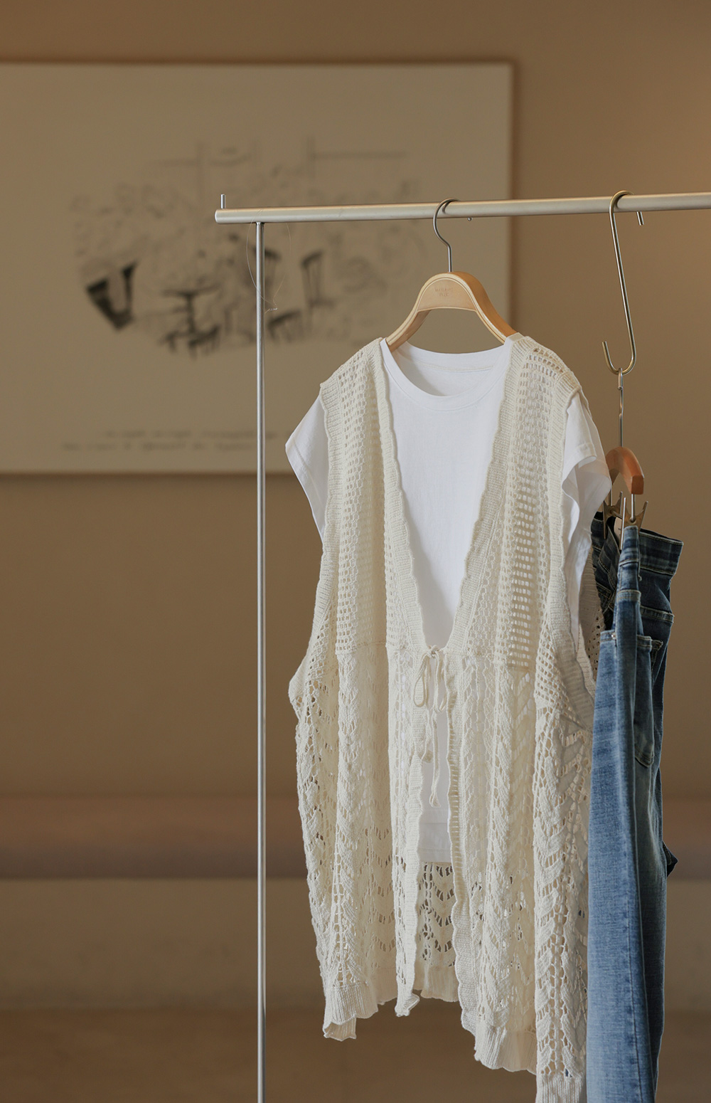 계절이 바뀌는 시기에 코디의 완성도를 높여줄 니트 조끼 아이템을 준비했어요. 부드럽고 차분한 베이지 컬러 단일 구성으로 어떤 하의나 이너와도 이질감 없이 어우러지구요.