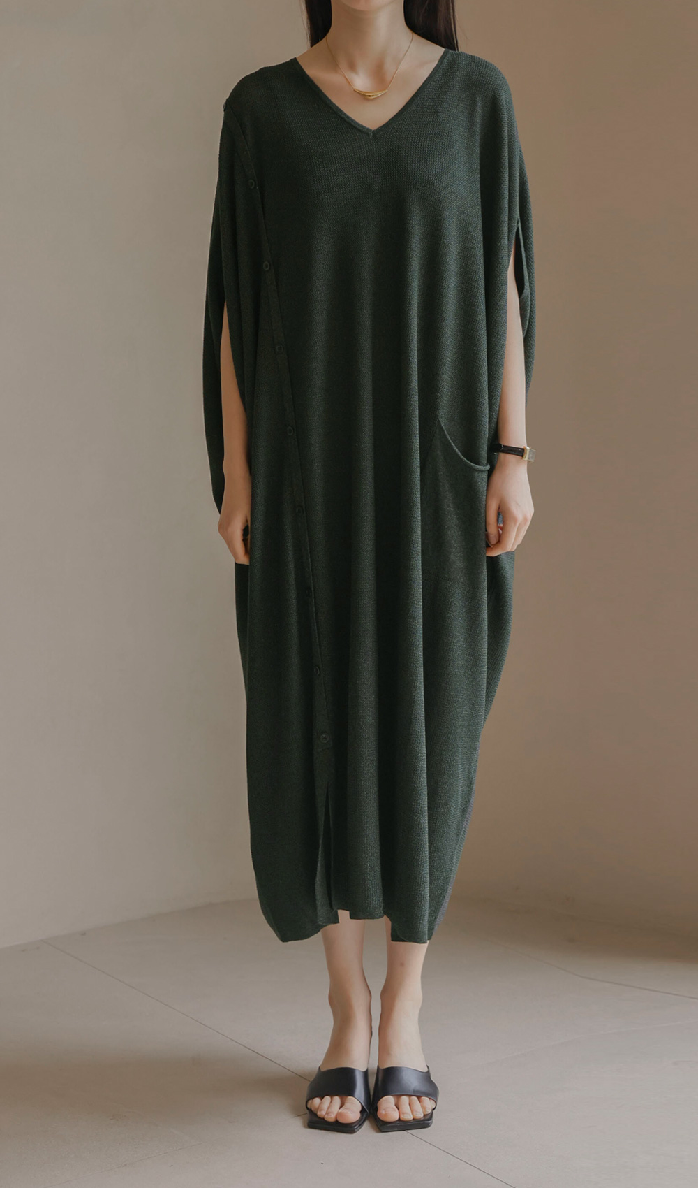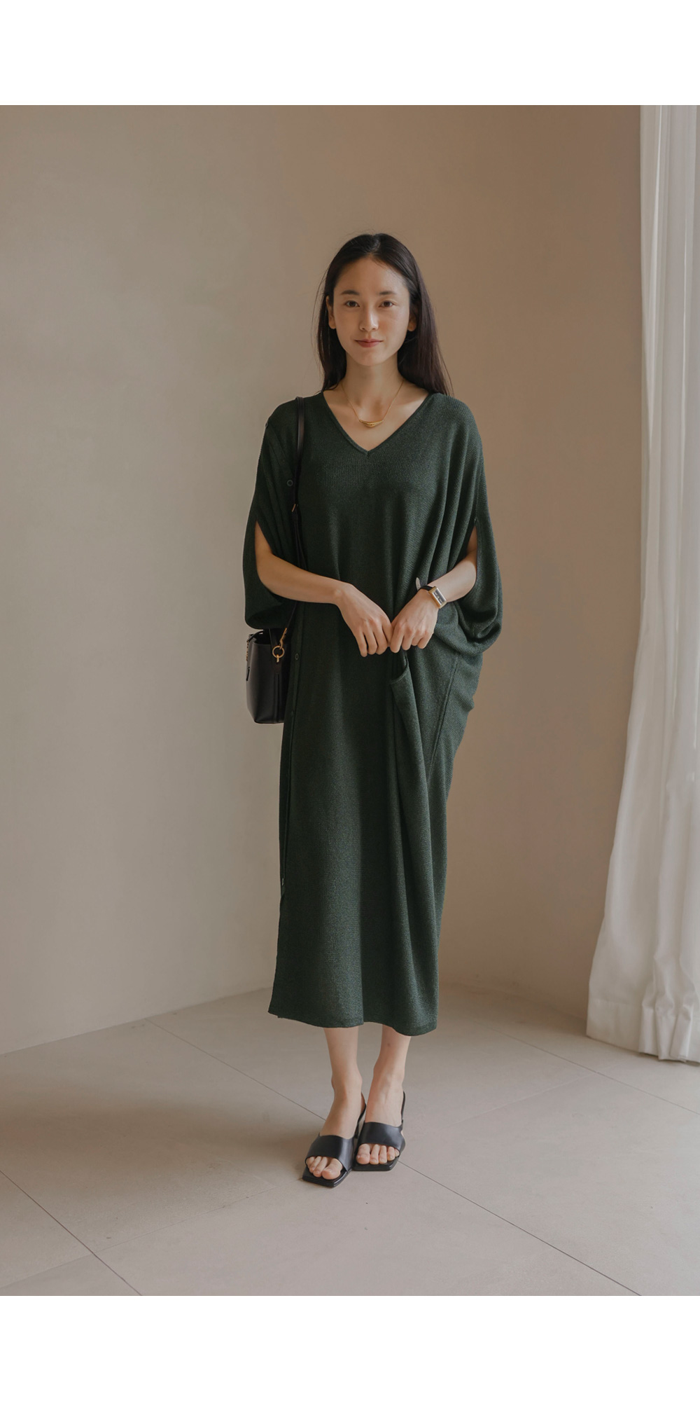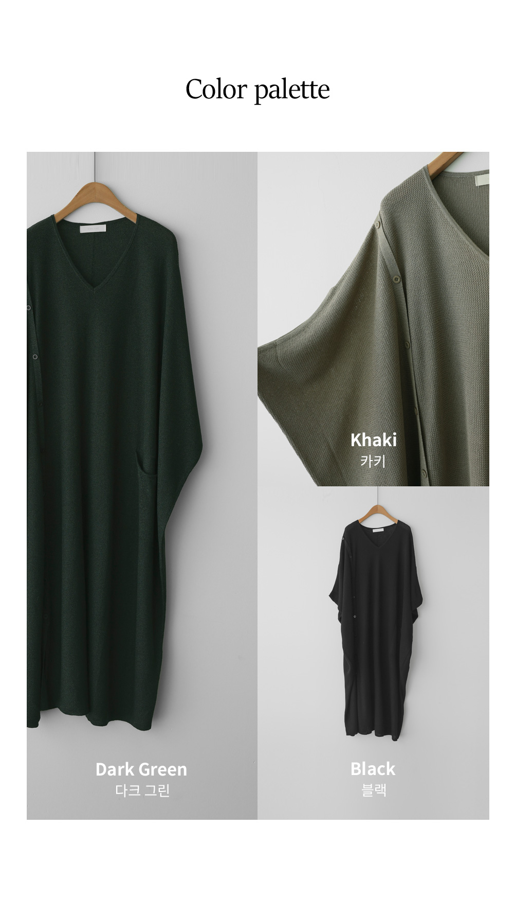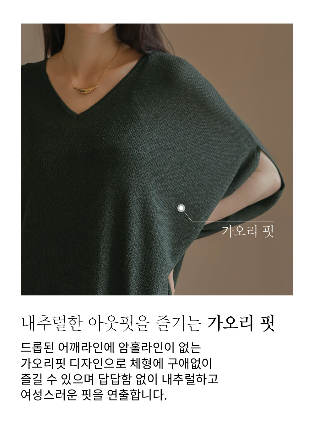 한 장만 툭 걸쳐도 드레시한 분위기가 완성되는 니트 원피스예요. 여유로운 사이즈 덕분에 라인이 드러날까 걱정하셨던 분들도 안심하고 즐기실 수 있구요.