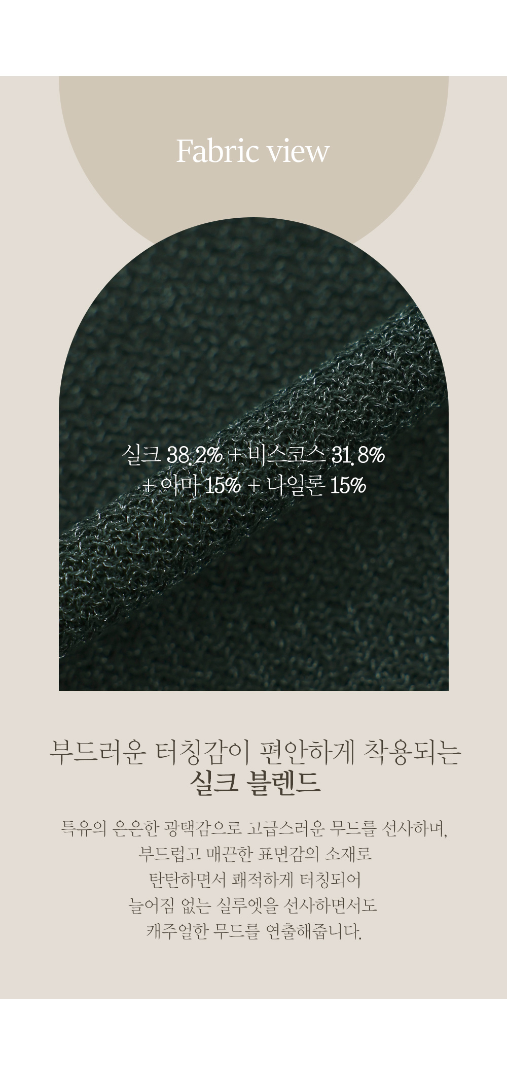 실크와 비스코스가 블렌딩되어 피부에 닿는 느낌이 정말 매끄럽고 시원해요. 여기에 아마와 나일론이 더해져 적당한 힘을 잡아주기 때문에 형태가 흐트러지지 않구요. 은은한 광택이 감도는 텍스처 덕분에 한눈에 봐도 고급스러움이 느껴지는 프리미엄 소재예요. ![]() ![]() MD가 답하는 안심 Q&A