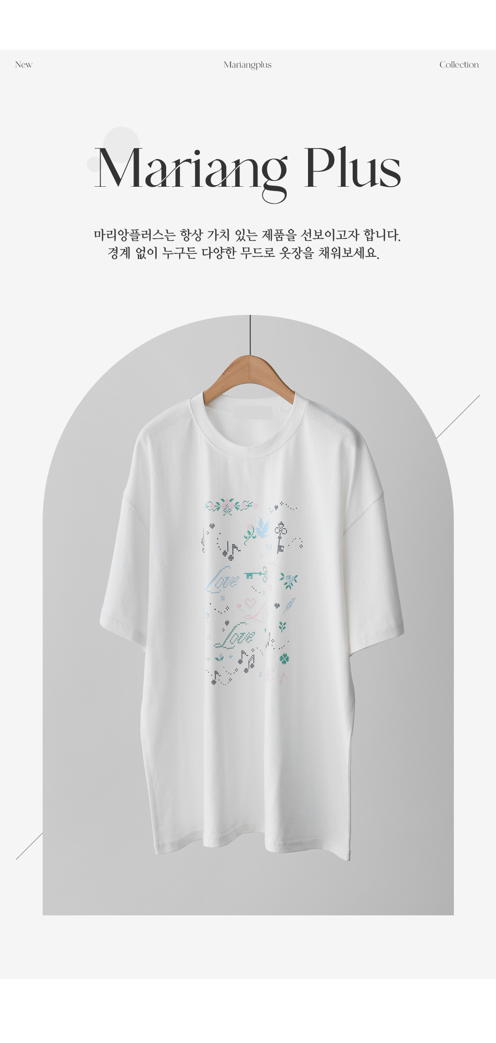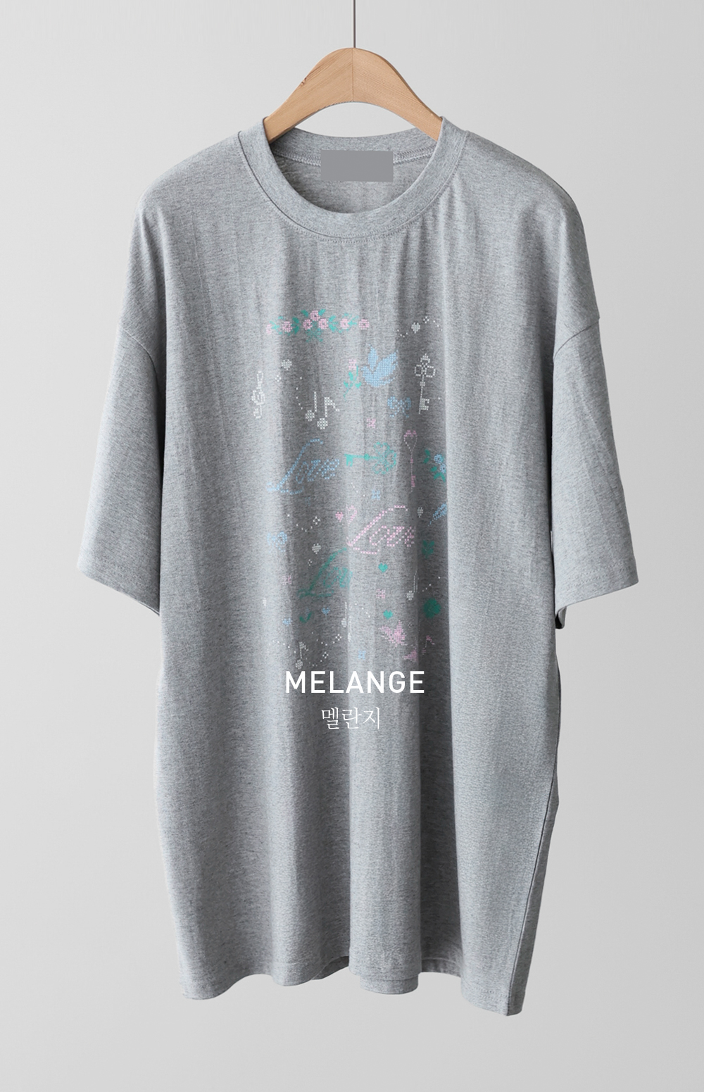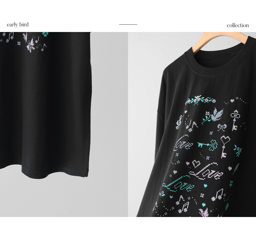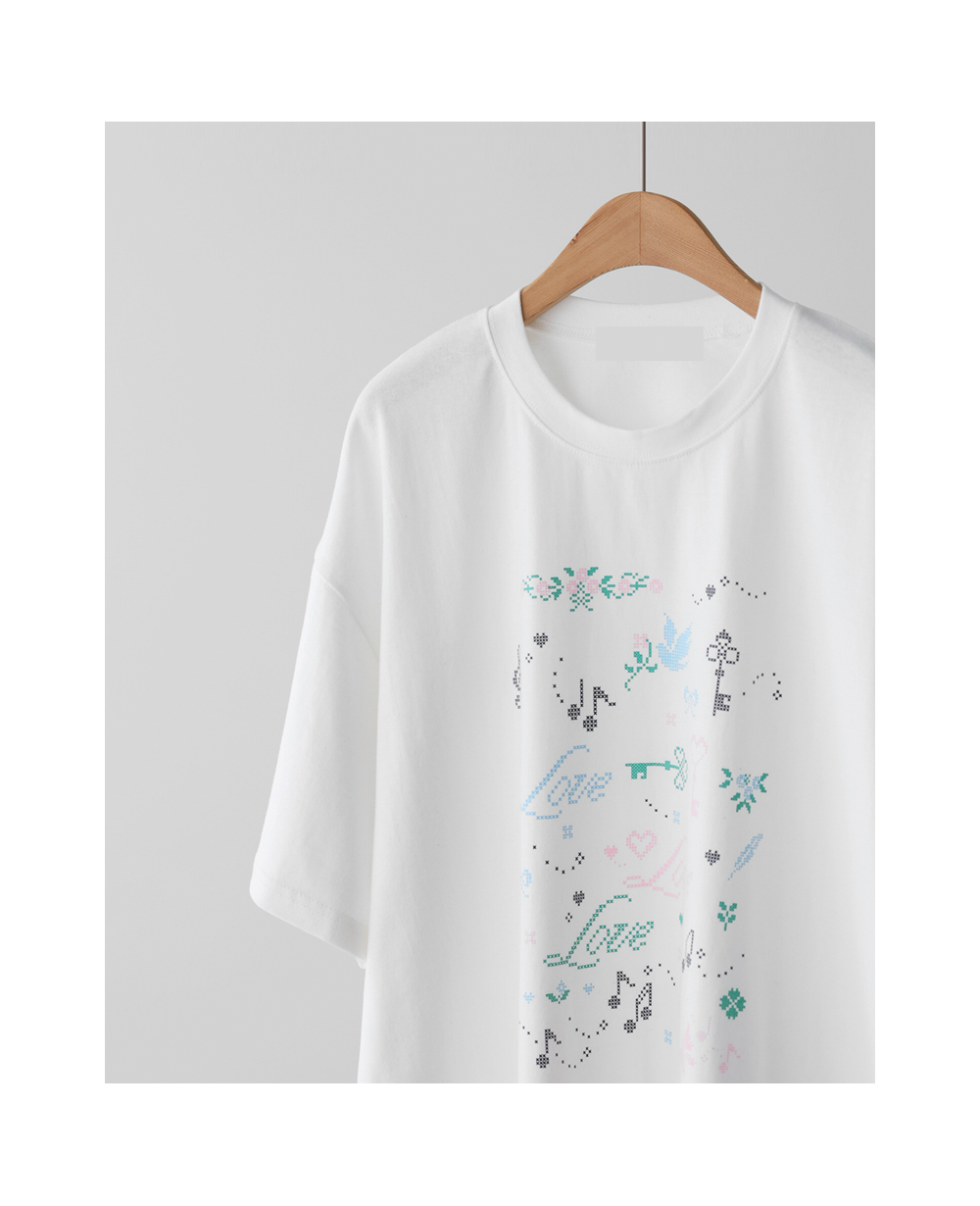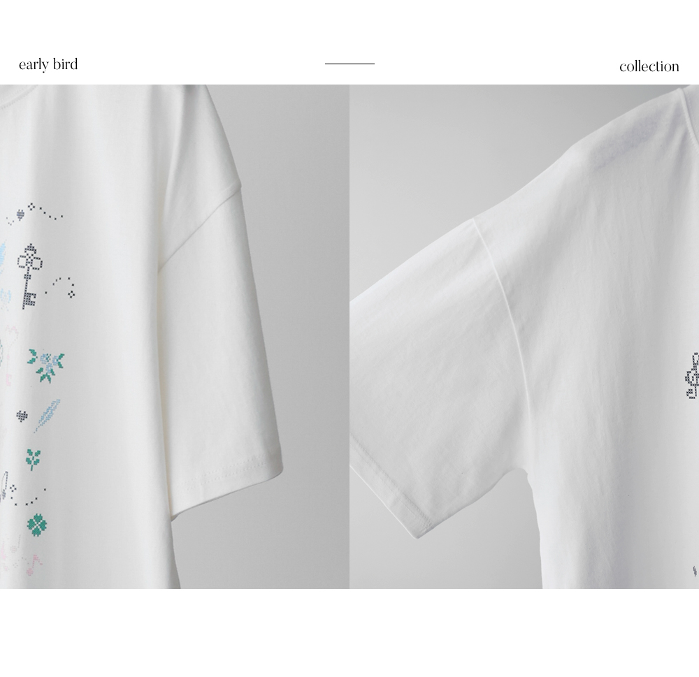 전면의 도트 그래픽이 자칫 밋밋할 수 있는 티셔츠 룩에 세련된 위트를 더해, 하나만으로도 충분히 스타일리시한 존재감을 뽐낼 수 있다는 점이 가장 큰 매력으로 다가갈 거예요.