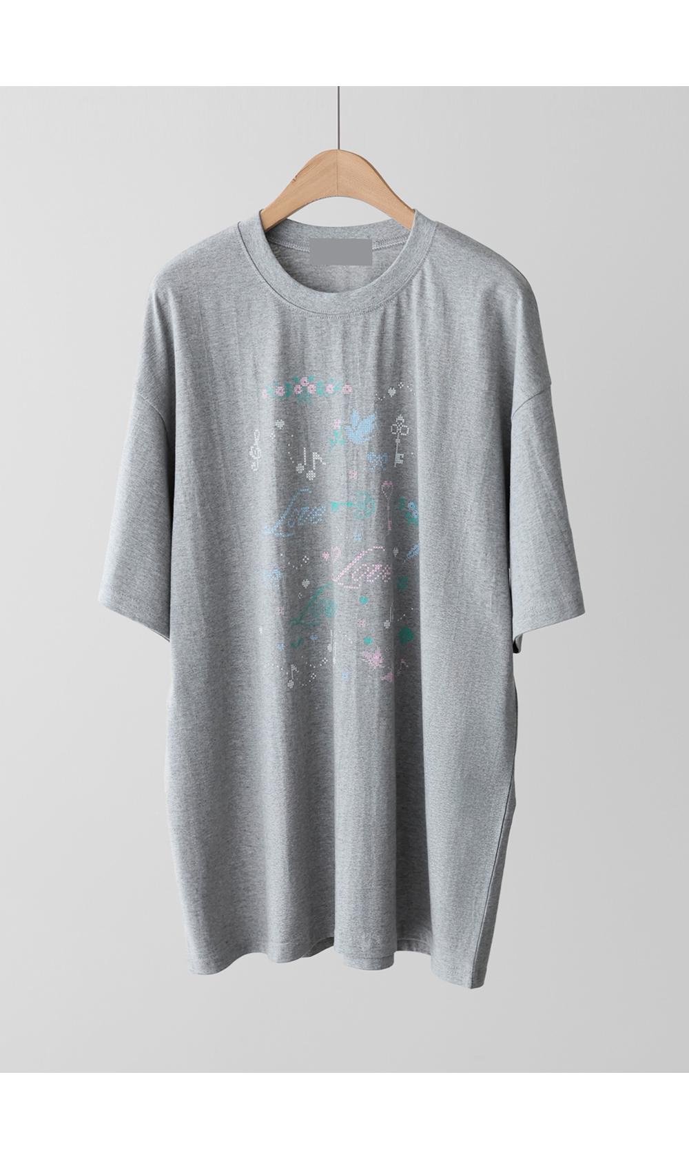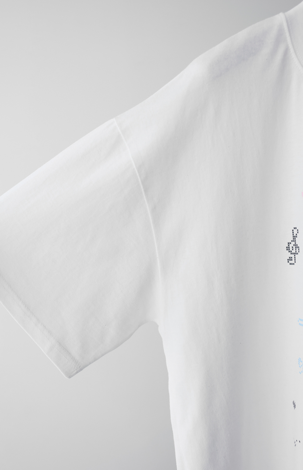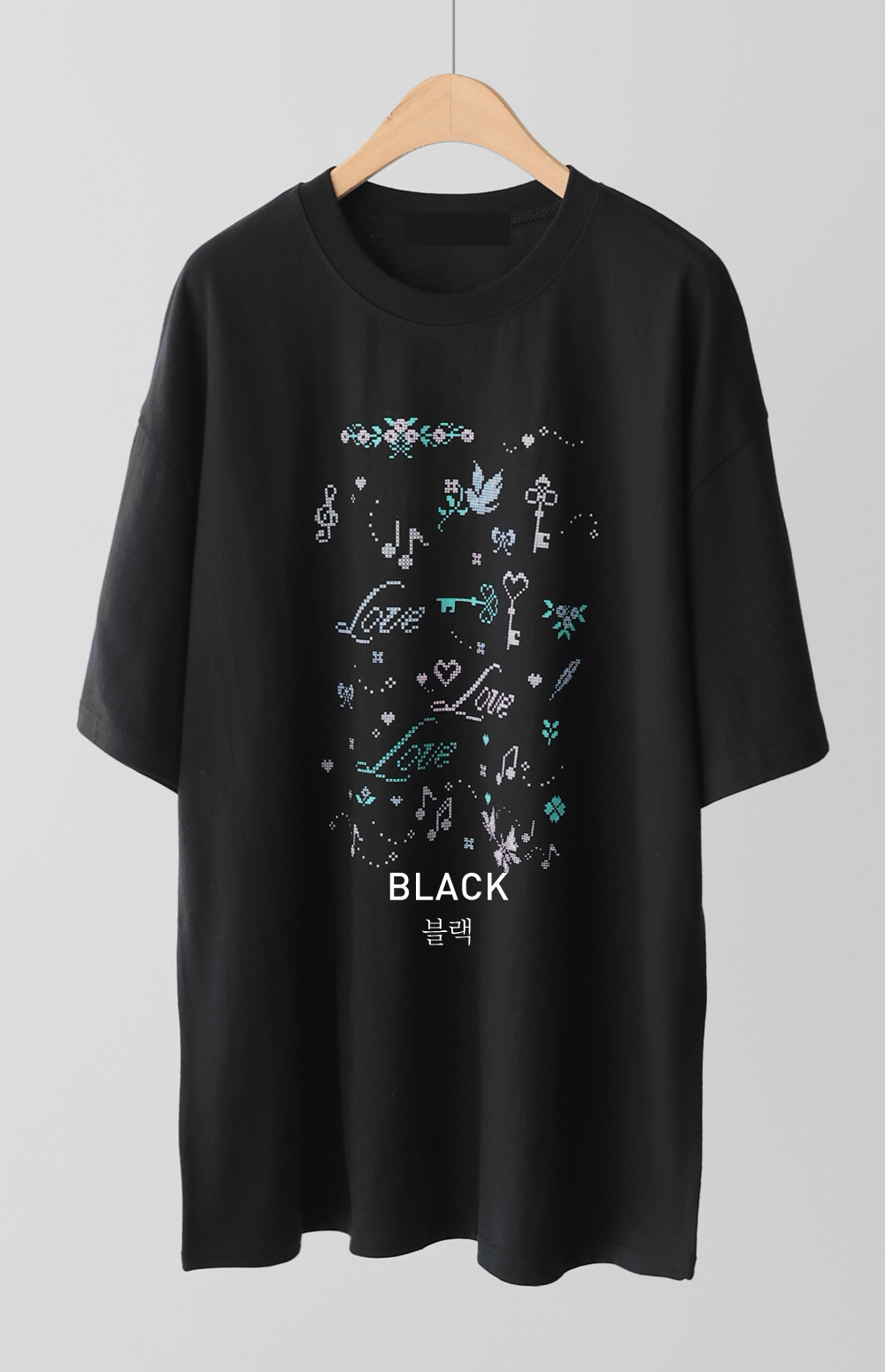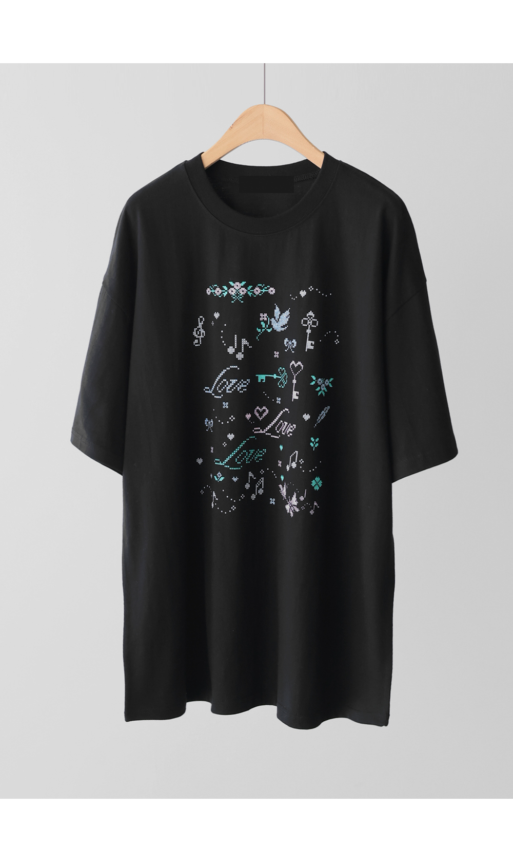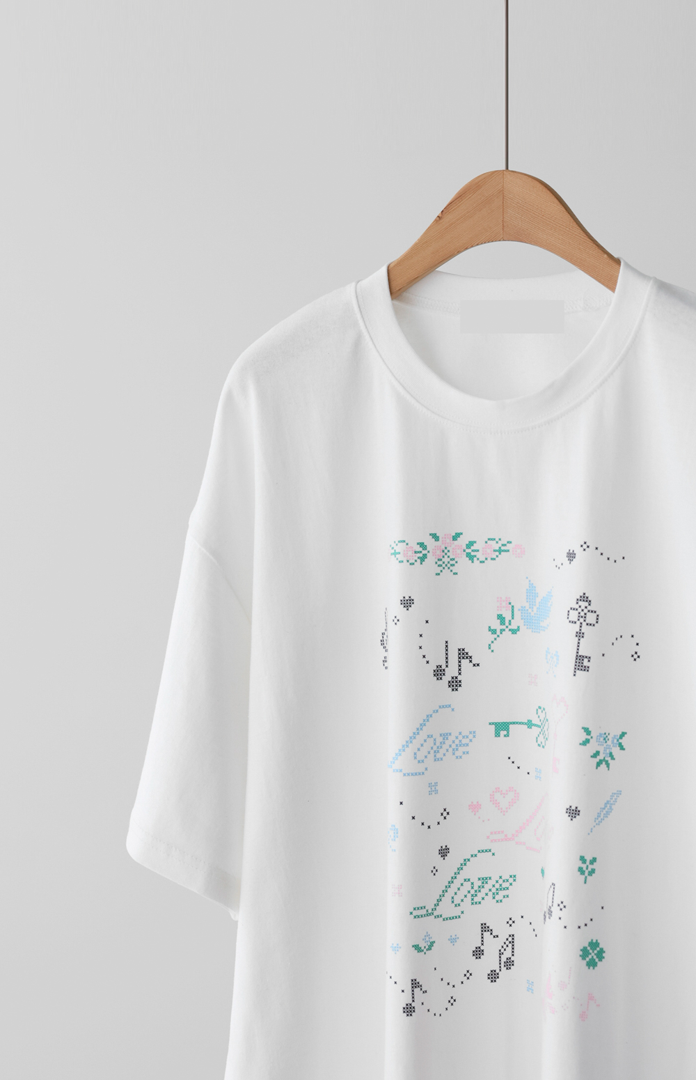 전면의 도트 그래픽이 자칫 밋밋할 수 있는 티셔츠 룩에 세련된 위트를 더해, 하나만으로도 충분히 스타일리시한 존재감을 뽐낼 수 있다는 점이 가장 큰 매력으로 다가갈 거예요.