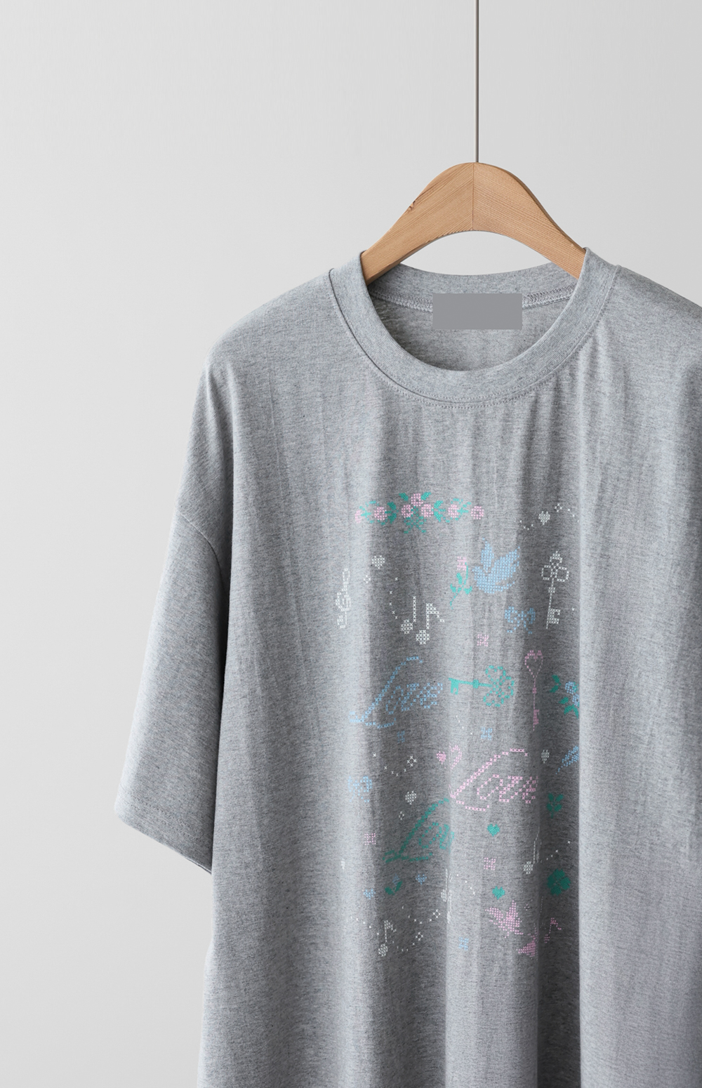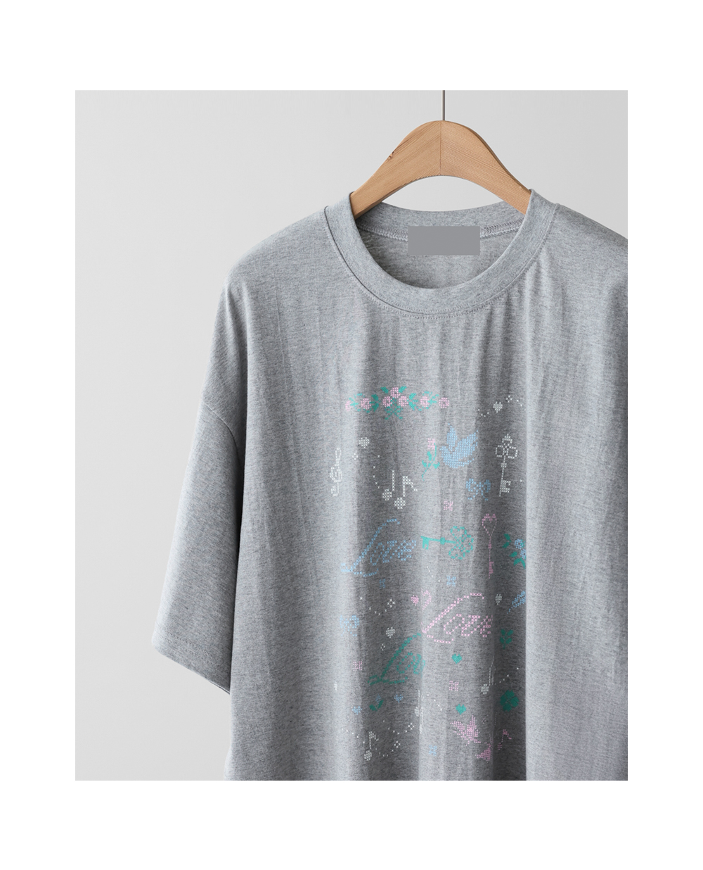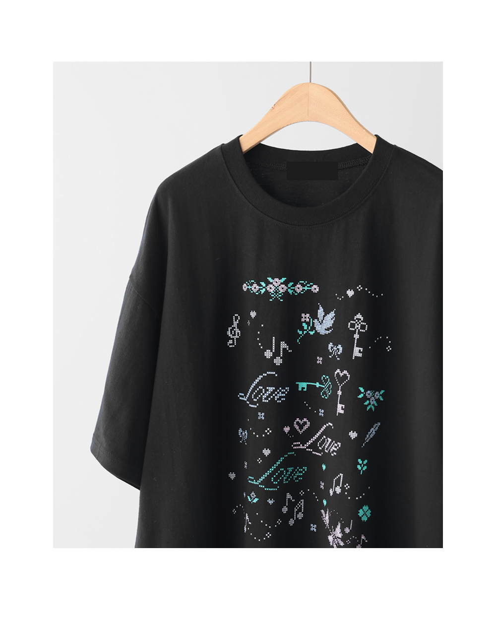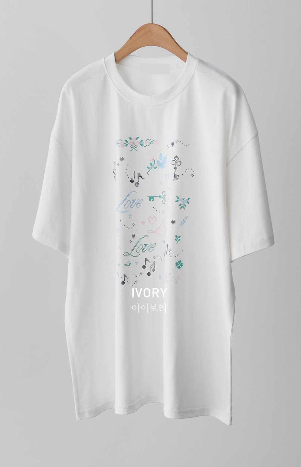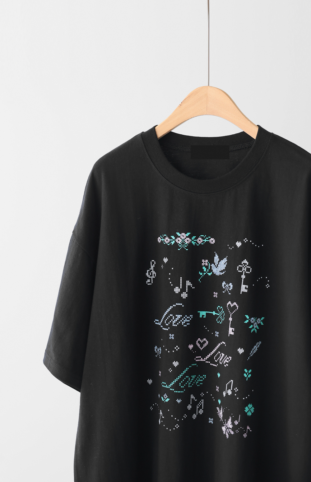 전면의 도트 그래픽이 자칫 밋밋할 수 있는 티셔츠 룩에 세련된 위트를 더해, 하나만으로도 충분히 스타일리시한 존재감을 뽐낼 수 있다는 점이 가장 큰 매력으로 다가갈 거예요.
