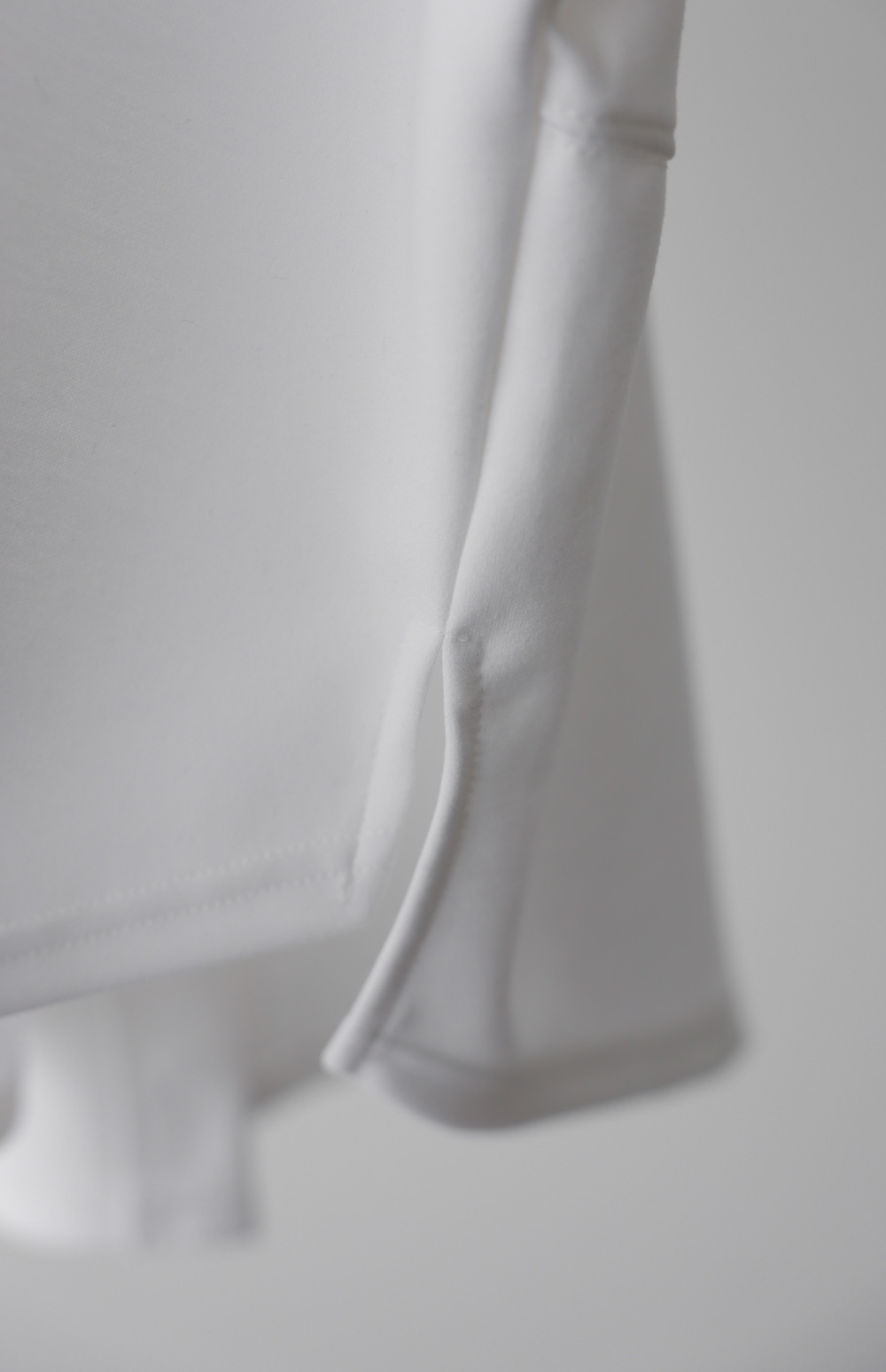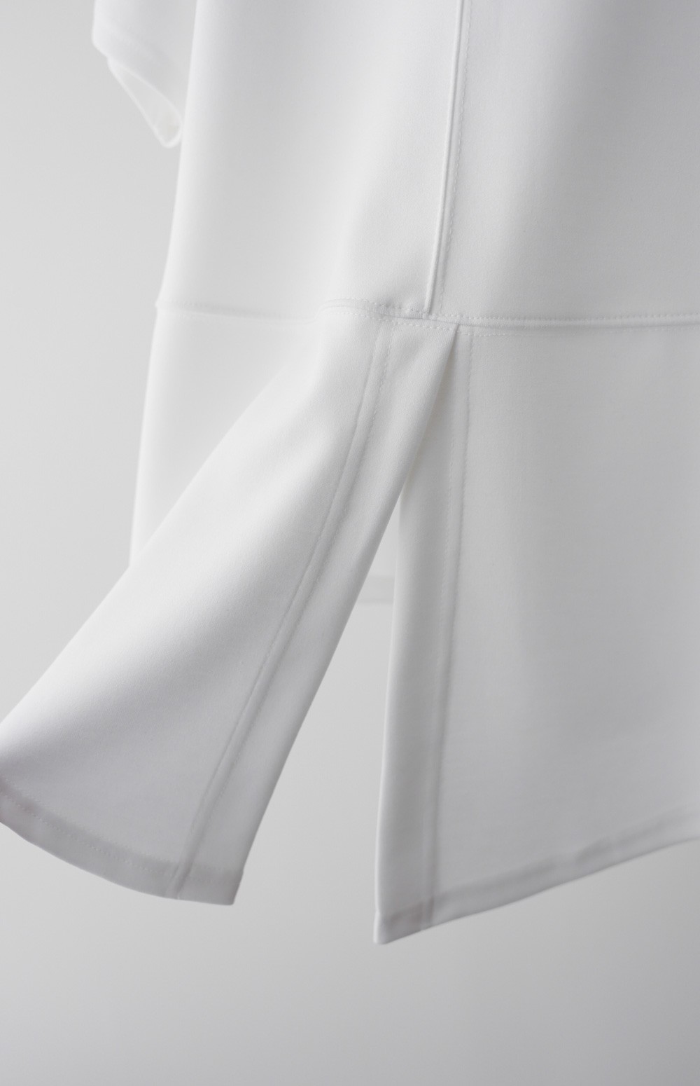 A:과하게 올라간 트임이 아니라 밑단 끝에 살짝 포인트를 준 정도예요. 등이 보이지 않으면서 활동성만 높여준 섬세한 디테일이니 걱정 마세요.