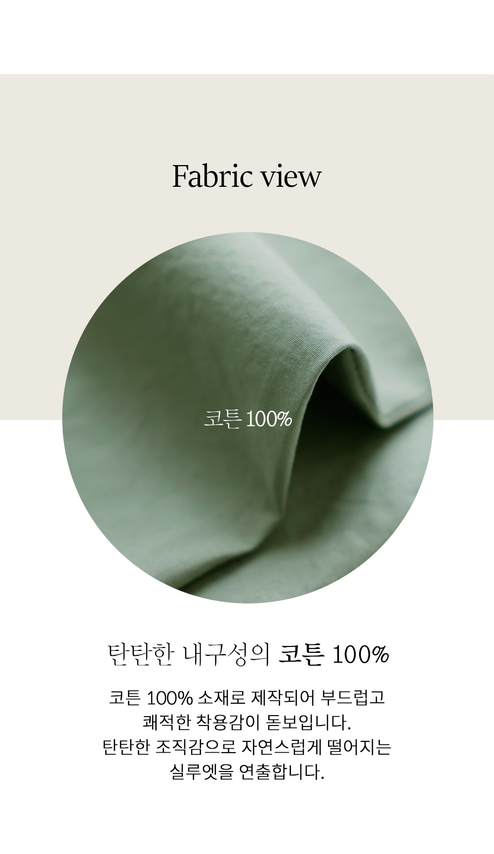 가볍고 쾌적한 착용감으로 시즌 내내 손이 갈 코튼 팬츠 아이템이에요. 이번 팬츠는 몸에 달라붙지 않는 쾌적한 텍스처를 사용하여 무더운 날씨에도 산뜻함을 유지해주며, 코튼 소재 특유의 탄탄함이 다리 라인을 깔끔하게 잡아주는 것이 특징이랍니다.
