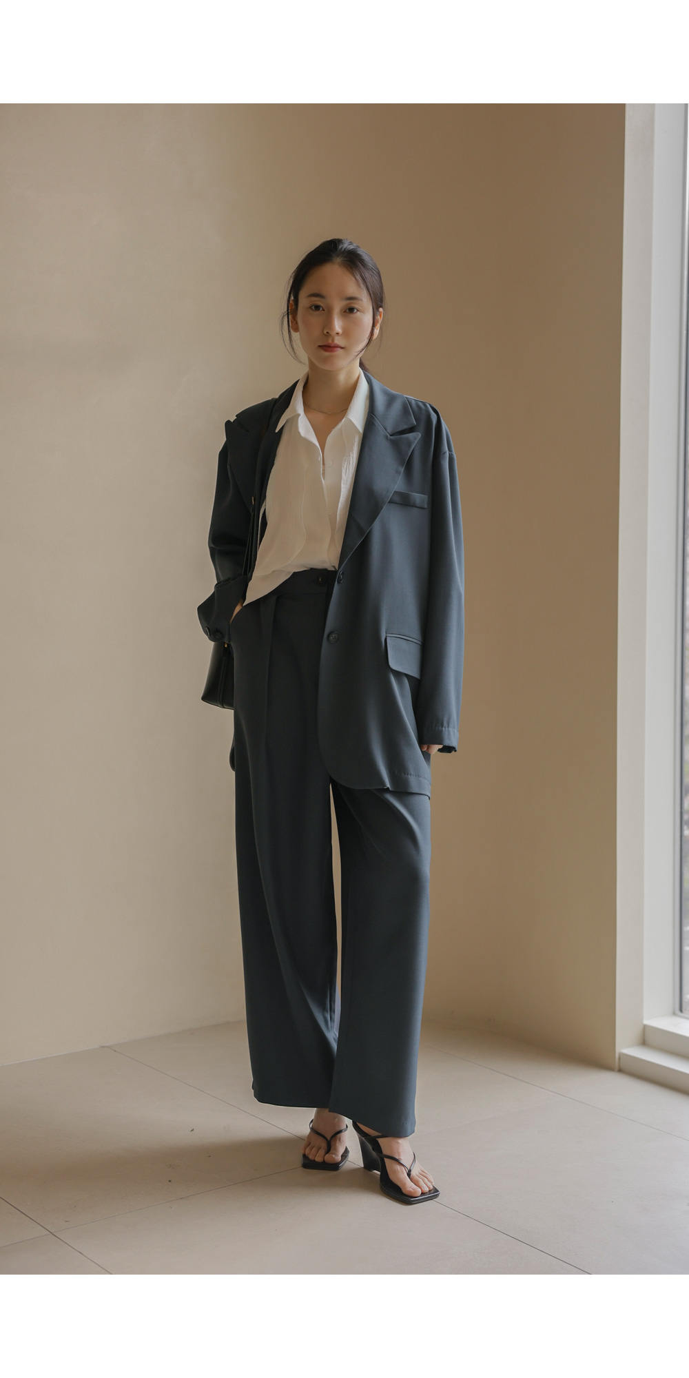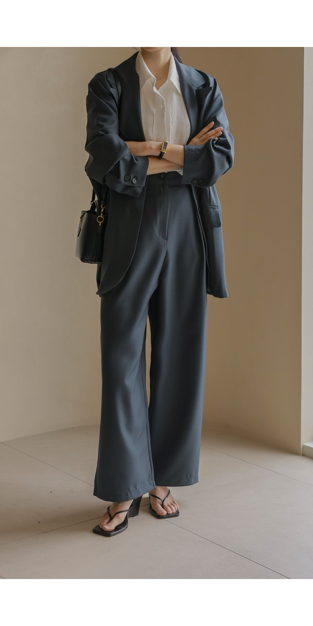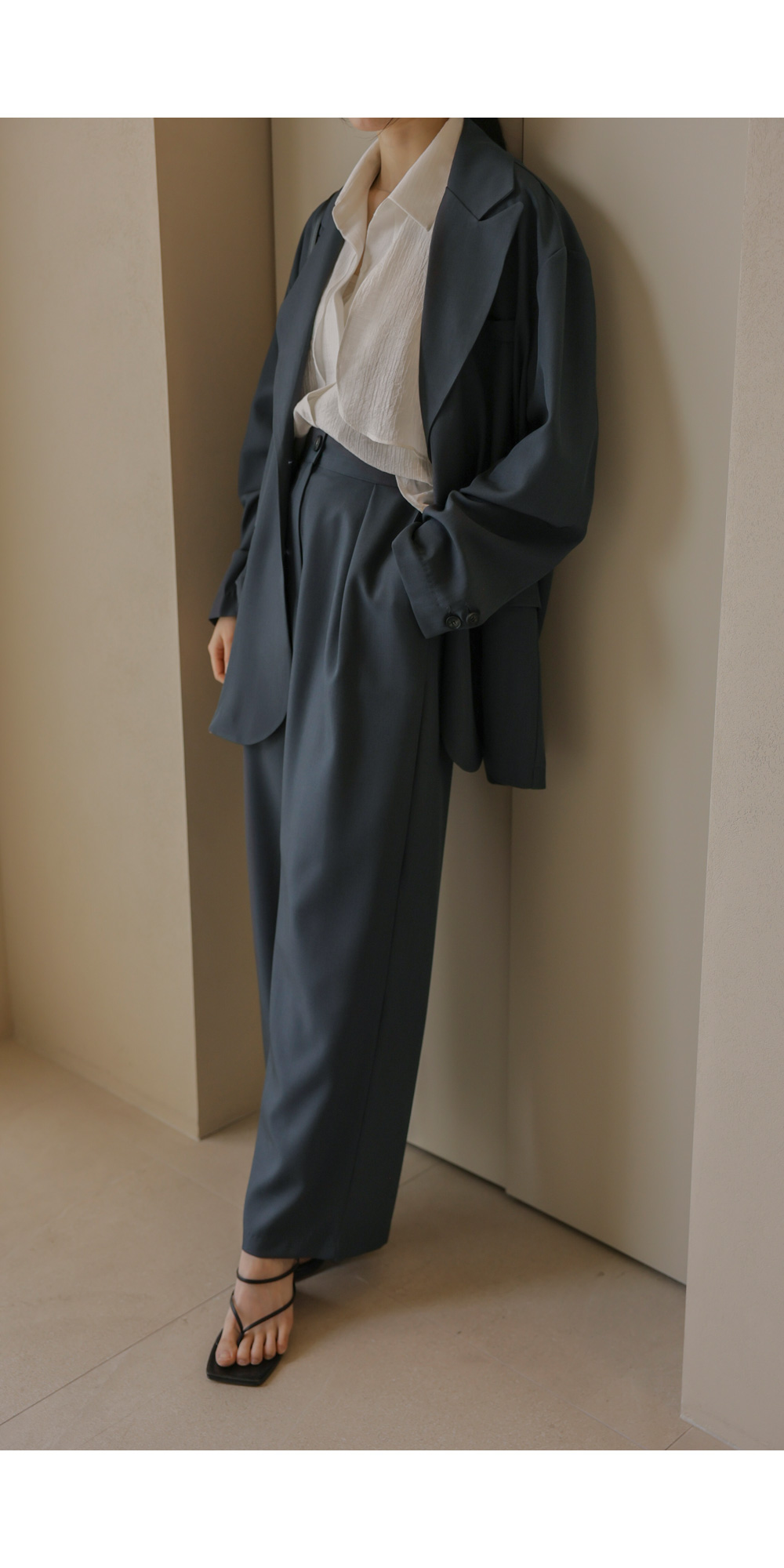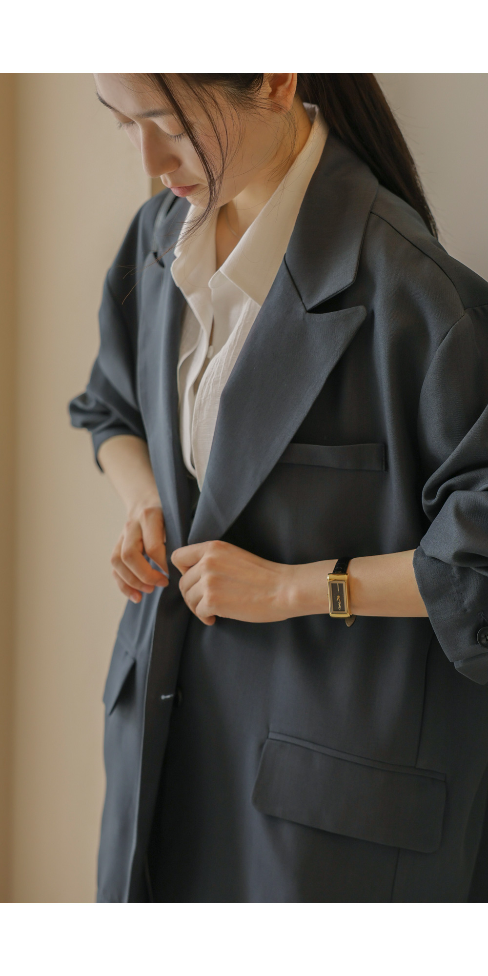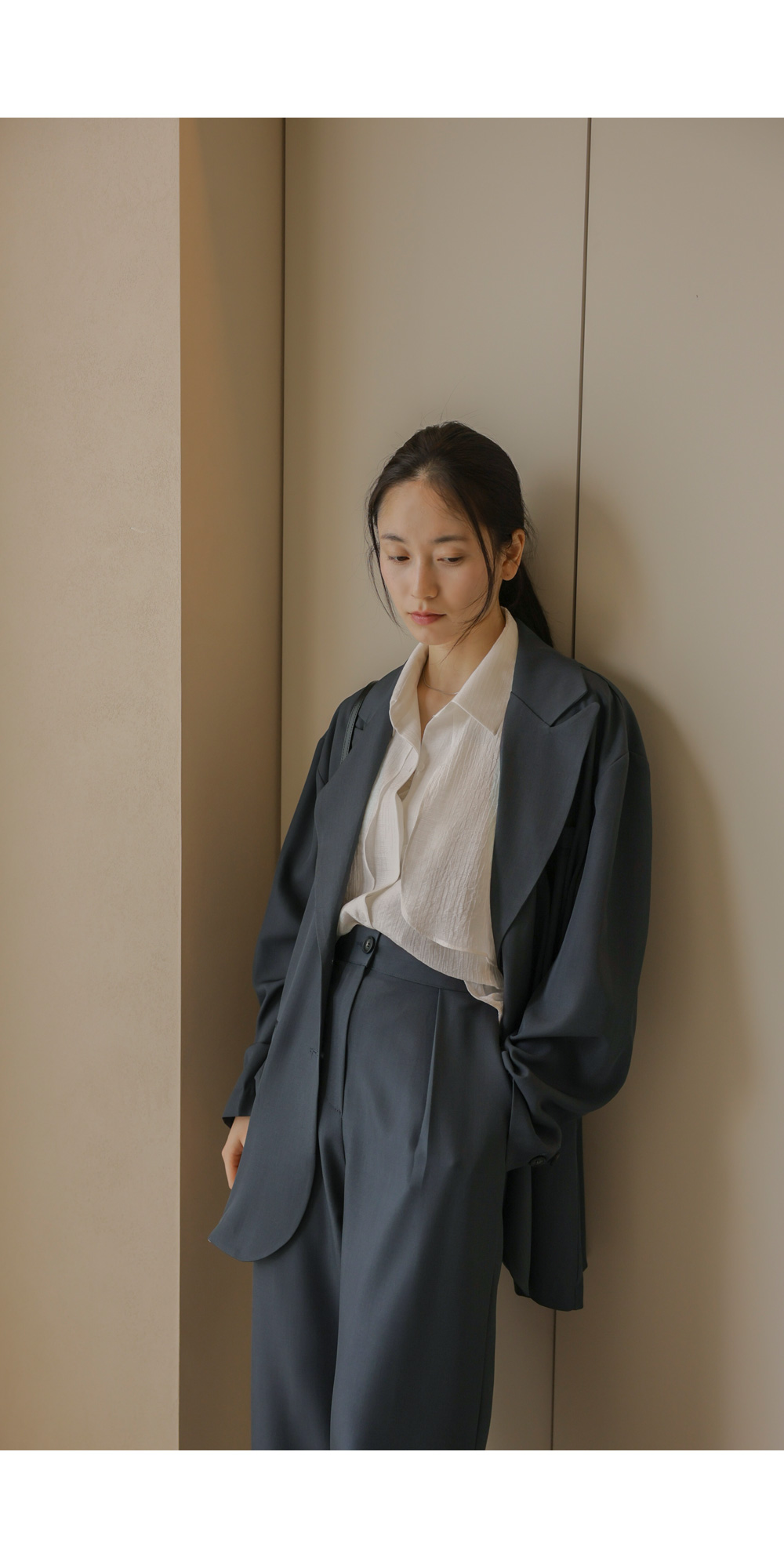 군더더기 없이 깔끔한 실루엣으로 격식 있는 자리는 물론, 일상에서도 세련미를 잃지 않게 해줄 자켓과 팬츠 구성의 셋업 아이템이에요.