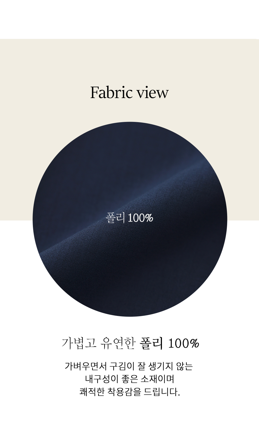 구김이 적고 형태 유지력이 뛰어난 탄탄한 폴리 100% 소재예요. 얇고 가벼운 무게감 덕분에 몸에 착 감기는 느낌이 쾌적하며, 안정감 있게 입으실 수 있는 고퀄리티 원단을 사용했답니다. 피부에 닿는 촉감이 매끄러워 하루 종일 기분 좋게 착용 가능하세요. ![]() MD가 답하는 안심 Q&A