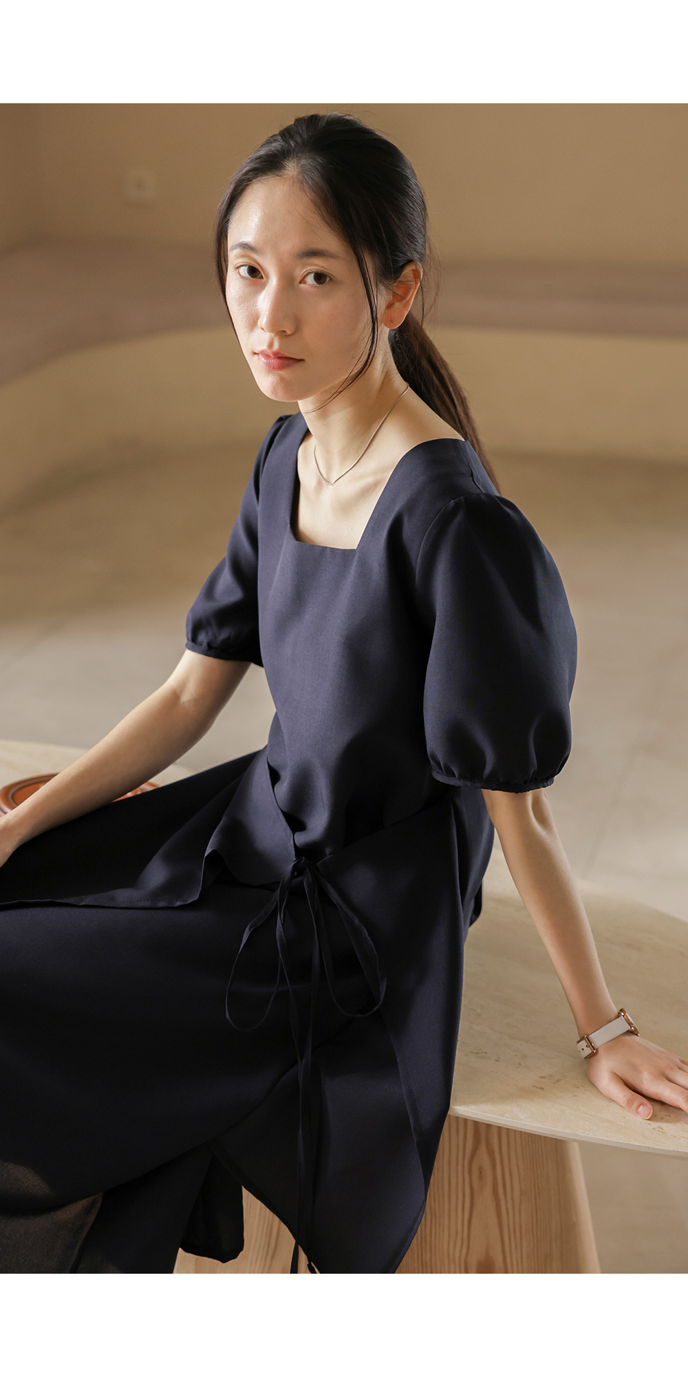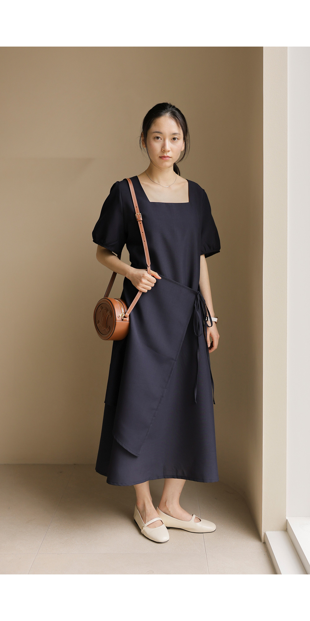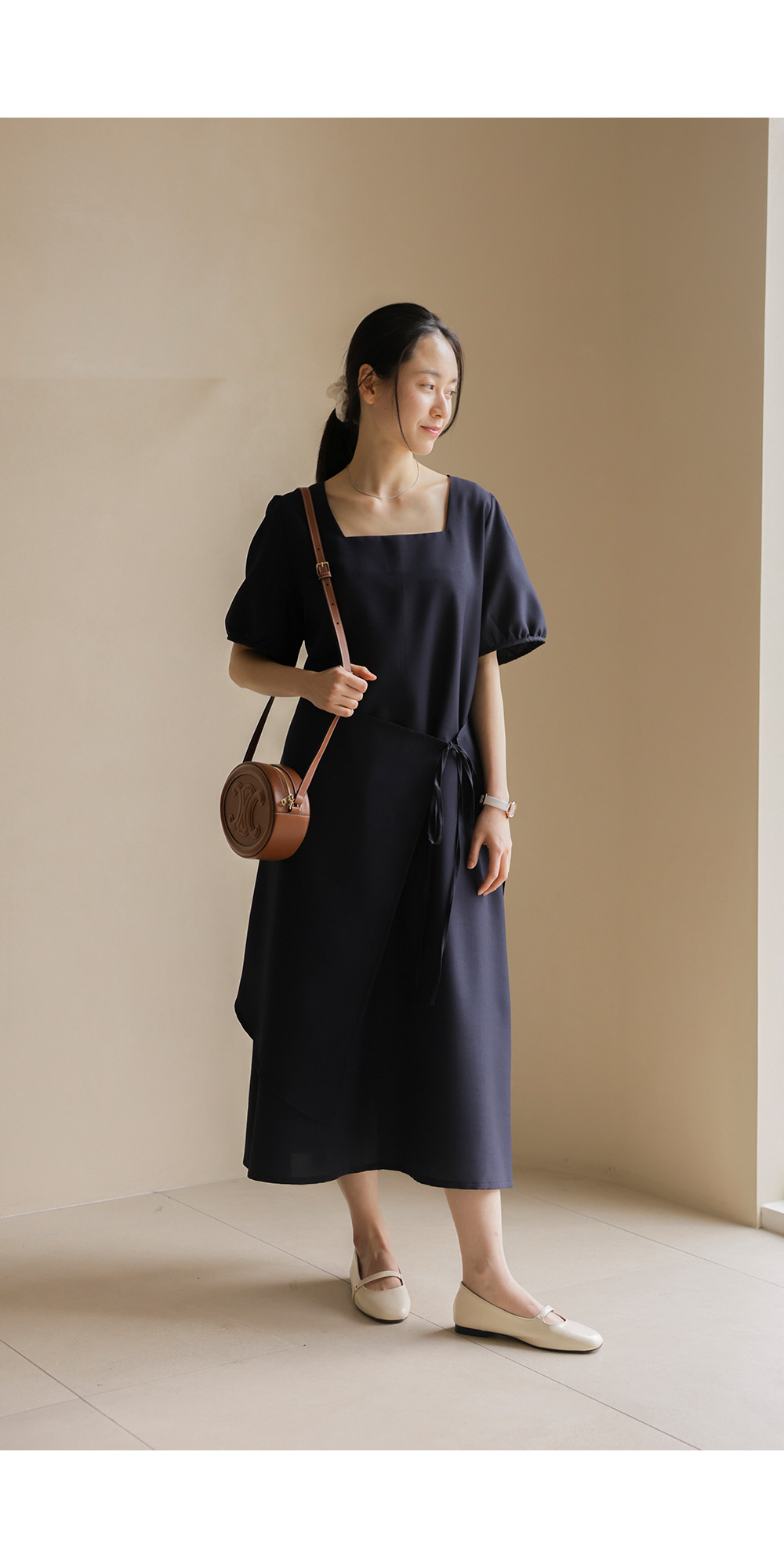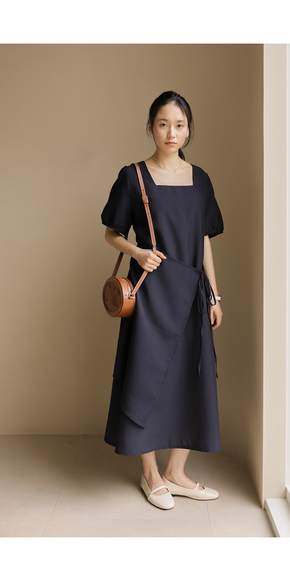 입는 순간 드라마틱한 실루엣의 변화를 경험하실 수 있는 특별한 원피스 소개해요. 시원하게 트인 스퀘어 넥 라인이 쇄골을 예쁘게 드러내 주어 얼굴이 한층 작아 보이고, 랩 스타일과 연결된 스트랩이 허리선을 안정감 있게 잡아주어 체형 보정 효과가 탁월하답니다.