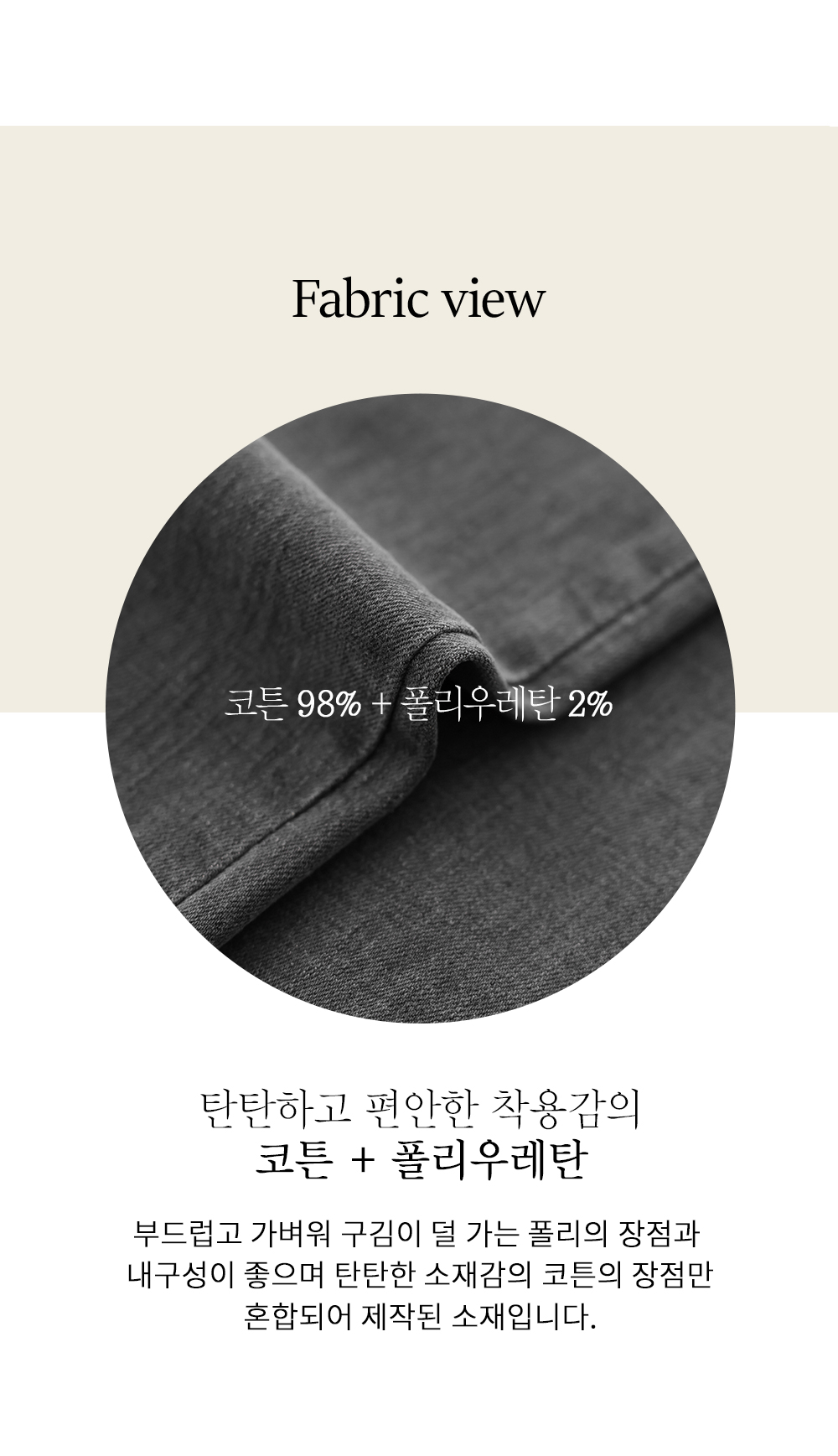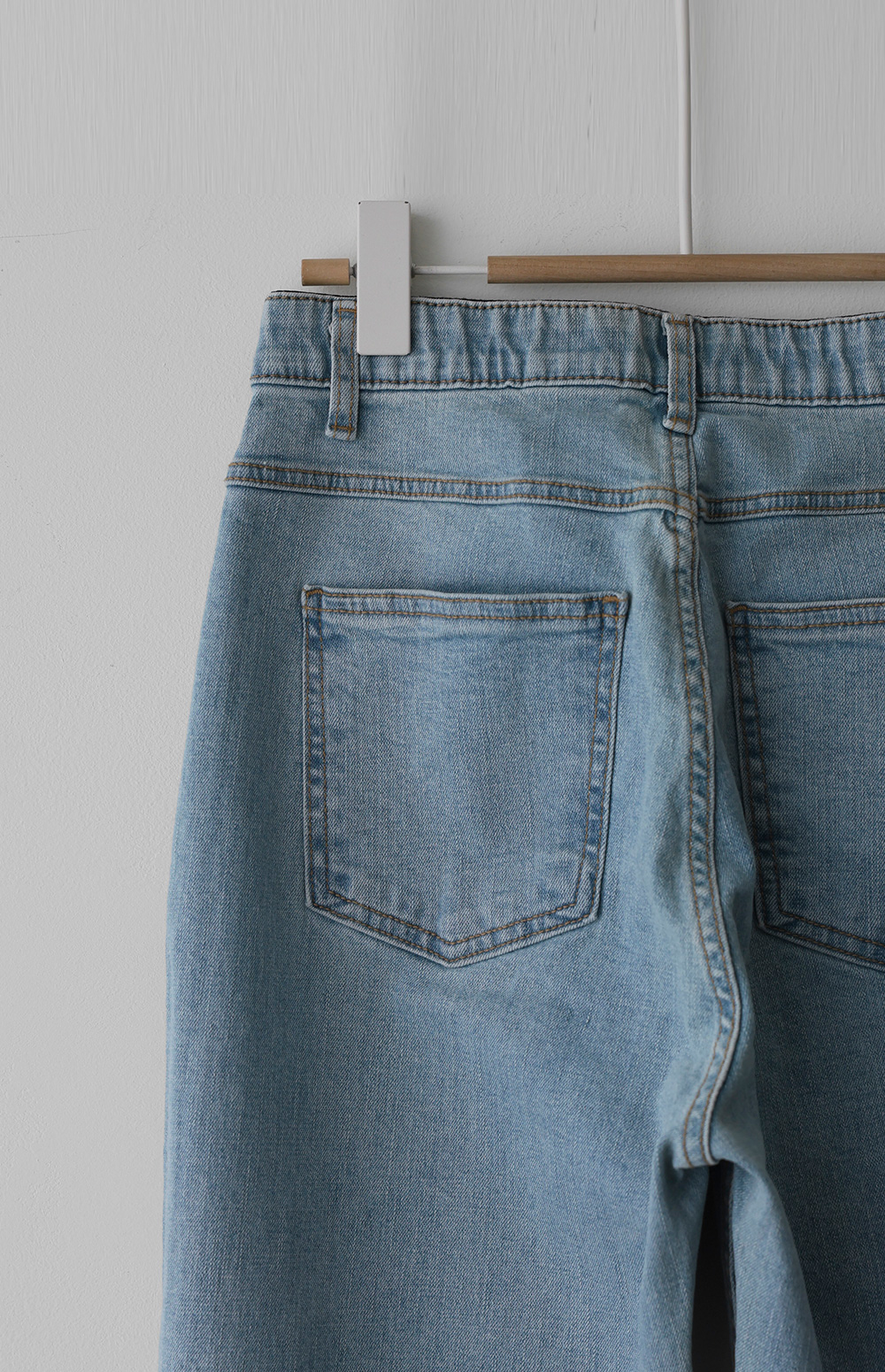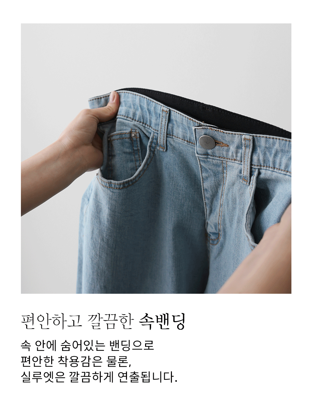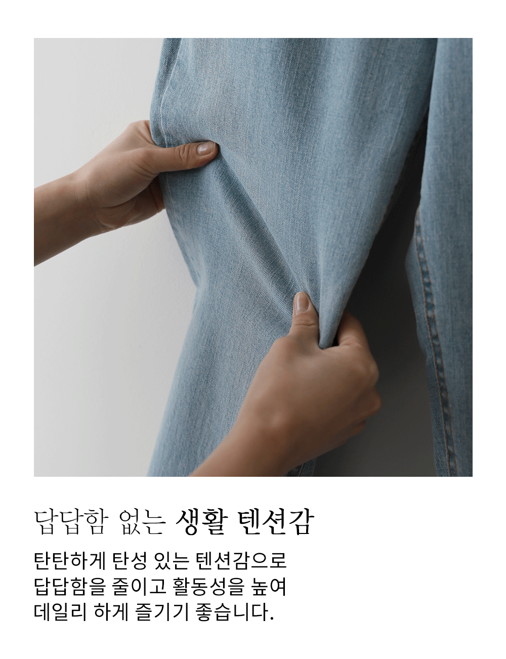 코튼 베이스에 스판이 혼방되어 피부에 닿는 느낌이 쾌적하고 톡톡해요. 너무 얇지 않아 다리 라인의 울퉁불퉁한 굴곡을 매끄럽게 잡아주면서도, 스판의 텐션감 덕분에 쪼그려 앉거나 보폭을 크게 걸을 때도 쫀쫀하게 늘어나는 힘 있는 소재랍니다. 일상에서 데일리 아이템으로 활용하기 좋은 적당한 두께감과 내구성을 갖춘 데님 소재예요. ![]() 밴딩 가이드 보러가기→ ![]() MD가 답하는 안심 Q&A