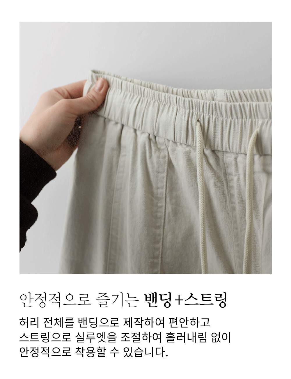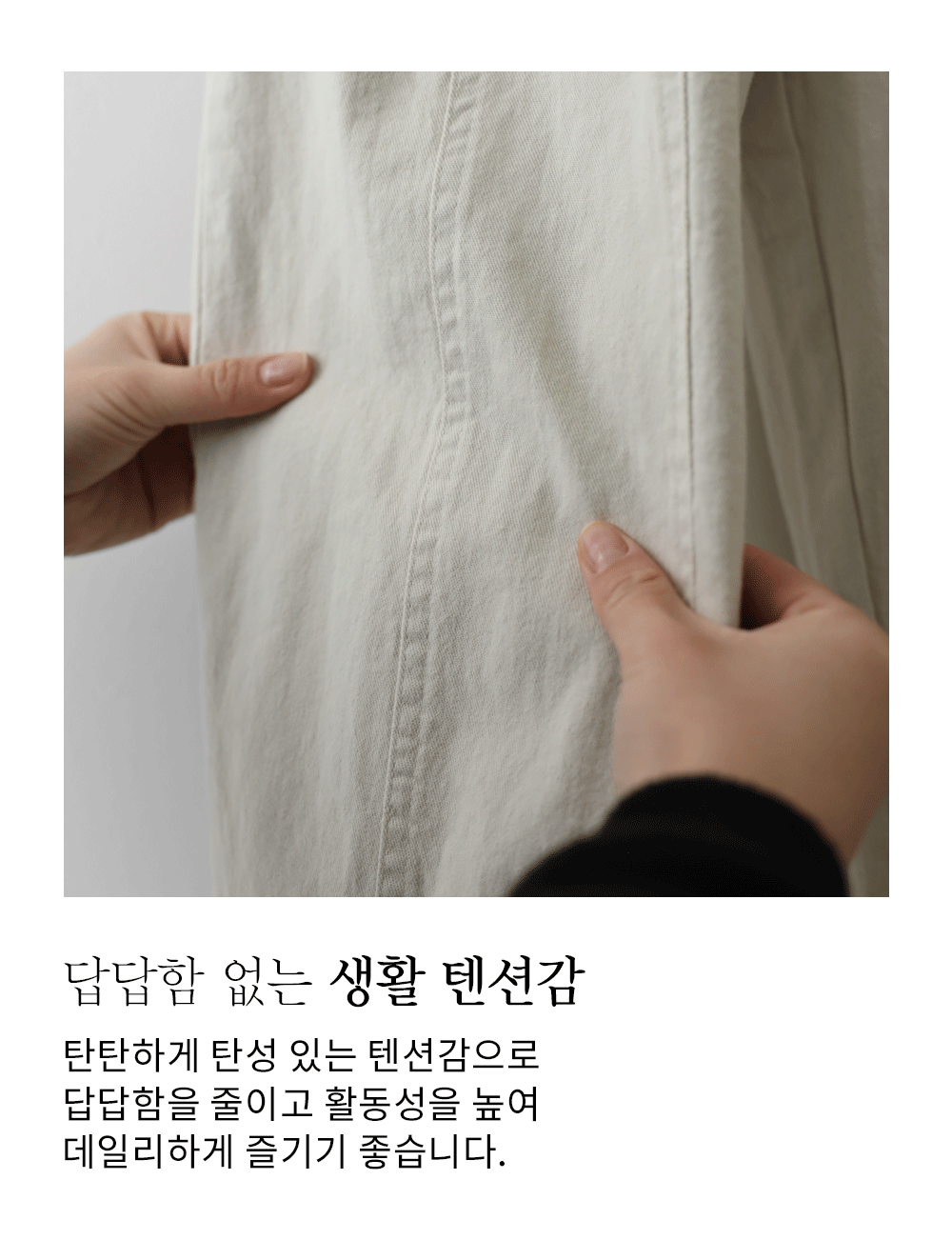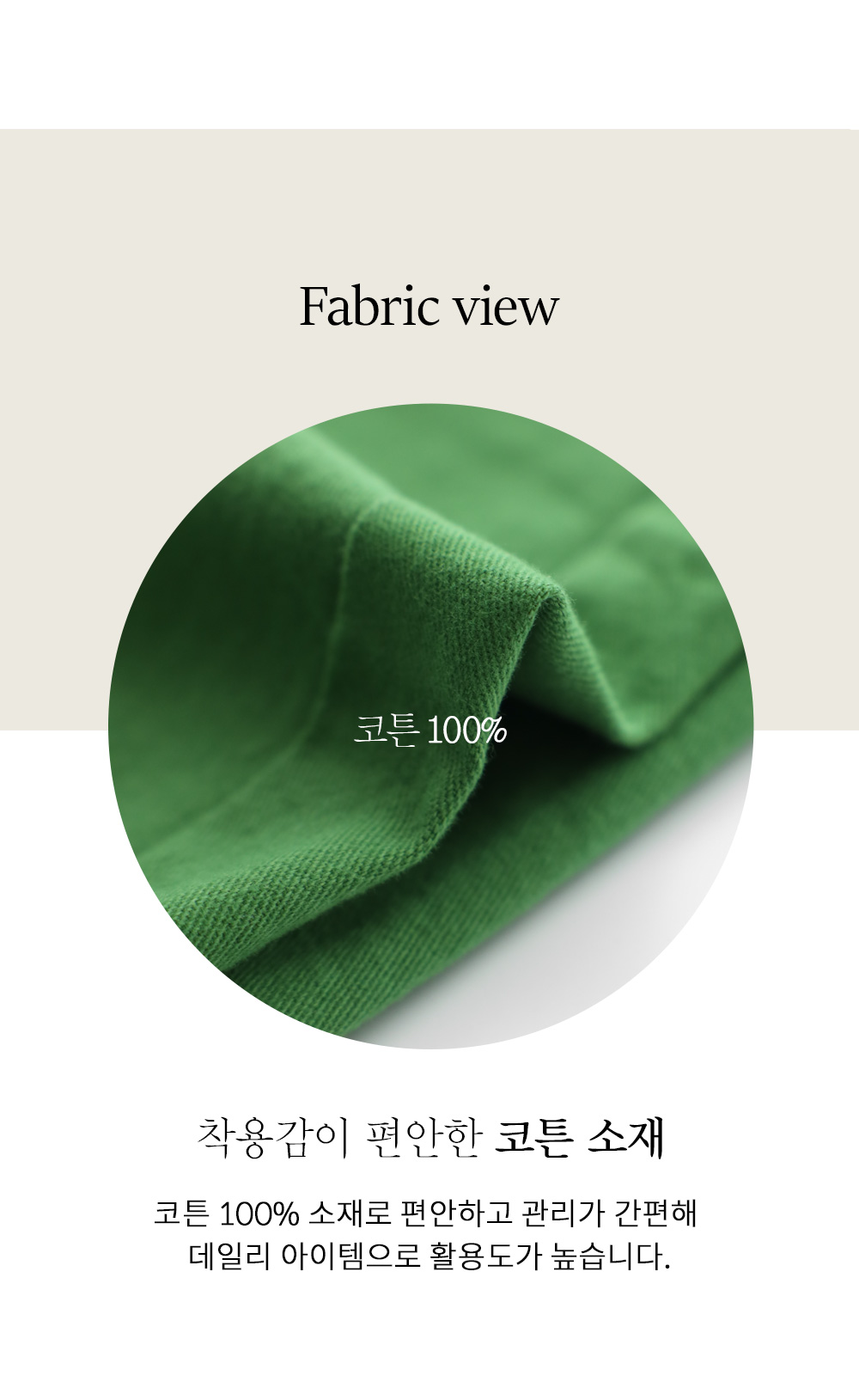 탄탄하면서도 통기성이 우수한 코튼 100% 소재를 사용하여 피부 자극 없이 부드러운 터치감을 선사하구요. 가공 과정을 거쳐 빳빳하지 않고 유연하게 떨어지는 핏감을 구현해서 활동량이 많은 날에도 몸에 감기는 느낌 없이 쾌적해요. 땀 흡수가 잘 되고 건조가 빨라 한여름에도 답답함 없이 입기 좋으며, 고유의 핏이 잘 유지되는 고퀄리티 소재랍니다. ![]() 밴딩 가이드 보러가기→ ![]() MD가 답하는 안심 Q&A