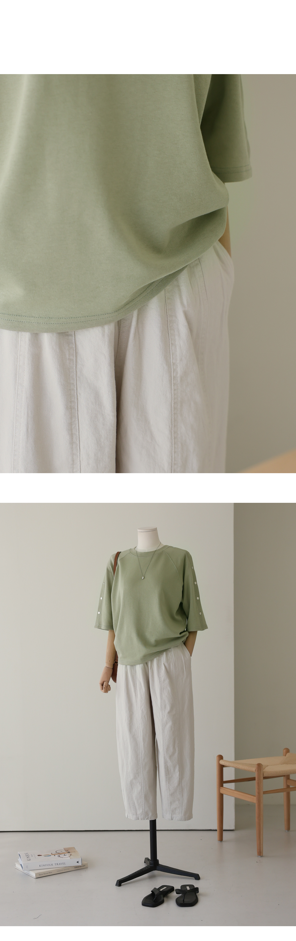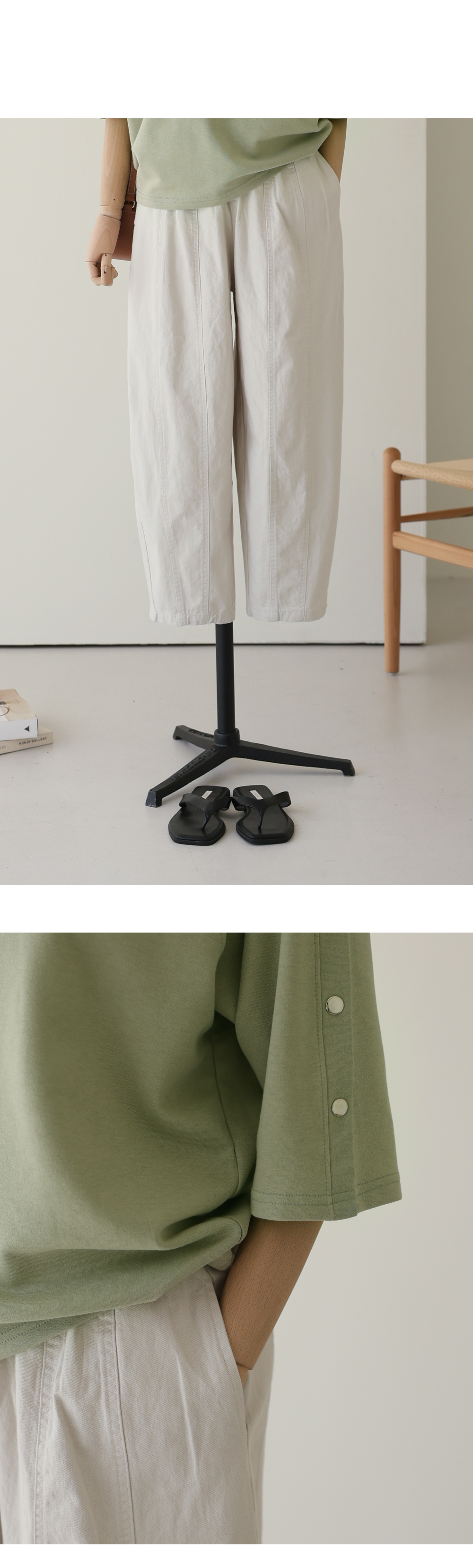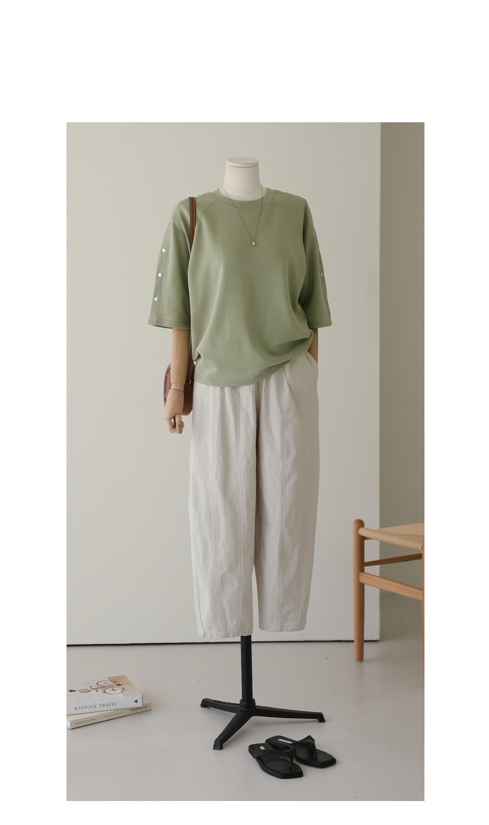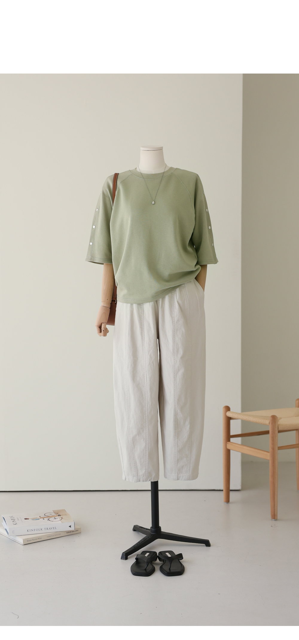 탄탄하면서도 통기성이 우수한 코튼 100% 소재를 사용하여 피부 자극 없이 부드러운 터치감을 선사하구요. 가공 과정을 거쳐 빳빳하지 않고 유연하게 떨어지는 핏감을 구현해서 활동량이 많은 날에도 몸에 감기는 느낌 없이 쾌적해요. 땀 흡수가 잘 되고 건조가 빨라 한여름에도 답답함 없이 입기 좋으며, 고유의 핏이 잘 유지되는 고퀄리티 소재랍니다. ![]() 밴딩 가이드 보러가기→ ![]() MD가 답하는 안심 Q&A