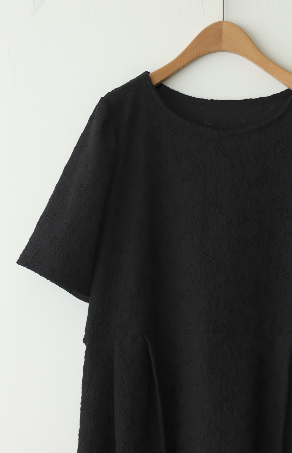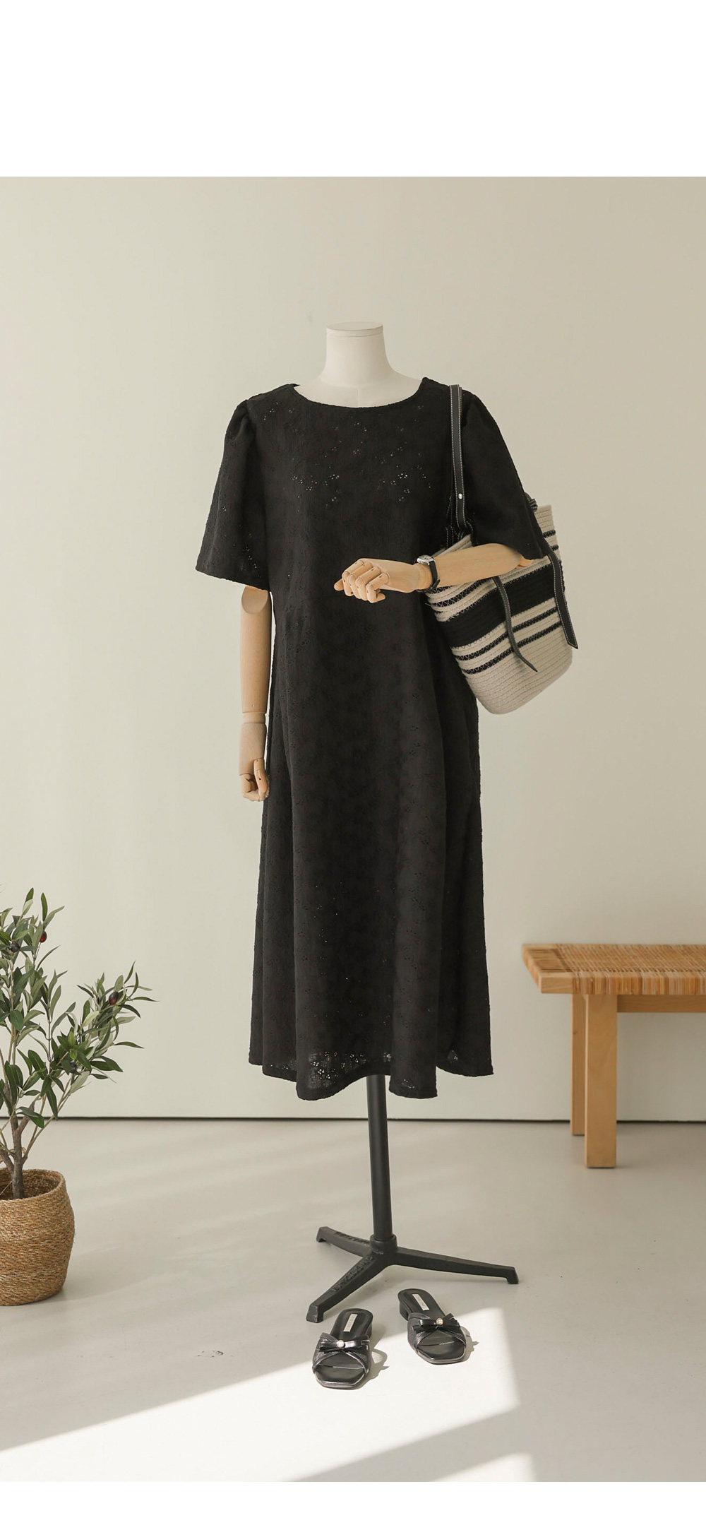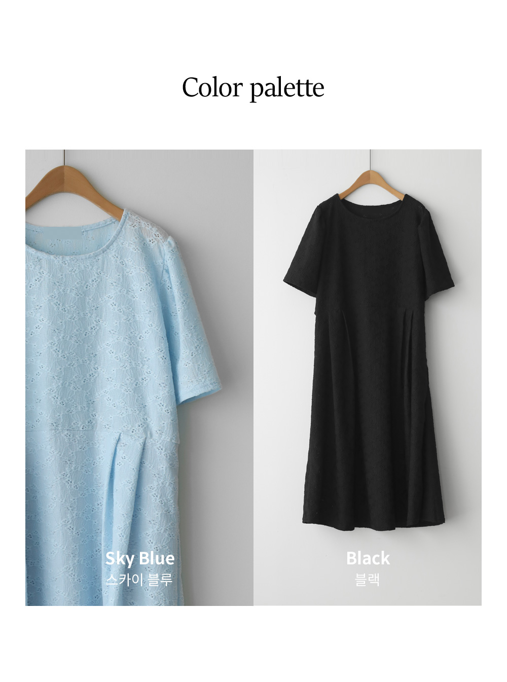 여름철 가장 시원하면서도 스타일을 챙기기 좋은 아이템이에요. 정교한 전체 펀칭 레이스 소재를 사용하여 시각적인 청량감과 고급스러움을 동시에 잡은 원피스랍니다.