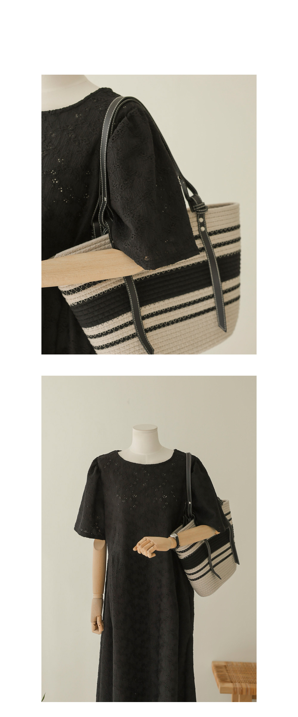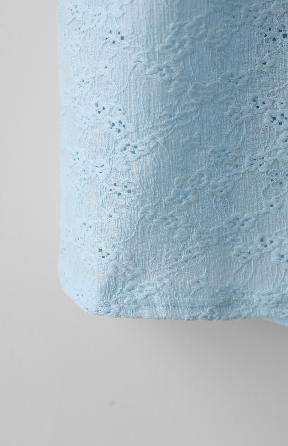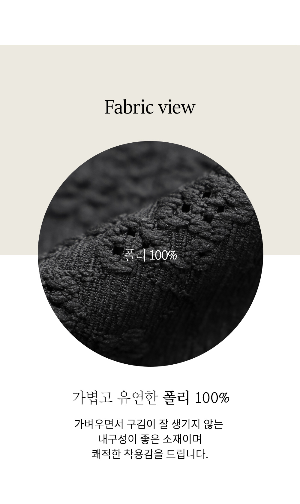 고품질의 폴리 100% 원사를 사용하여 펀칭 레이스 특유의 화려한 문양을 정교하게 구현했구요. 일반적인 레이스보다 구김에 강하고 형태 유지가 뛰어나 장시간 착용해도 실루엣이 무너지지 않는답니다. 안감 없이 제작되어 피부에 닿는 면적이 적어 땀이 나도 끈적임 없이 보송보송한 감촉을 유지해 주며, 관리가 무척 수월한 여름 전용 레이스 소재예요. 문양 사이사이로 바람이 잘 통해 한여름 햇살 아래서도 시원함을 잃지 않는 기특한 소재랍니다. ![]() MD가 답하는 안심 Q&A