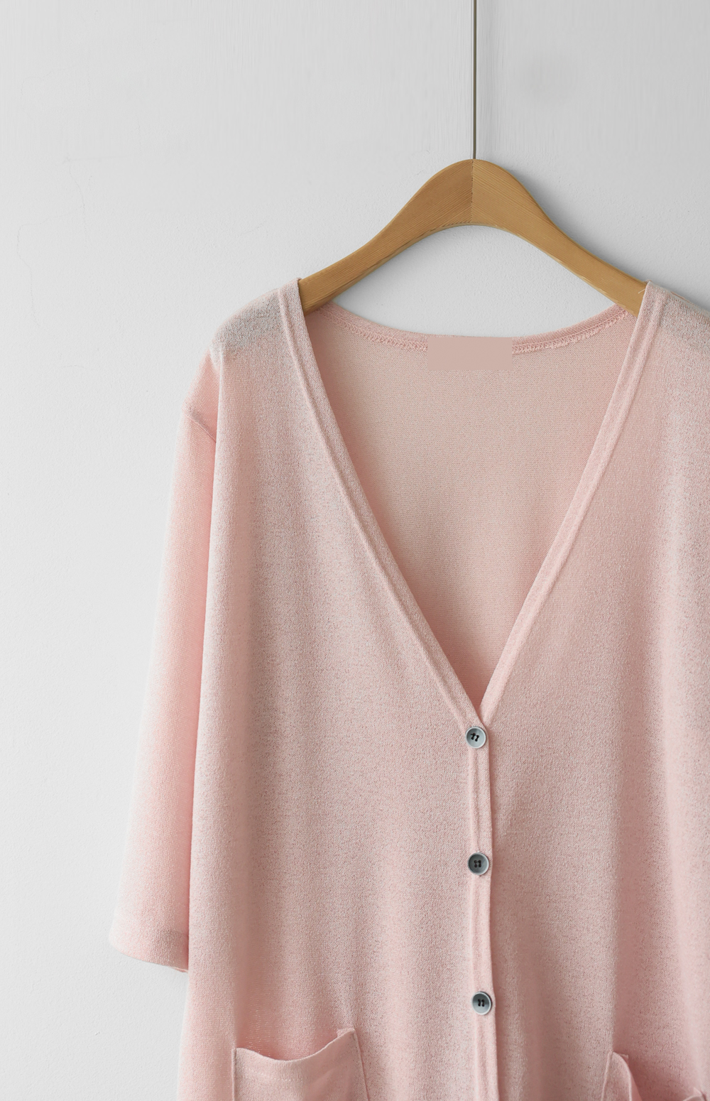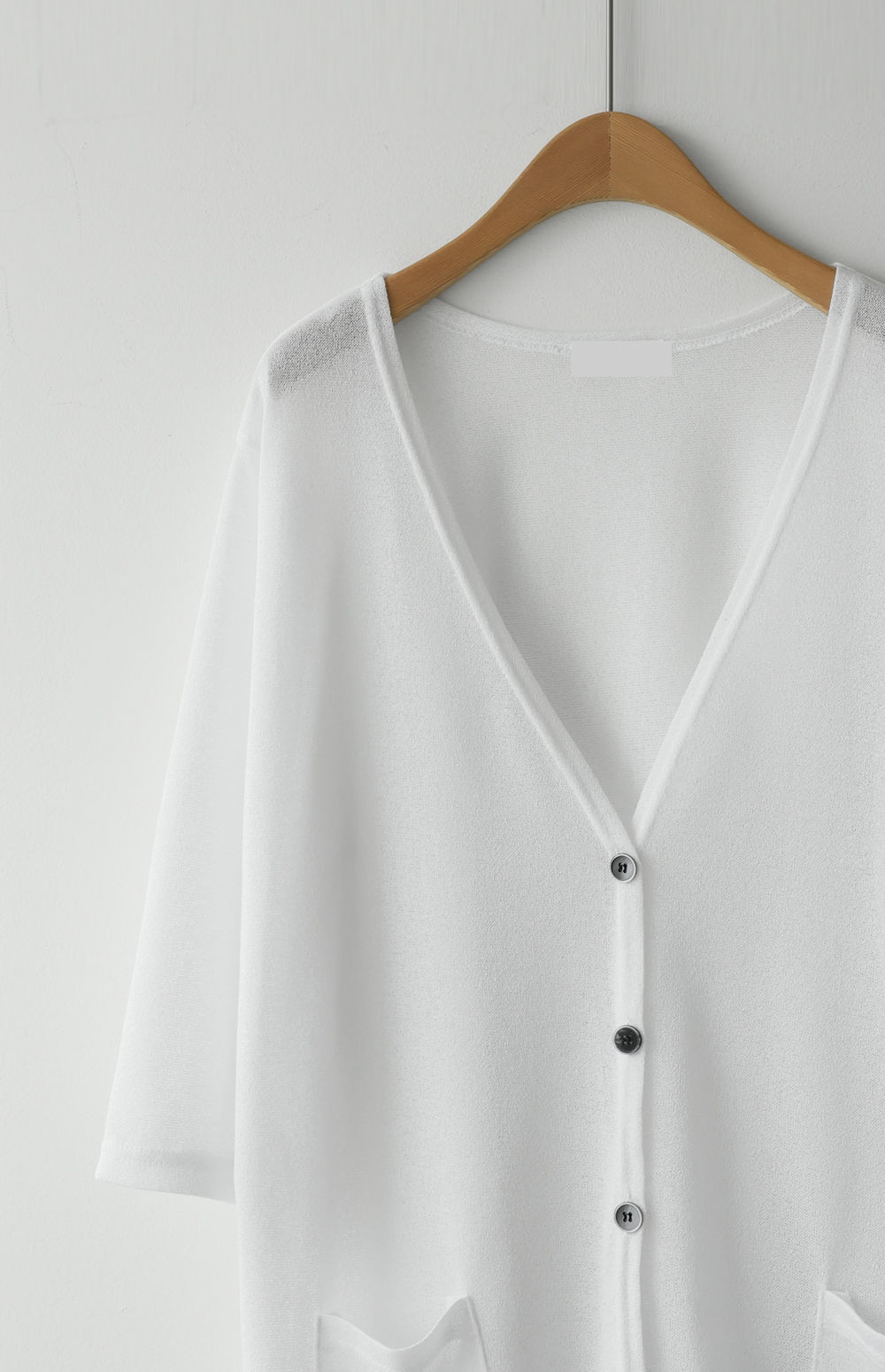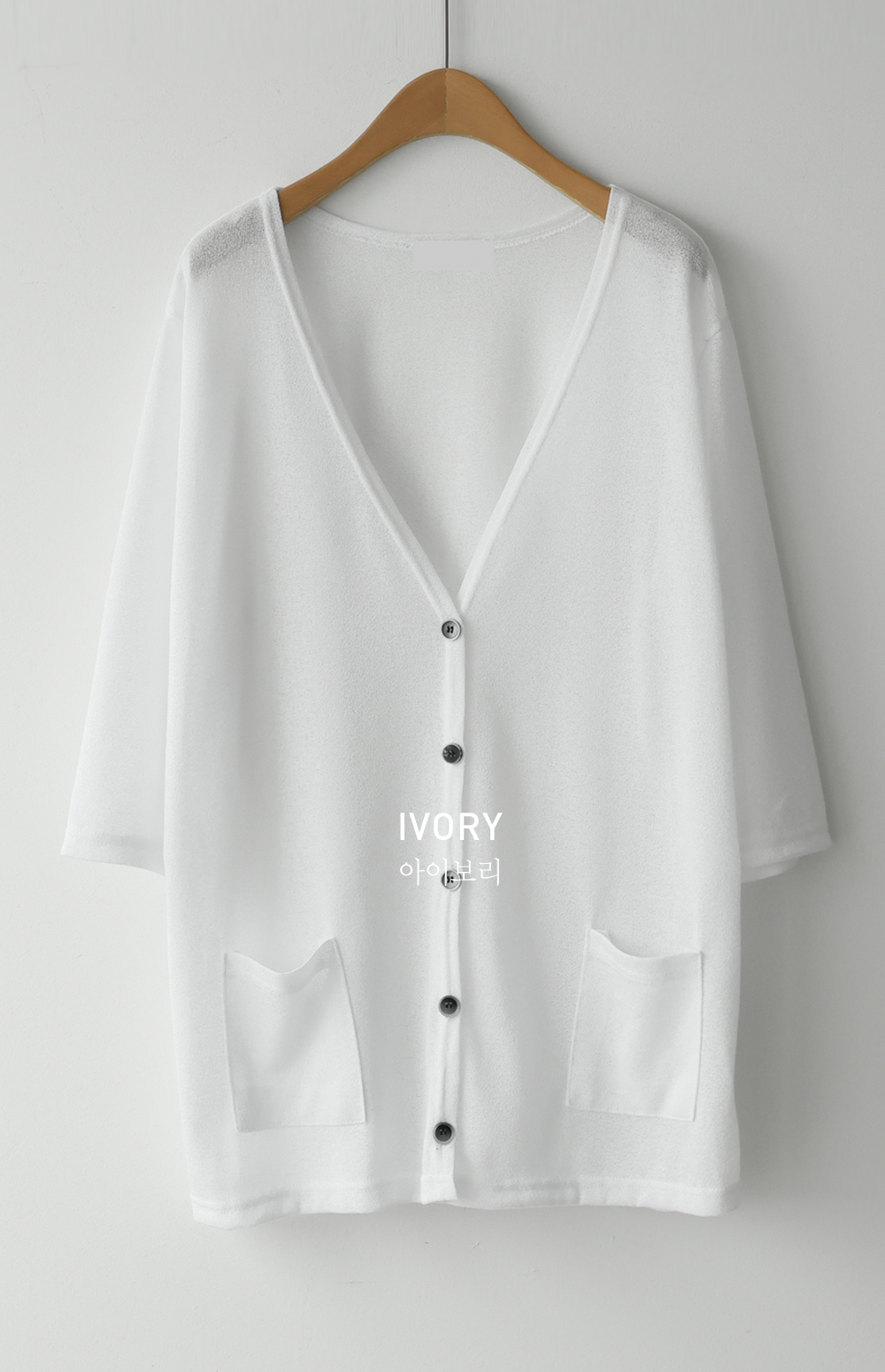 여름철 뜨거운 햇살과 차가운 에어컨 바람으로부터 피부를 보호하면서도 스타일을 챙길 수 있는 서머 가디건 아이템을 소개해 드려요. 이번 상품은 아주 얇고 가벼운 소재로 제작되어 여름 내내 필요할 때마다 꺼내 입기 정말 좋은데요. 깊게 파인 V넥 라인이 시원한 인상을 줄 뿐만 아니라 얼굴형을 갸름해 보이게 도와준답니다.