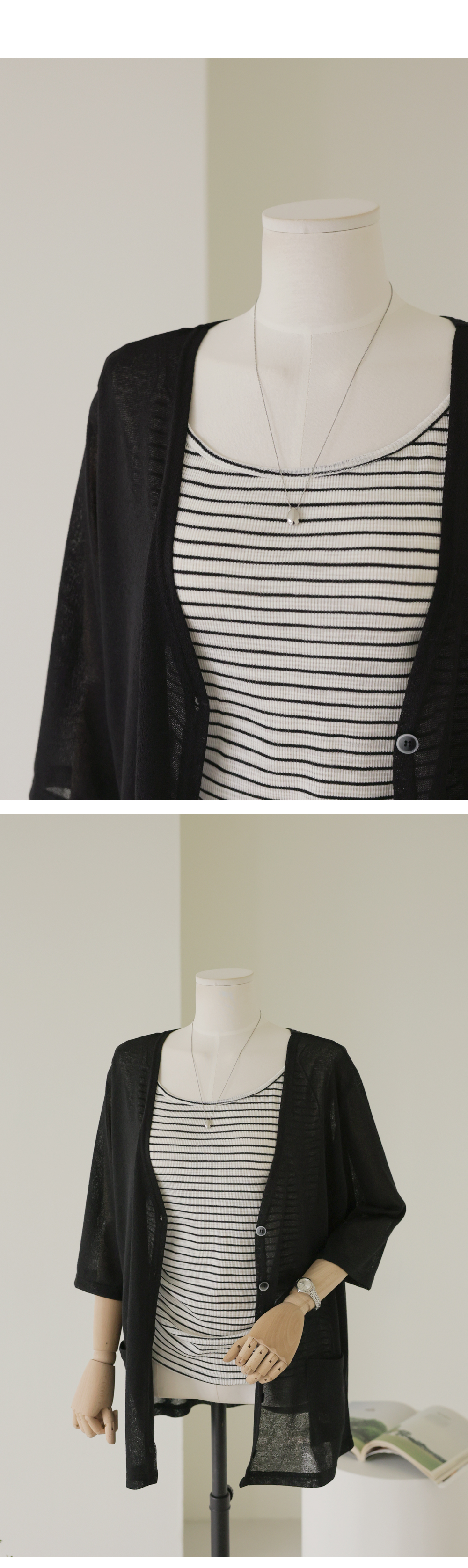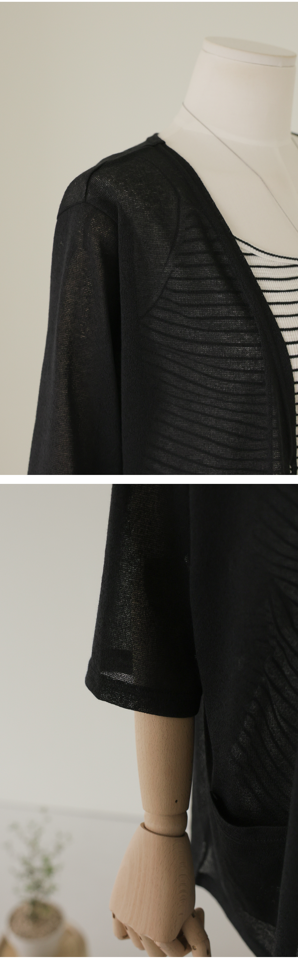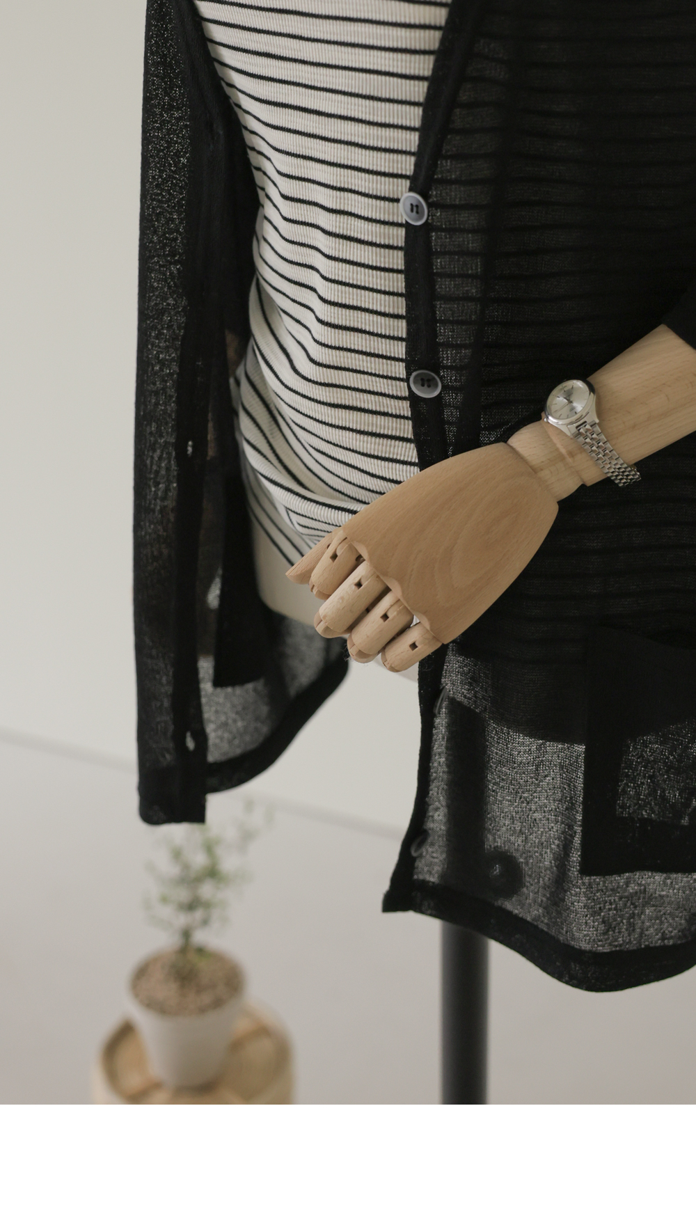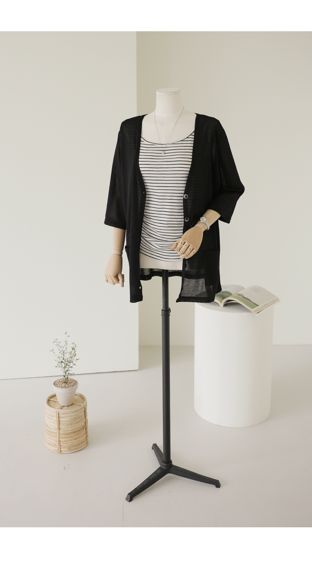 여름철 뜨거운 햇살과 차가운 에어컨 바람으로부터 피부를 보호하면서도 스타일을 챙길 수 있는 서머 가디건 아이템을 소개해 드려요. 이번 상품은 아주 얇고 가벼운 소재로 제작되어 여름 내내 필요할 때마다 꺼내 입기 정말 좋은데요. 깊게 파인 V넥 라인이 시원한 인상을 줄 뿐만 아니라 얼굴형을 갸름해 보이게 도와준답니다.