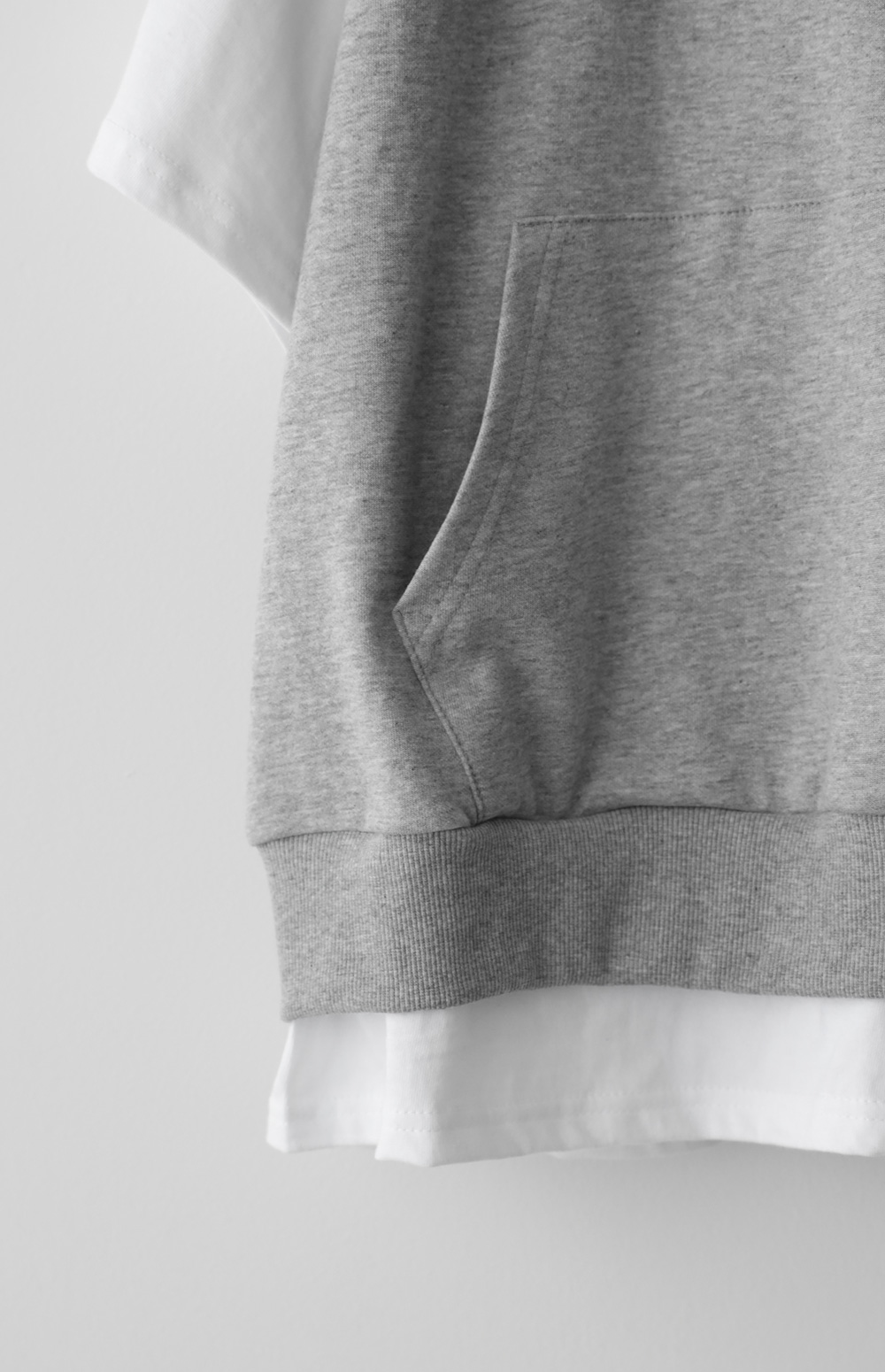 상하의 매치 걱정 없이 세련된 룩을 완성해 주어 항상 찾으시는 이번 세트는 후드 티셔츠 소매와 밑단에 티셔츠를 겹쳐 입은 듯한 레이어드 디자인을 더해 밋밋함 없이 풍성한 코디 느낌을 살렸답니다.