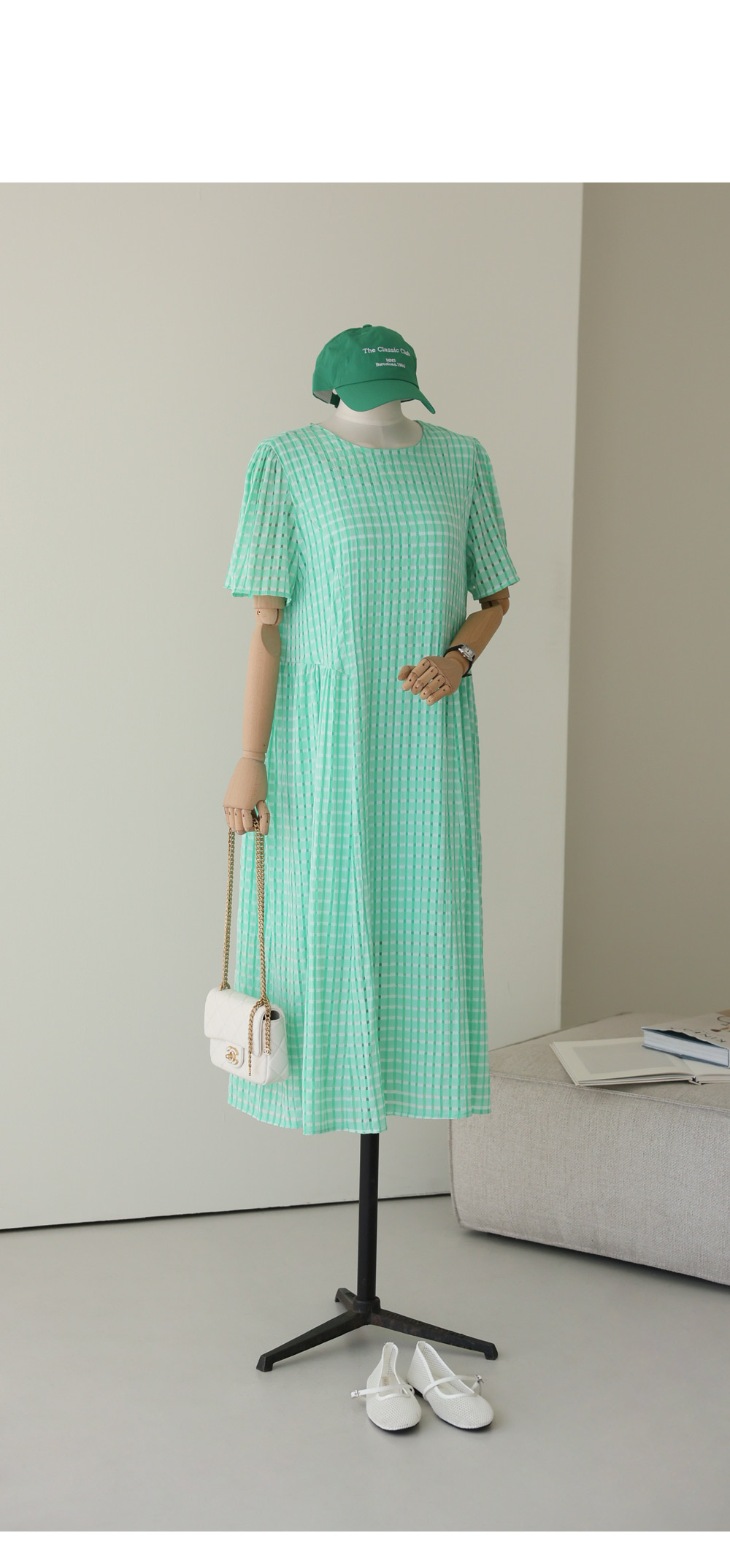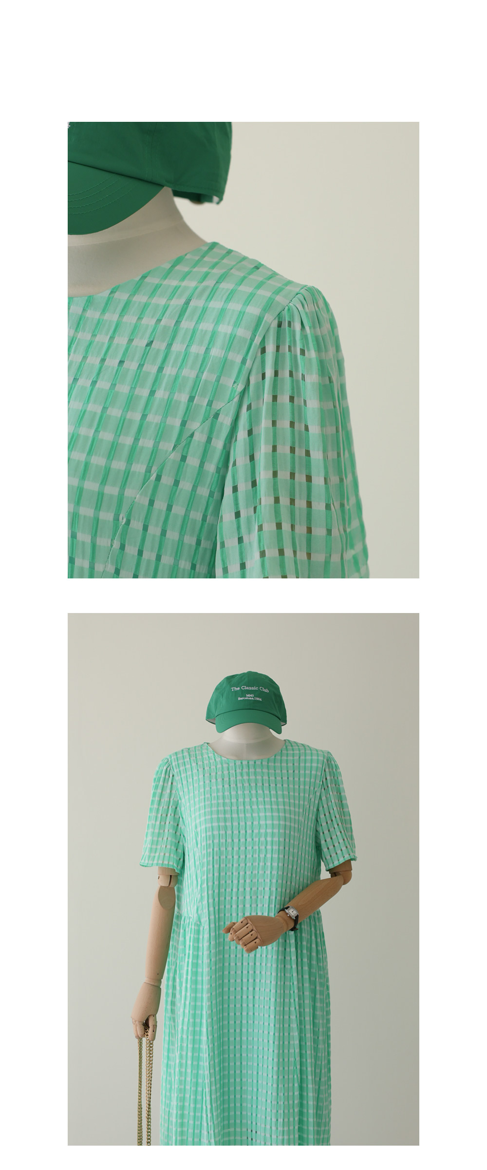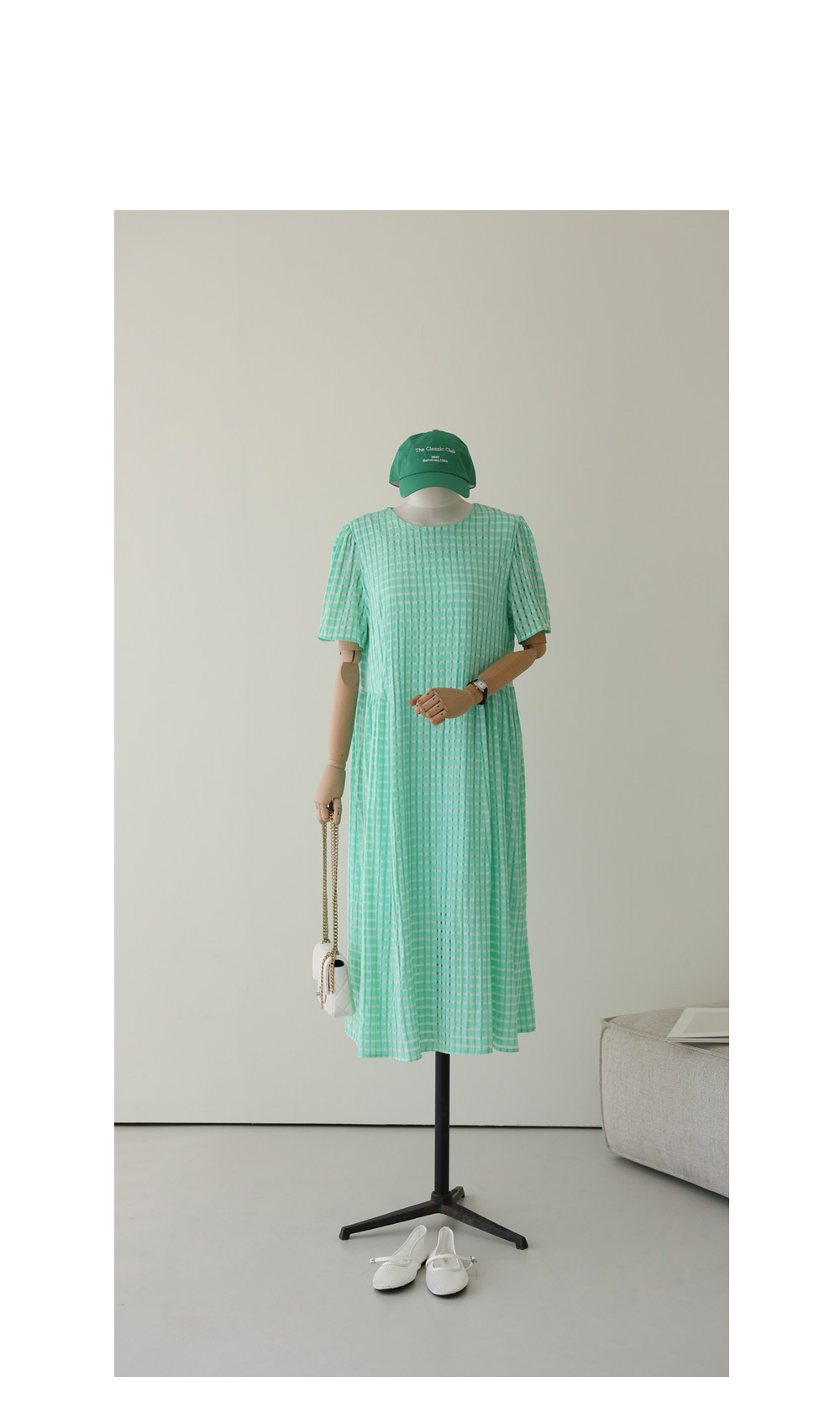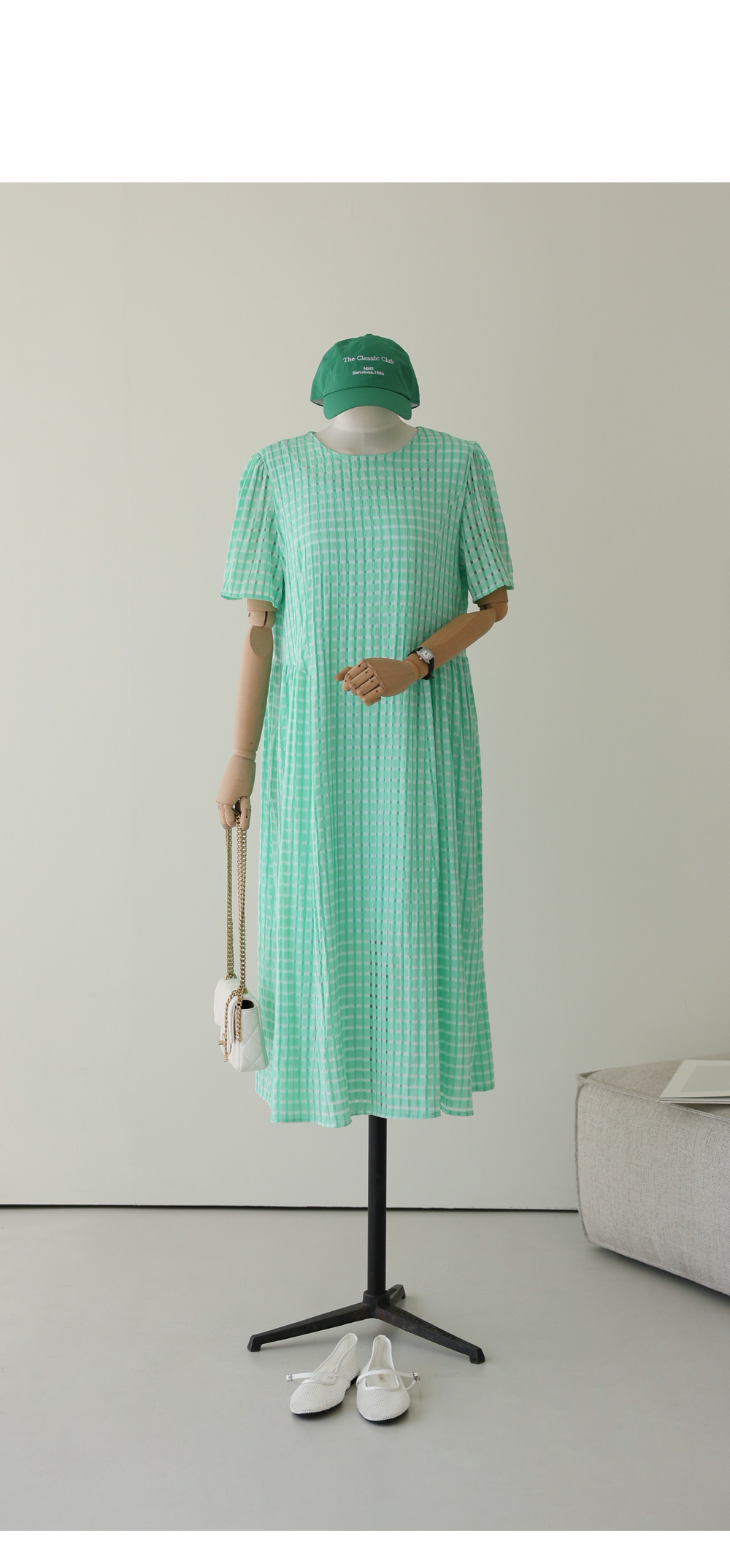 한 벌만으로도 충분히 갖춰 입은 느낌을 주는 이번 원피스는 은은하면서도 고급스러운 체크 패턴을 베이스로, 어깨와 허리 라인에 셔링 디테일을 더해 입체적인 실루엣을 완성했답니다.
