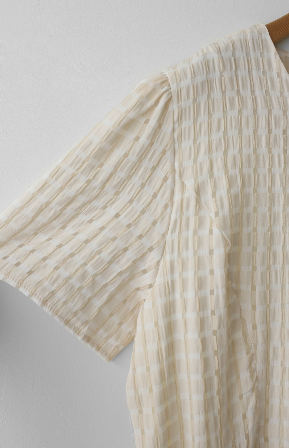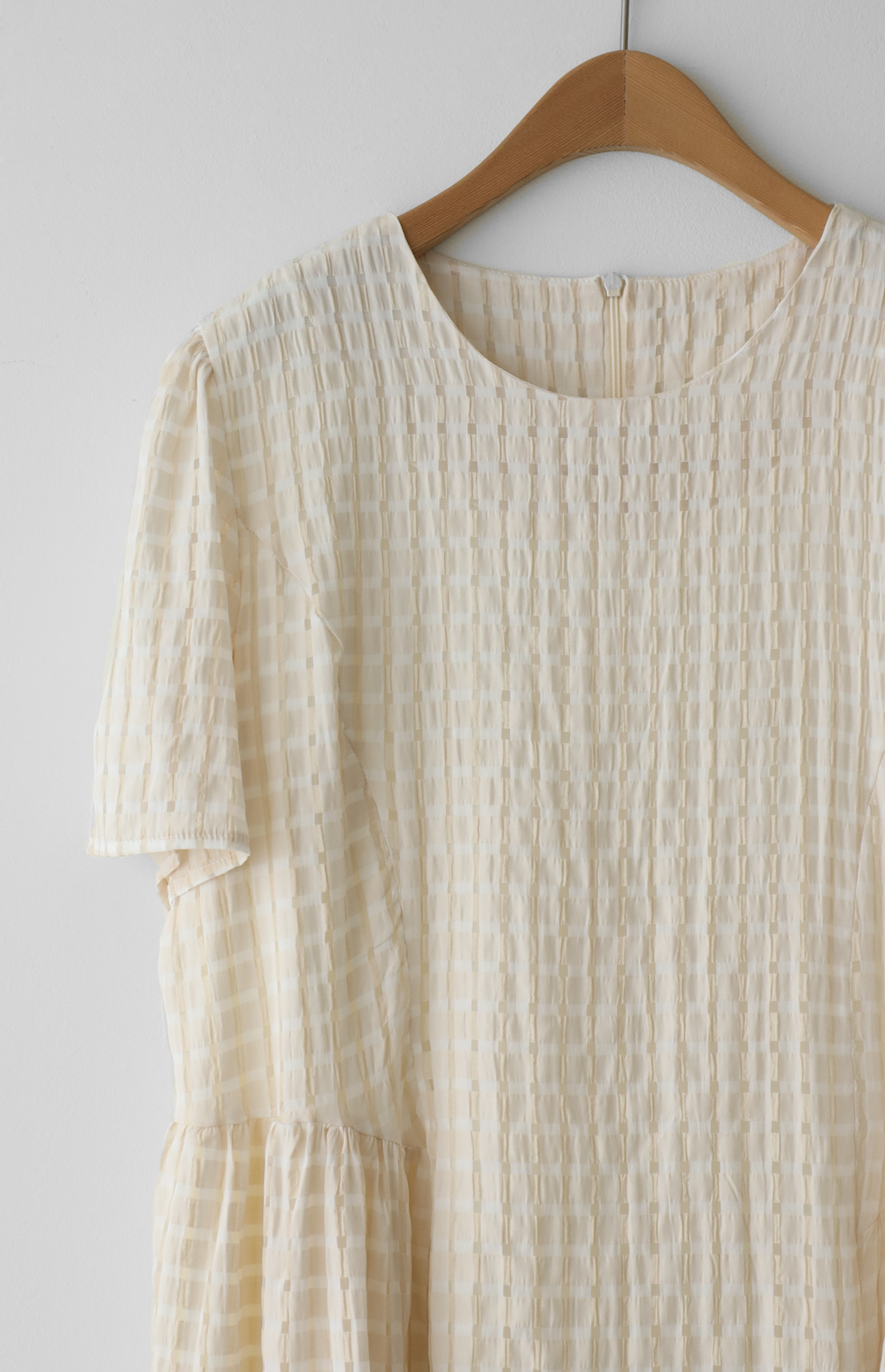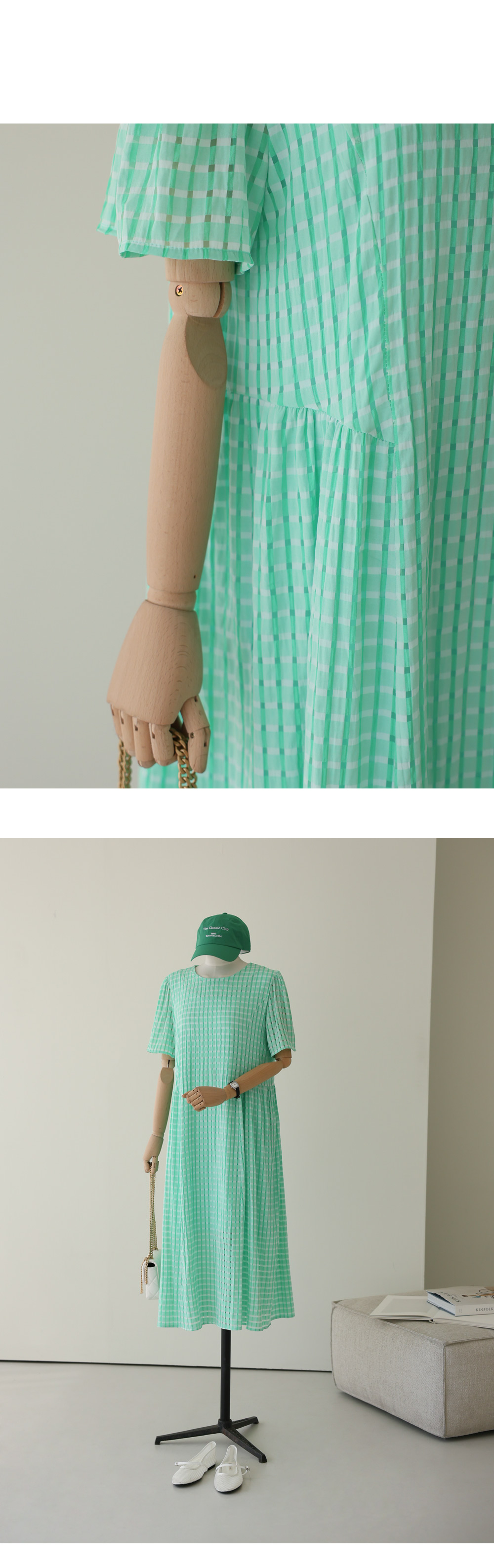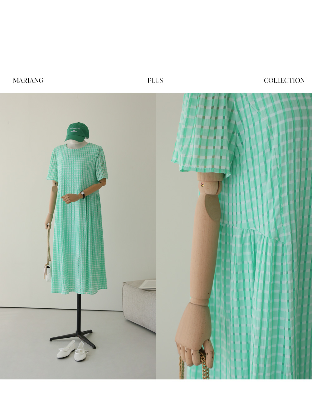 한 벌만으로도 충분히 갖춰 입은 느낌을 주는 이번 원피스는 은은하면서도 고급스러운 체크 패턴을 베이스로, 어깨와 허리 라인에 셔링 디테일을 더해 입체적인 실루엣을 완성했답니다.