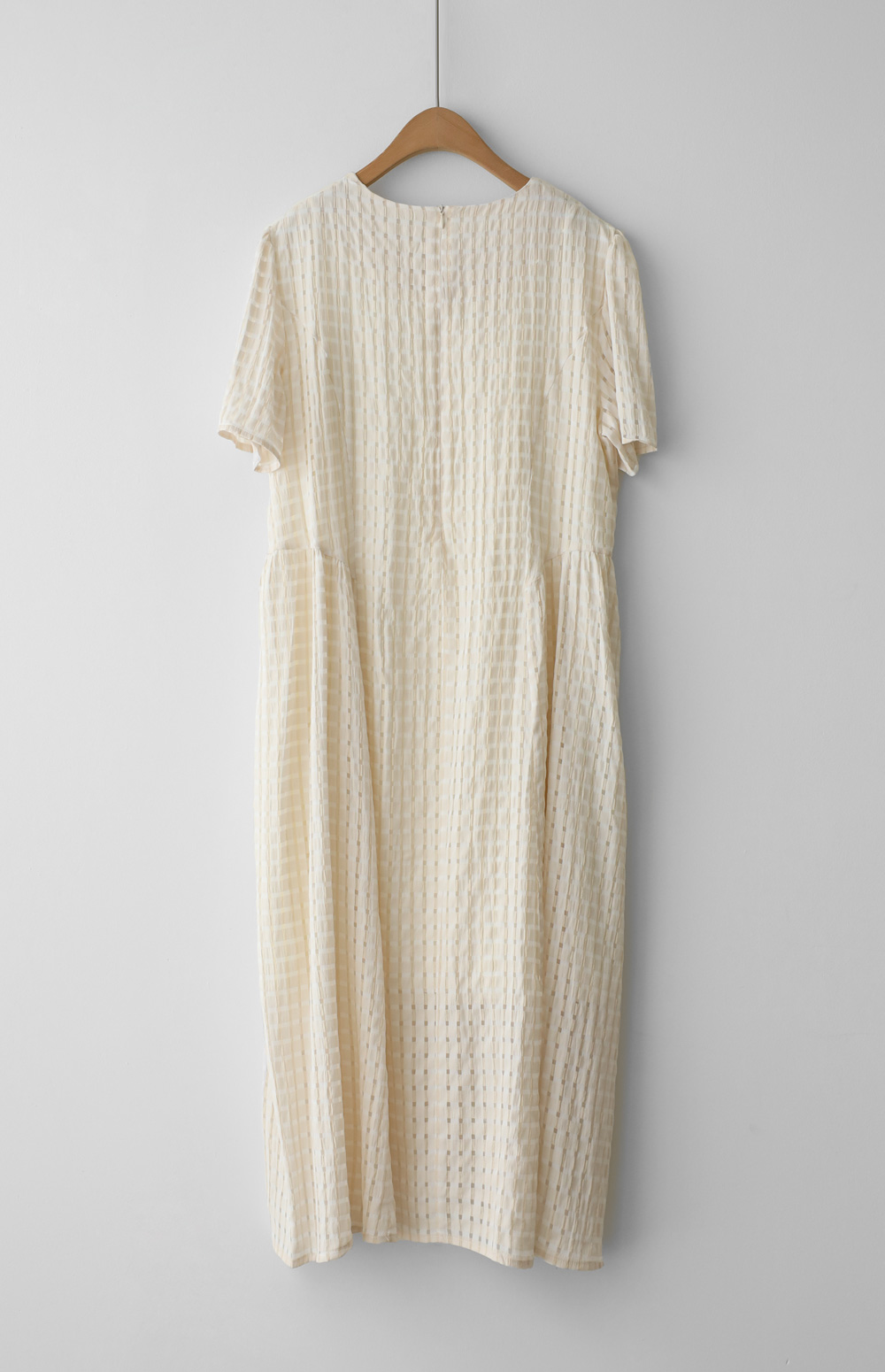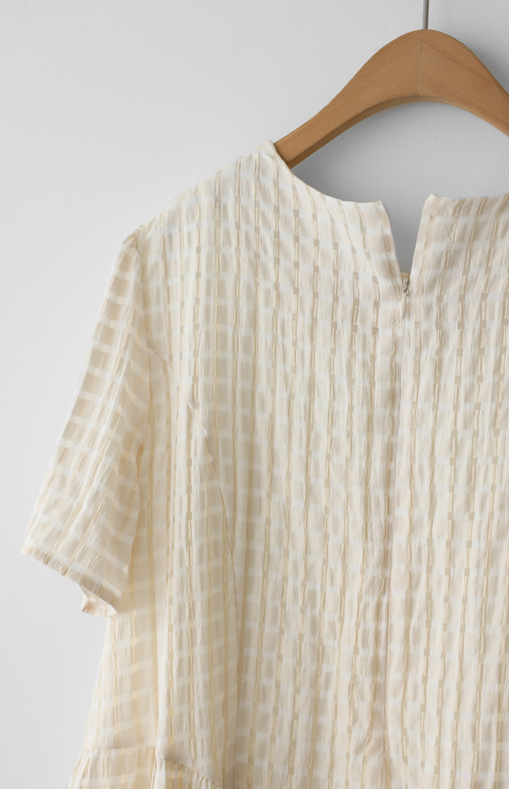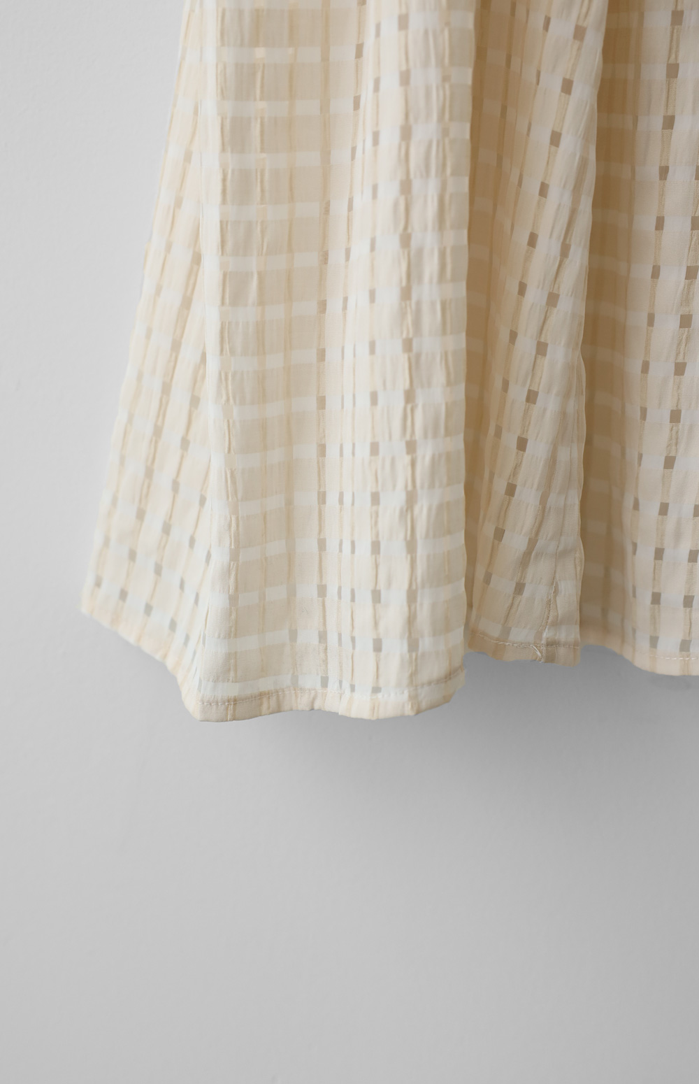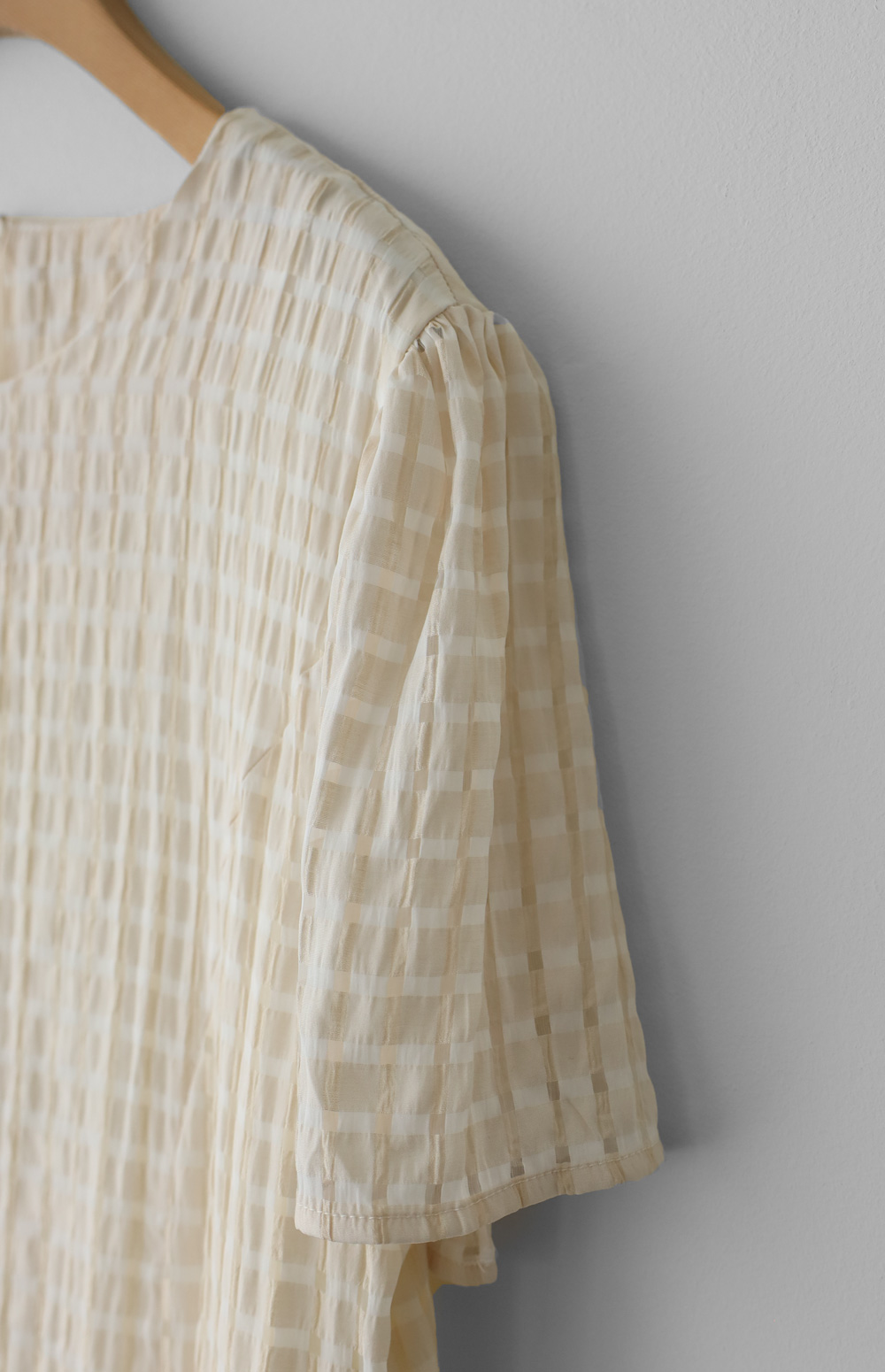 한 벌만으로도 충분히 갖춰 입은 느낌을 주는 이번 원피스는 은은하면서도 고급스러운 체크 패턴을 베이스로, 어깨와 허리 라인에 셔링 디테일을 더해 입체적인 실루엣을 완성했답니다.