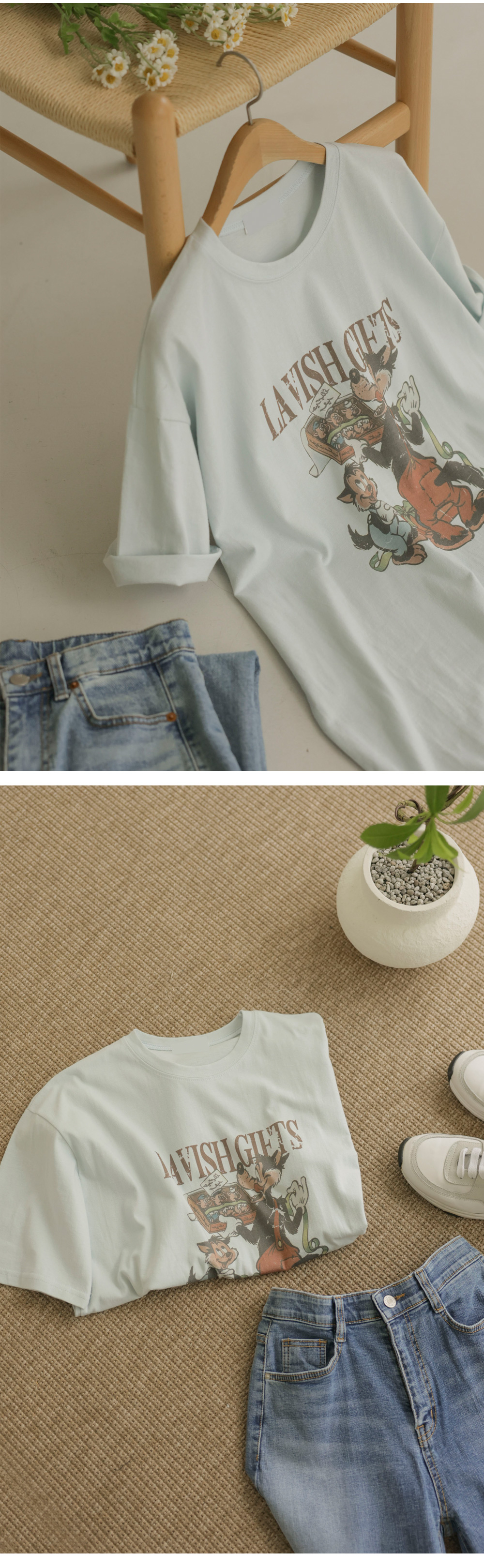 사랑스럽고 귀여운 감성을 한 방울 더한 캐릭터 반팔 티셔츠를 소개해 드려요. 이번 상품은 깔끔한 라운드넥 디자인을 베이스로 전면에 위트 있는 캐릭터 프린팅을 배치하여 단독 착용만으로도 충분한 존재감을 발휘하는데요. 얇고 가벼운 두께감 덕분에 통기성이 무척 뛰어나 한여름에도 피부에 붙지 않고 시원하게 입으실 수 있구요, 전체적으로 원단이 탄탄하게 중심을 잡아주어 세탁 후에도 변형 걱정을 덜어드리는 기특한 아이템이랍니다.