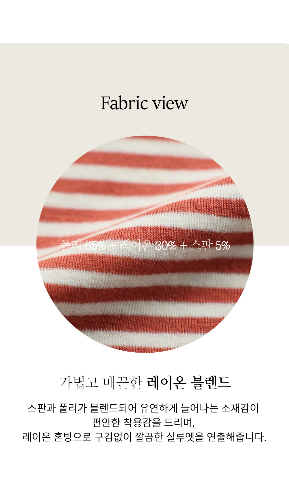 부드러움의 대명사인 레이온과 복원력이 뛰어난 폴리에스터, 그리고 탄성 좋은 스판을 최적의 비율로 혼방하여 제작했어요. 피부에 닿는 감촉이 실크처럼 보드라워 예민하신 분들도 자극 없이 착용하실 수 있는데요. 찰랑찰랑하게 아래로 떨어지는 소재 특유의 드레이프성이 몸의 곡선을 부드럽게 감싸주며, 스판 함유로 쭉쭉 늘어나는 신축성이 있어 큰 동작에도 불편함이 없답니다. 얇지만 비침이 적고 탄탄하게 조직된 원단이라 여러 번 착용해도 변형이 적은 고퀄리티 소재예요. ![]() MD가 답하는 안심 Q&A
