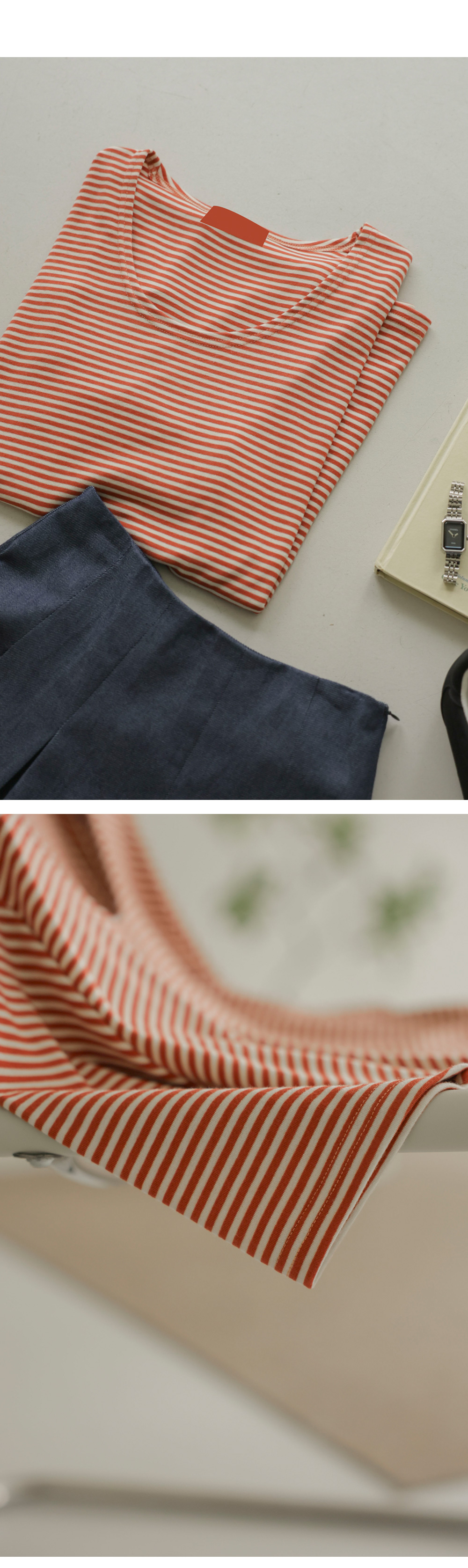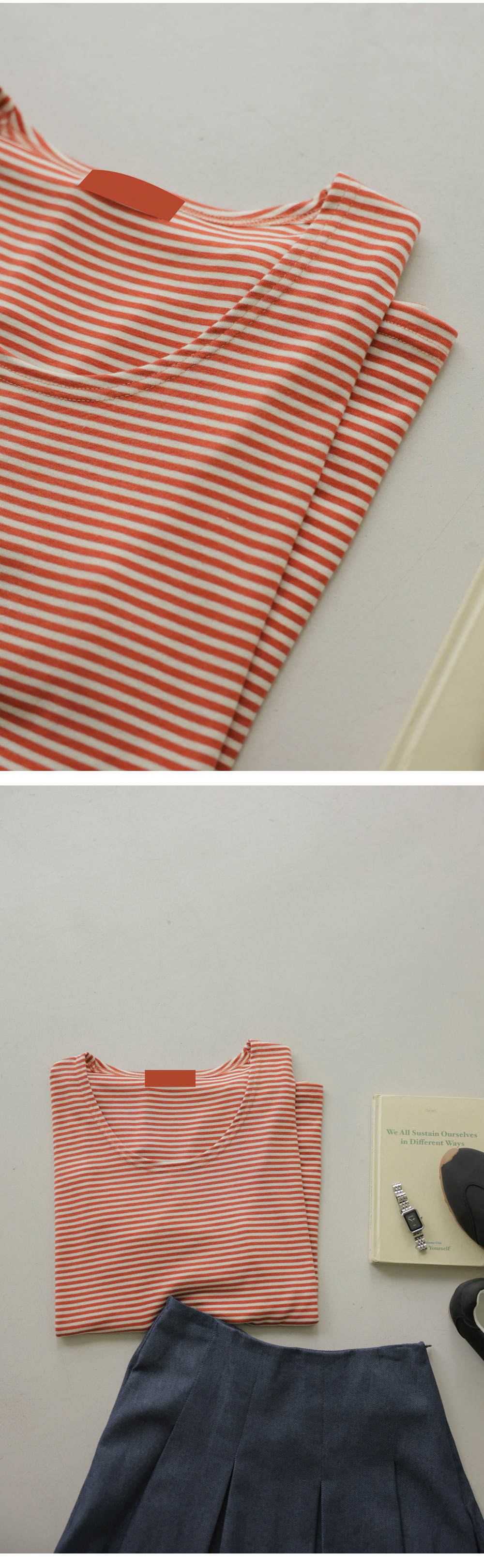 세련된 감각과 편안함을 동시에 잡은 보트넥 단가라 반팔 티셔츠 아이템을 소개해 드려요. 이번 상품은 가로로 넓게 트인 보트넥 디자인이 쇄골 라인을 은은하게 드러내어 여성스러움을 극대화해 주는데요. 보드라운 원단 덕분에 피부에 닿는 감촉이 무척 매끄럽고, 몸의 움직임에 따라 유연하게 늘어나 활동량이 많은 날에도 정말 편안하게 즐기실 수 있구요. 깔끔한 단가라 패턴이 시선을 분산시켜 주어 전체적인 실루엣이 한결 슬림해 보인답니다.