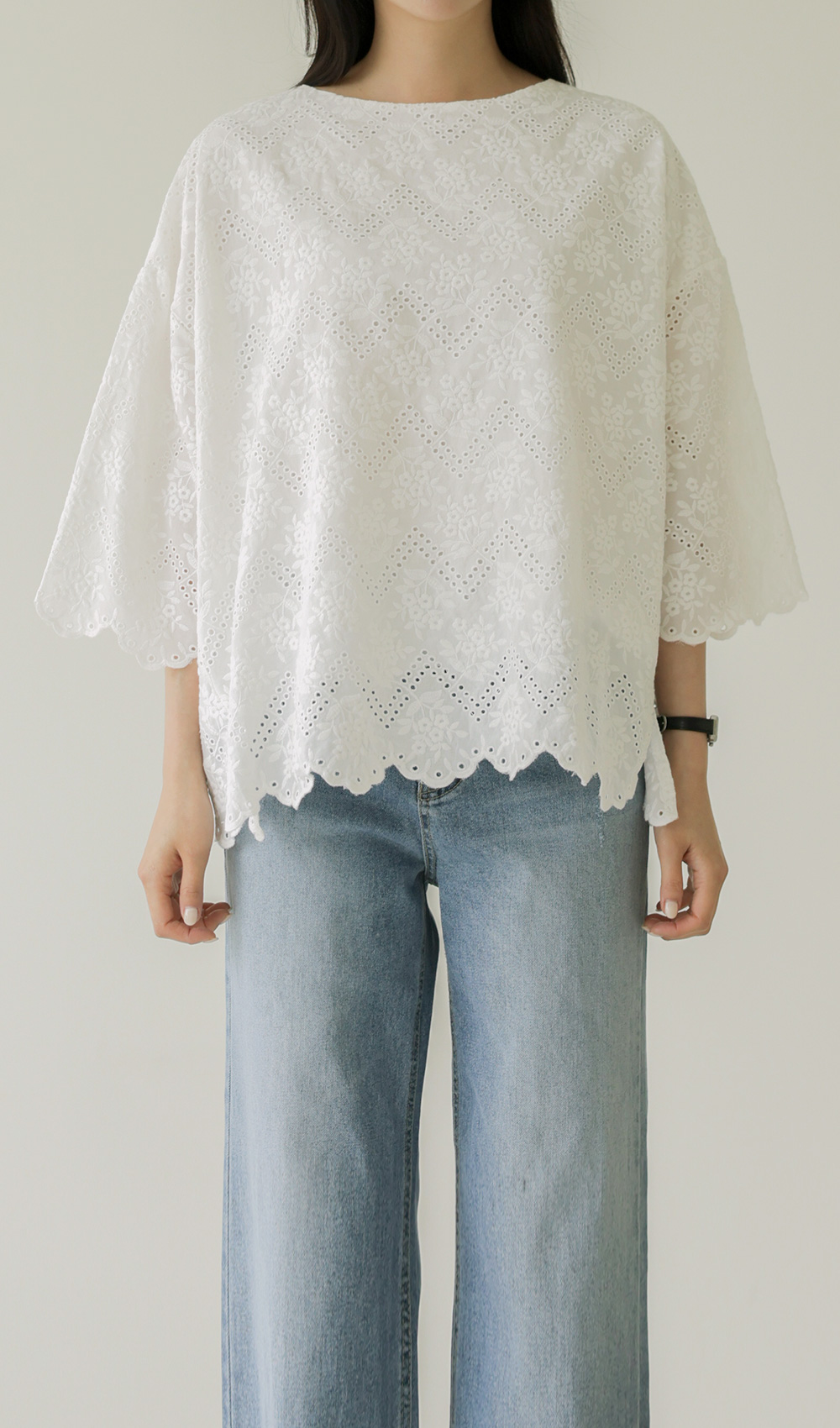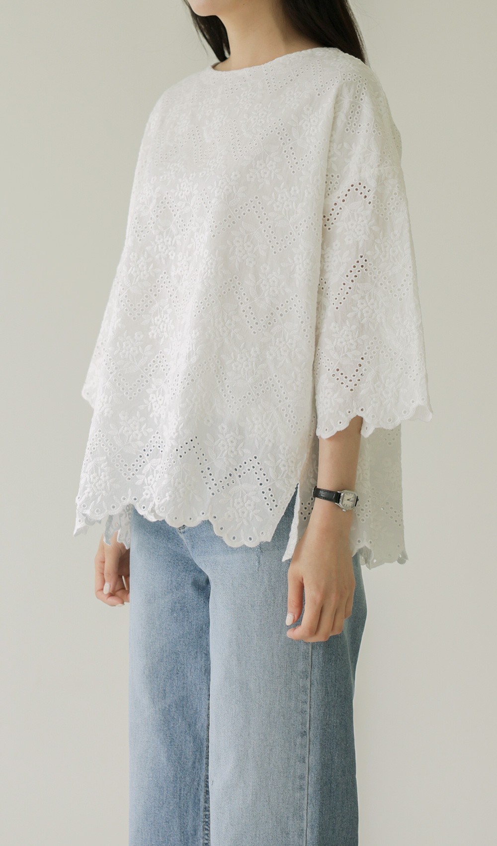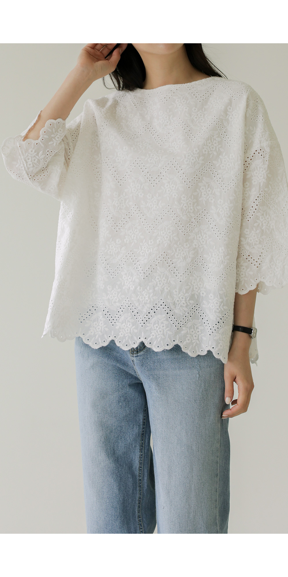 네노셀 펀칭자수 블라우스 _ 아이보리
