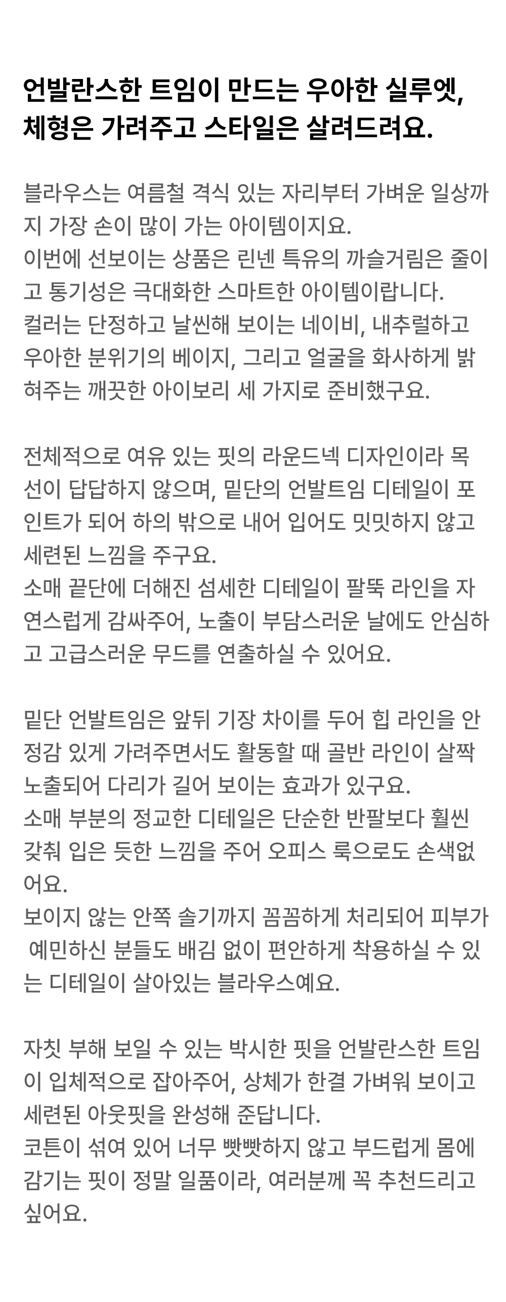 개인의 조명과 모바일, 모니터 환경에 따라 색상차이가 있을 수 있습니다.