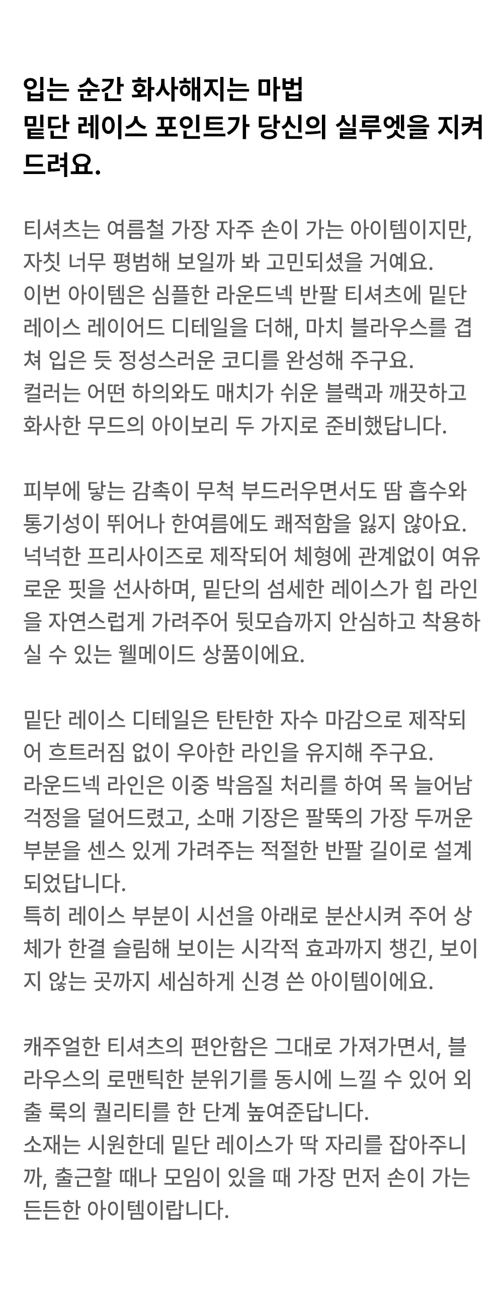 안감 없음   /    비침 비침(레이스)   /    신축성 좋음(티셔츠)