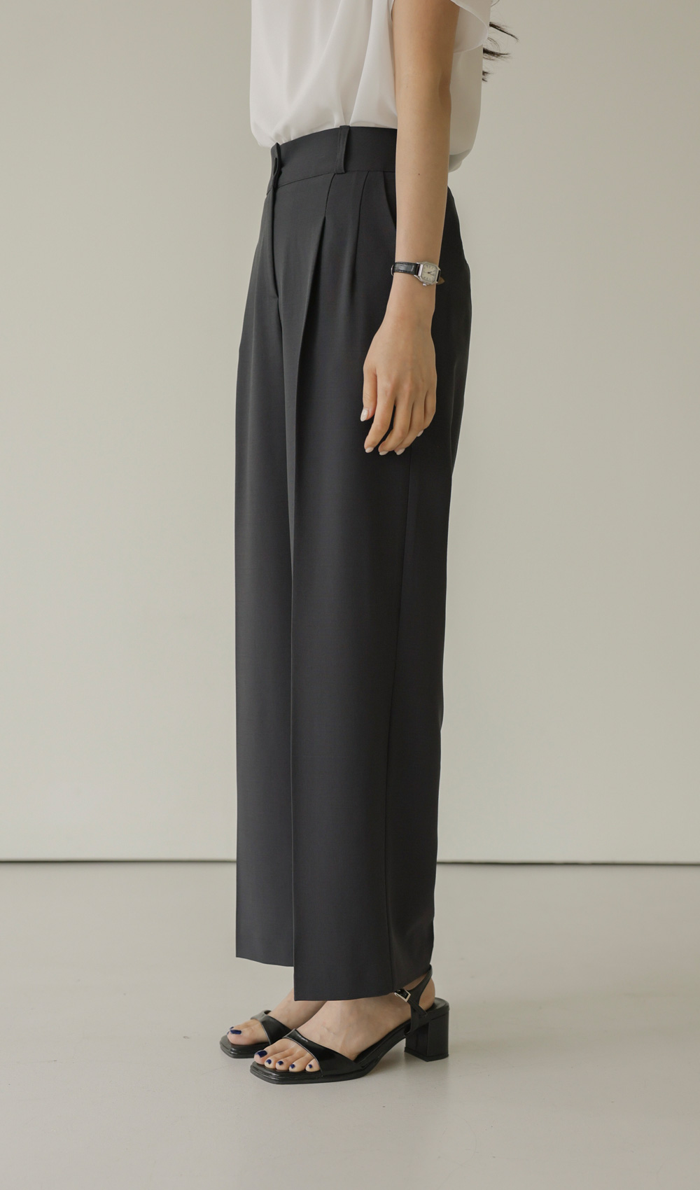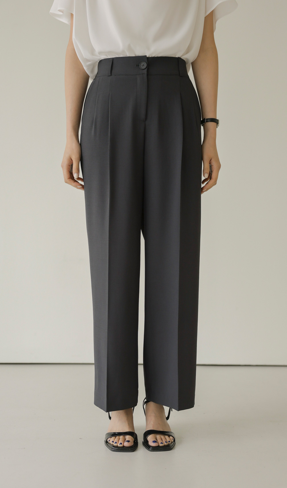 티자나 여유일자 팬츠 _ 차콜,블랙