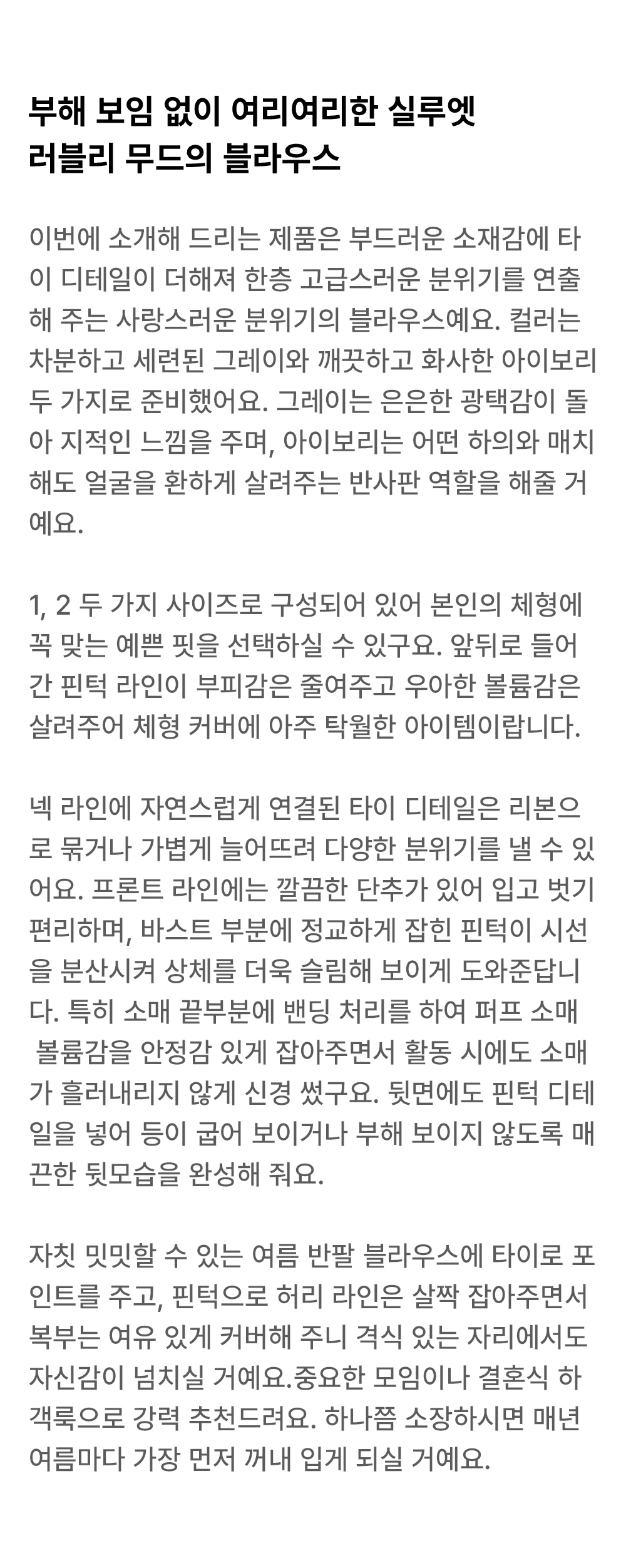 소매핏 살짝여유  /   소매길이 4부