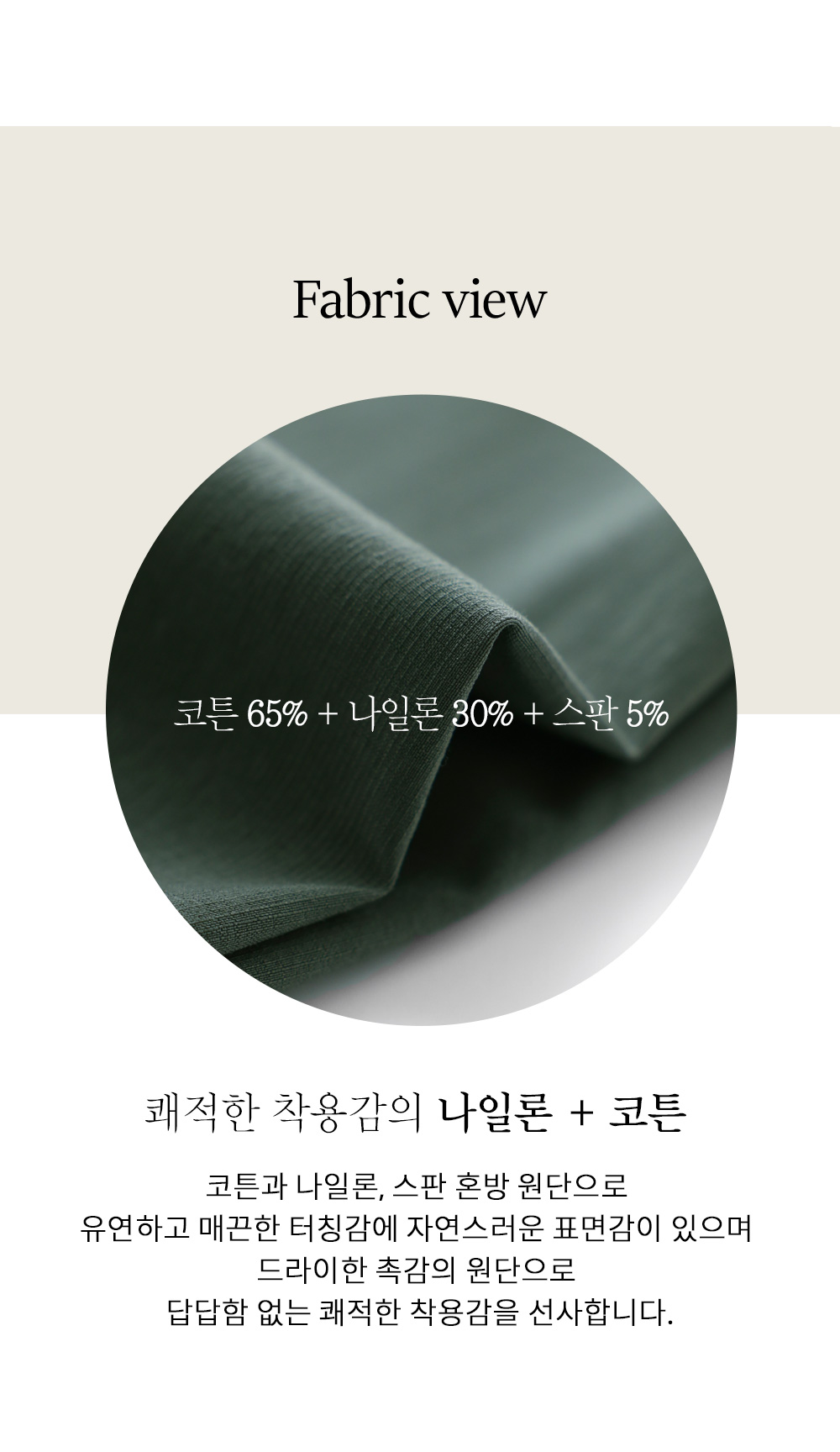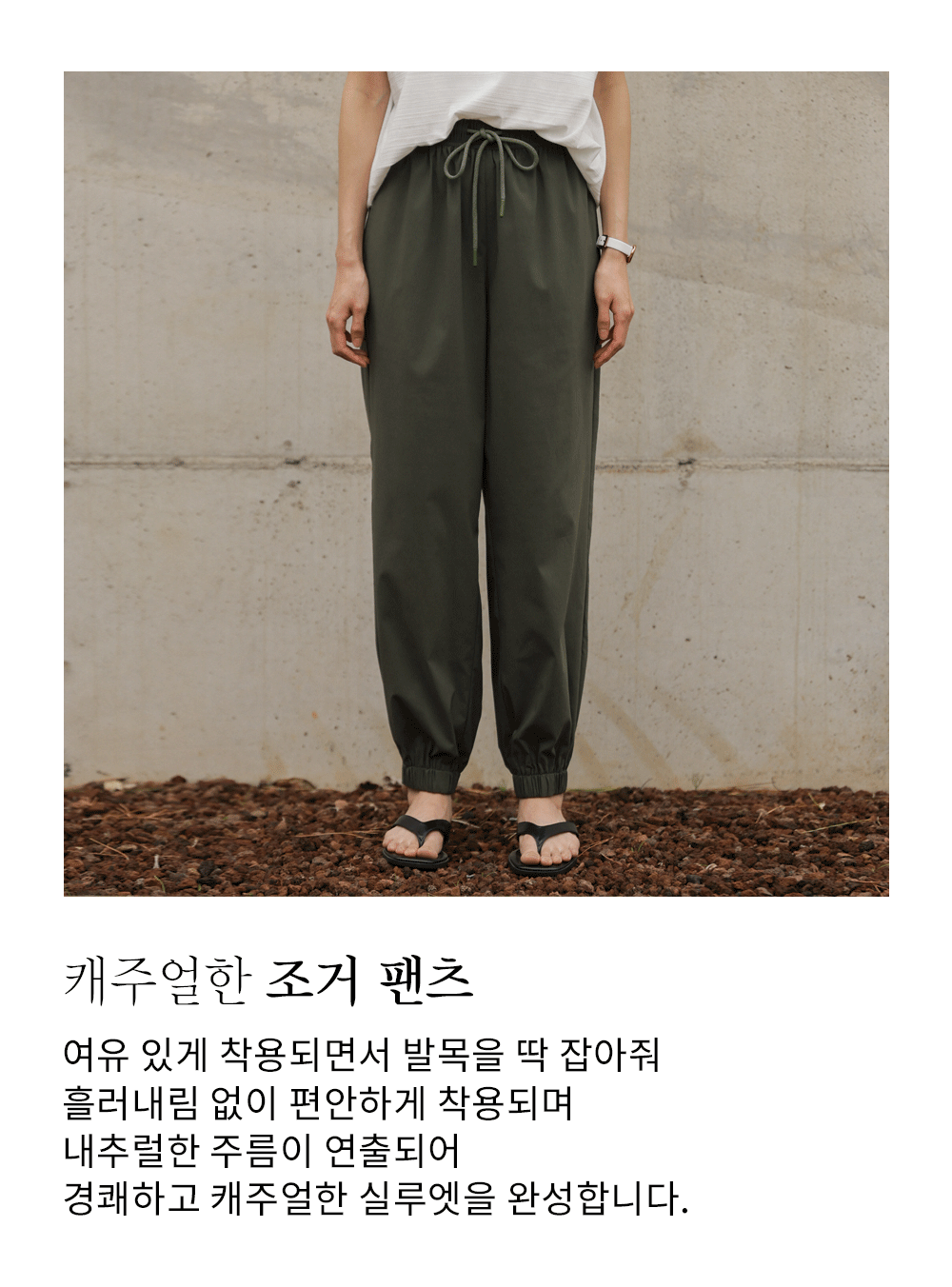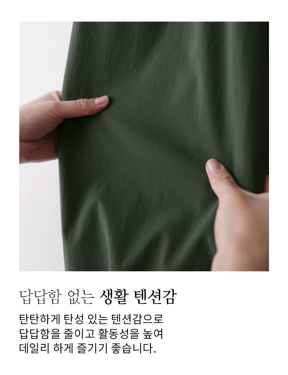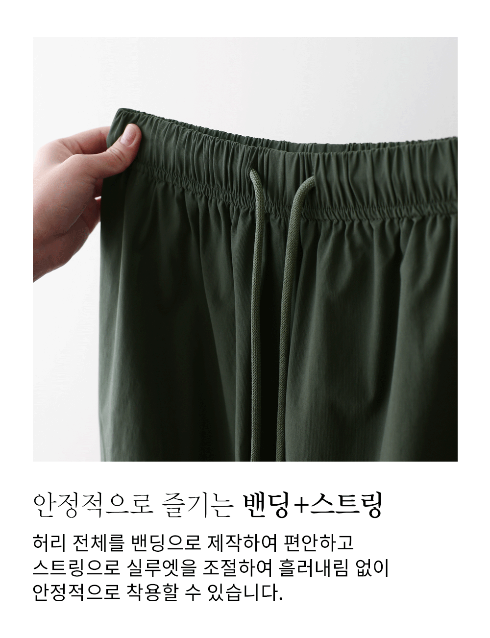 나일론과 코튼, 그리고 스판이 적절하게 혼방되어 가볍고 바스락거리는 쾌적함을 선사해요. 원단 표면에 은은한 결이 살아있어 시각적으로 고급스러우며, 신축성이 매우 뛰어나 무릎 나옴이나 형태 변형 걱정 없이 탄탄하게 입으실 수 있답니다. 몸에 달라붙지 않는 매끄러운 터칭감 덕분에 땀이 나는 날에도 쾌적한 착용감을 오래도록 유지해 주는 소재예요. ![]() 핏 가이드 보러가기→ 밴딩 가이드 보러가기→ ![]() MD가 답하는 안심 Q&A