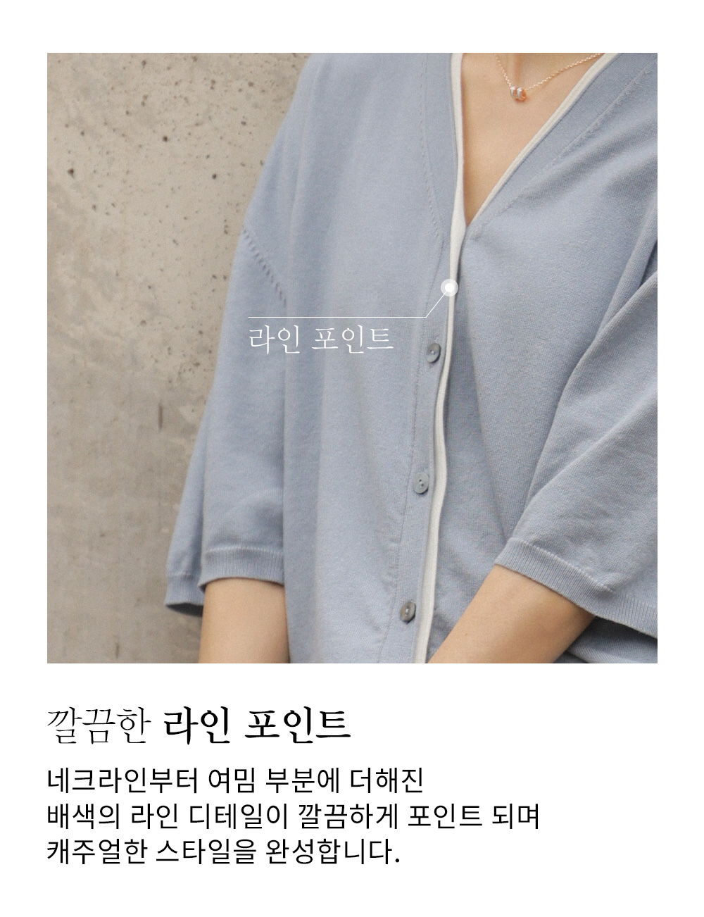 이 가디건의 매력 포인트는 바로 소재가 주는 '소프트한 터칭감'과 '배색의 조화'에 있어요. 피부가 예민하신 분들도 부담 없이 입으실 수 있을 만큼 부드러우며, 배색 라인이 주는 고급스러운 포인트가 별도의 액세서리 없이도 룩의 완성도를 꽉 채워주는 한 끗을 선사해요.