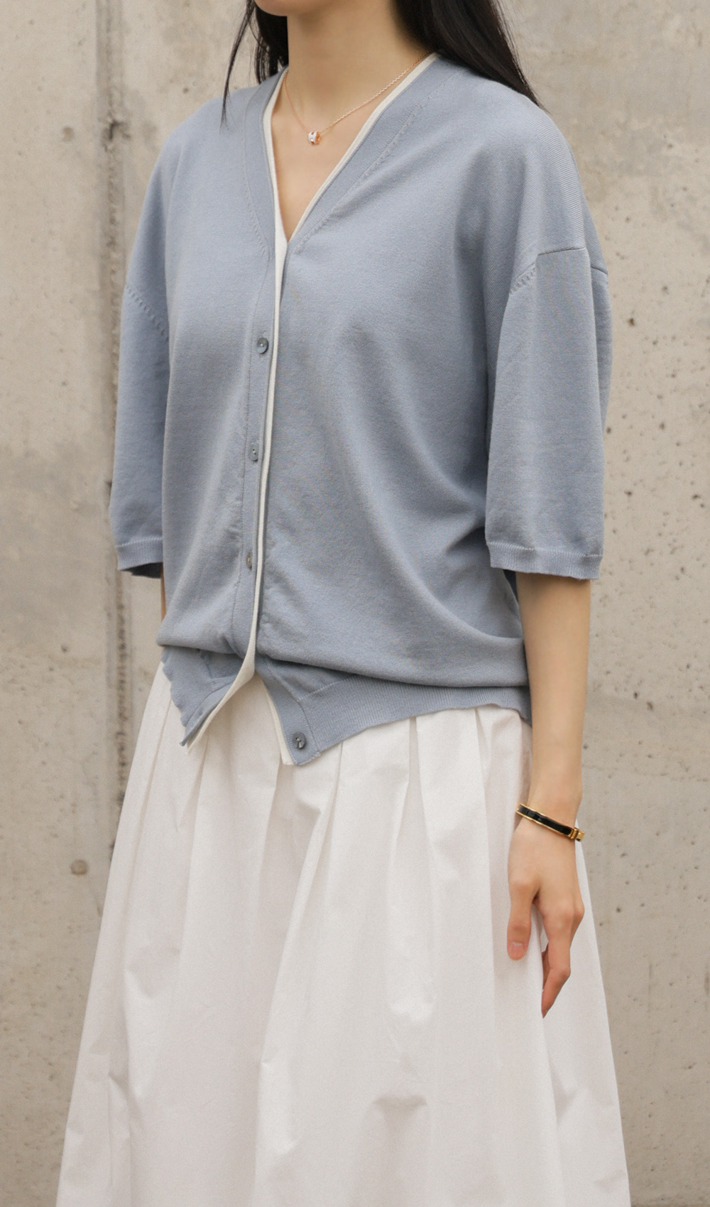 • Q:가디건을 입었을 때 어깨가 너무 딱딱하거나 부해 보이면 어쩌죠?