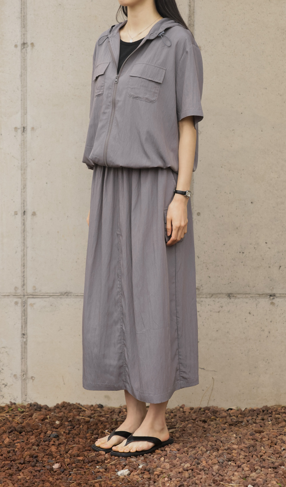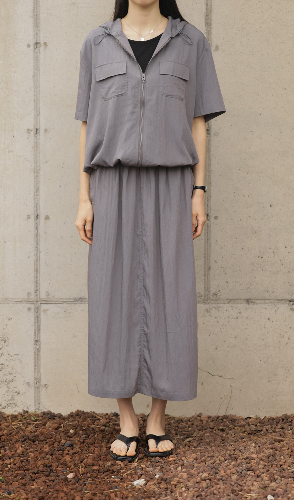 후디업 스커트 세트 _ 차콜,블랙