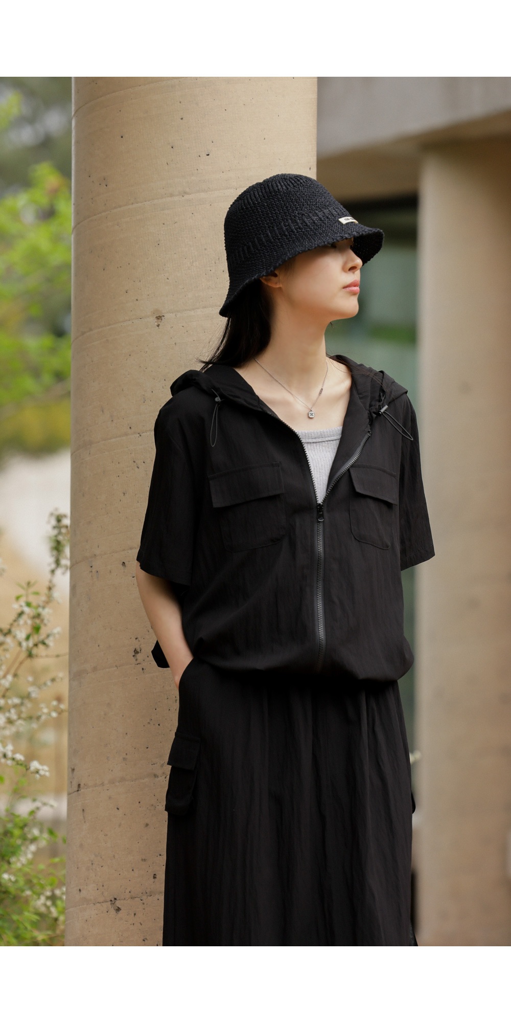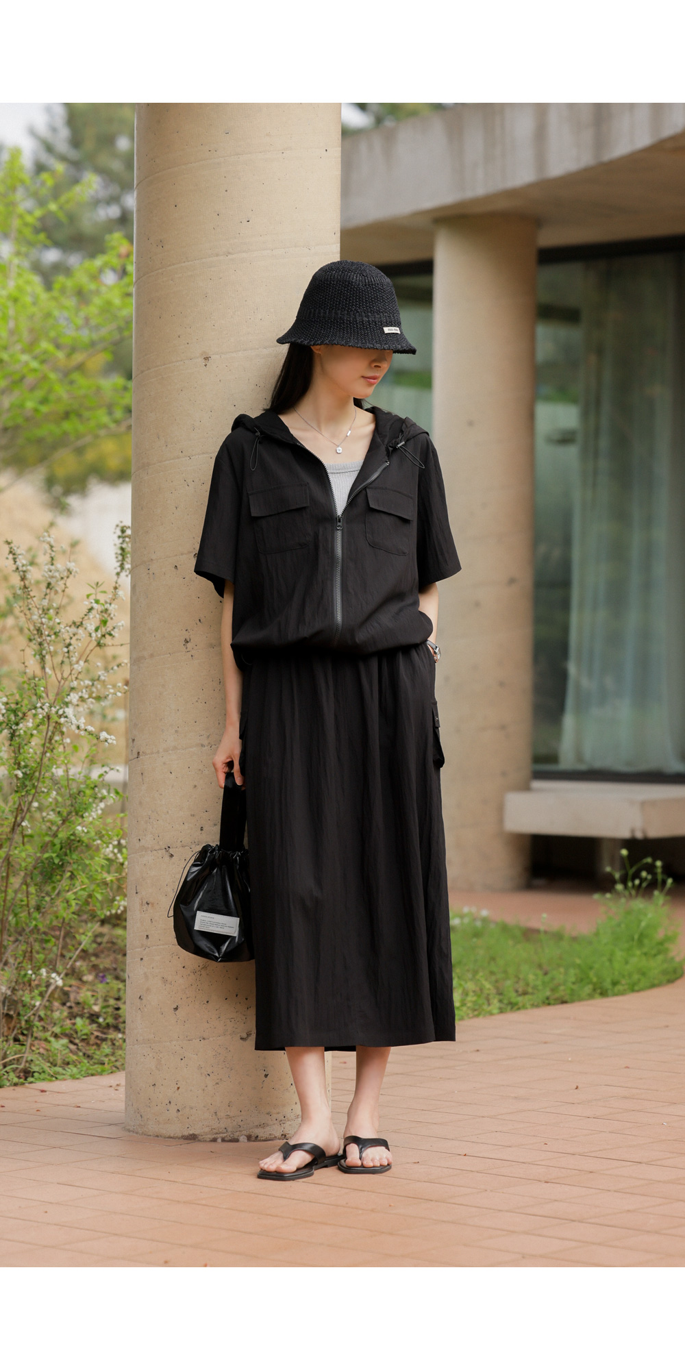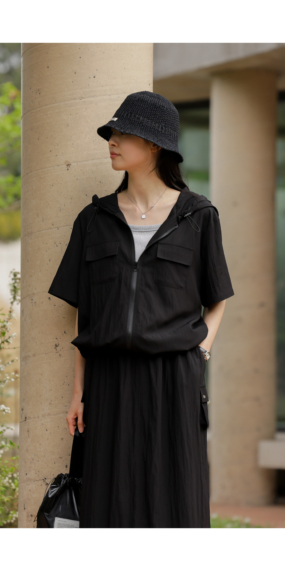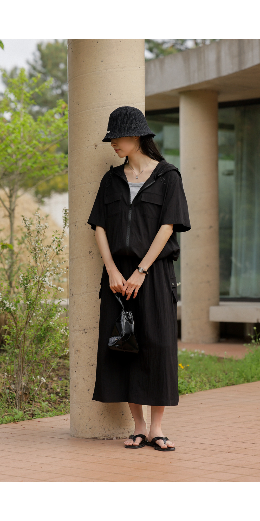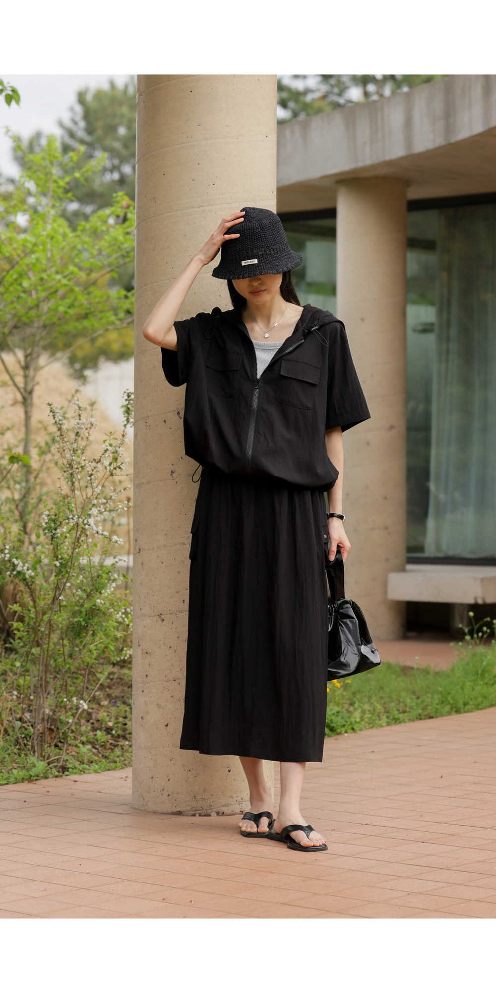 나시 아이템은 단독보다는 셔츠나 블라우스, 가디건 속에 받쳐 입는 이너로서의 역할이 가장 크죠. 이번 제품은 이너로서의 본분에 충실하면서도, 은은한 골지 텍스처를 더해 겉옷 사이로 살짝 비칠 때 더욱 세련된 무드를 완성해 준답니다.