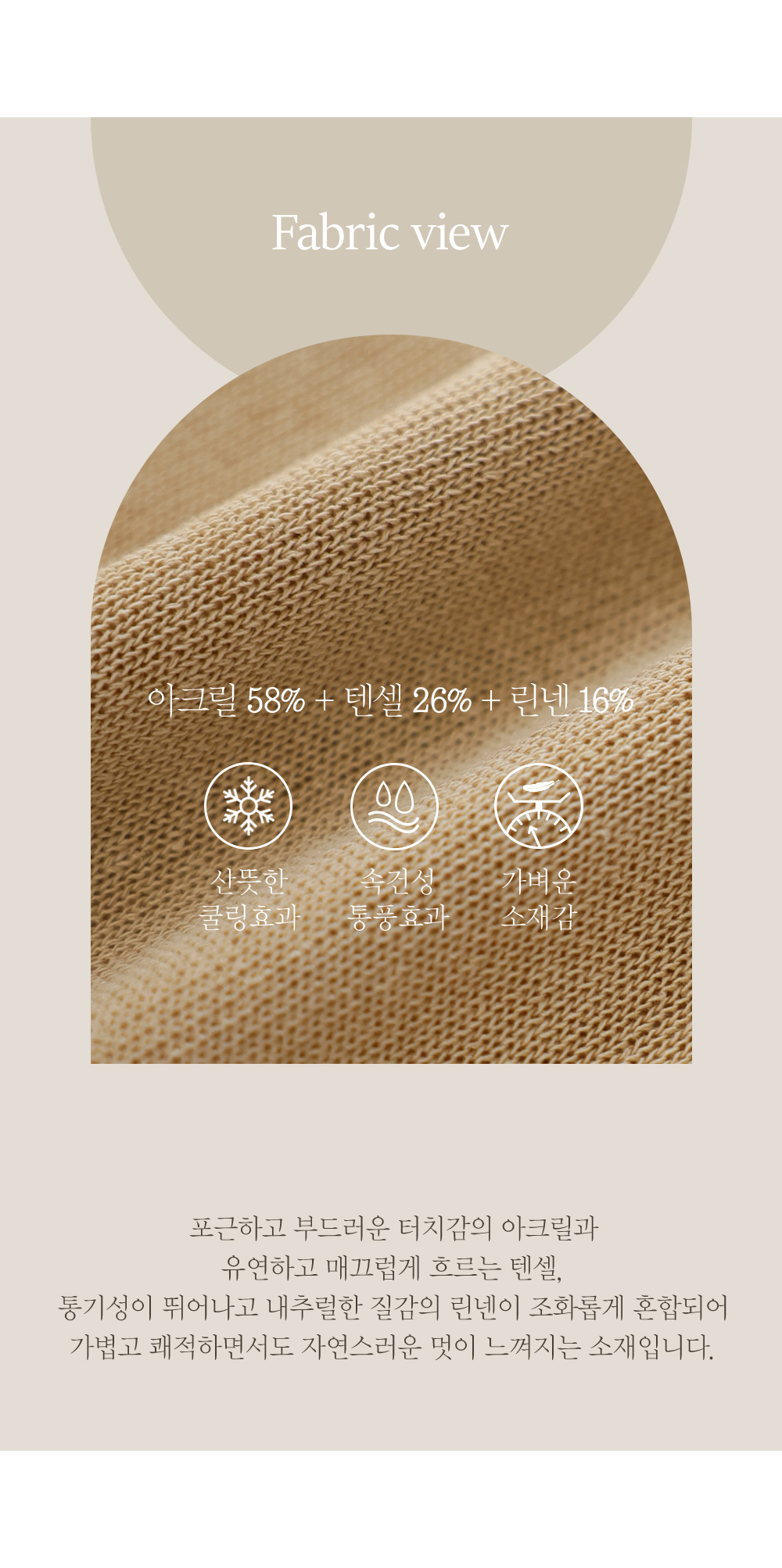 아크릴58%,텐셀26%,린넨16%
