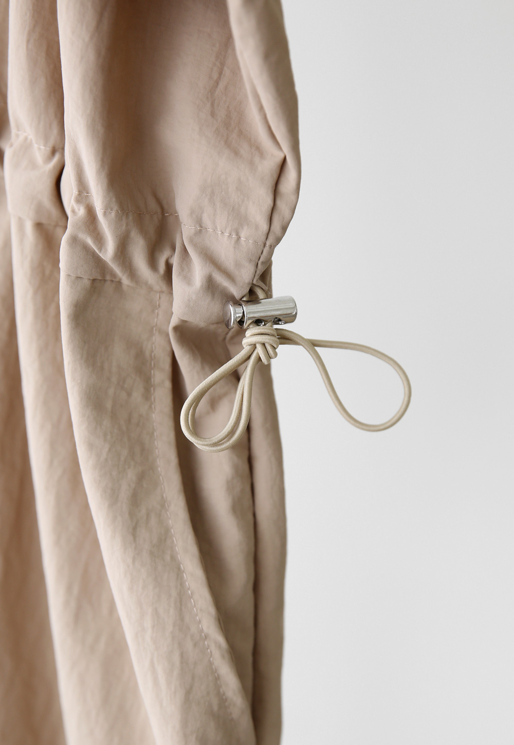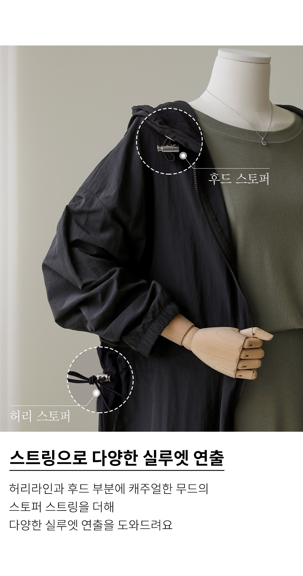 르엔지 스트링 점퍼 바스락 거리는 터칭감으로간절기에 가볍게 즐기기 좋은 사파리 점퍼를 소개할게요 :) 바삭바삭 가볍고 경쾌한 터칭감의 나일론 소재감으로 제작되었어요. 힘 있게 떨어지면서 군살이 드러나지 않아 인기 있는 소재감으로, 간절기 시즌에 꼭 하나쯤은 소장하시길 추천 드려요~ 박시한 오버핏으로 착용되는 점퍼로 이너 구애가 적어서 활용도가 좋구요, 허리 라인에 스트링이 스토퍼 디테일과 함께 잡혀 있어 실루엣을 편안하게 잡아주고 고정이 손쉬워 슬림한 라인을 즐길 수 있어요. 또 스트링 라인이 높이 잡혀 있어서 비율까지 좋아 보이는 효과가 있답니다 :) 후드로 캐주얼한 감성을 더하고, 소매는 밴딩으로 실루엣을 잡아줬어요. 캐주얼하고 시크한 감성으로 멋스럽게 즐기는 아우터랍니다. FREE 사이즈로 제작되었습니다.