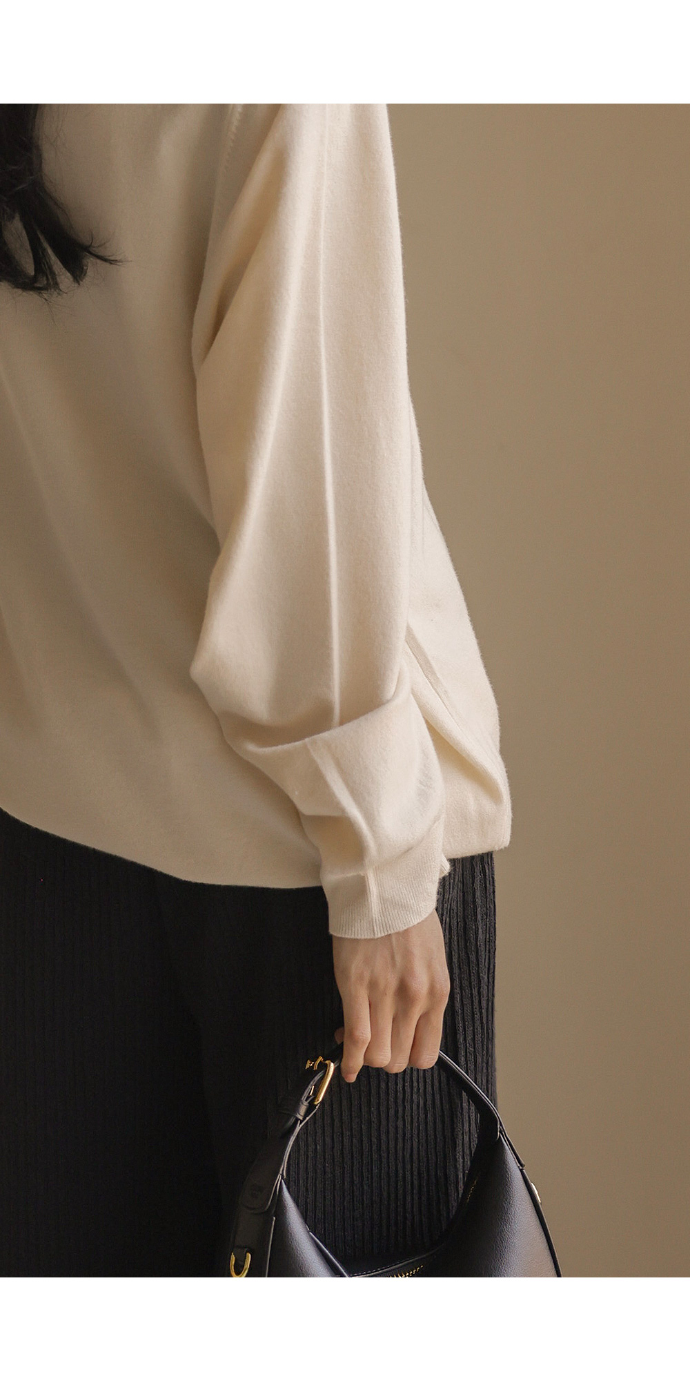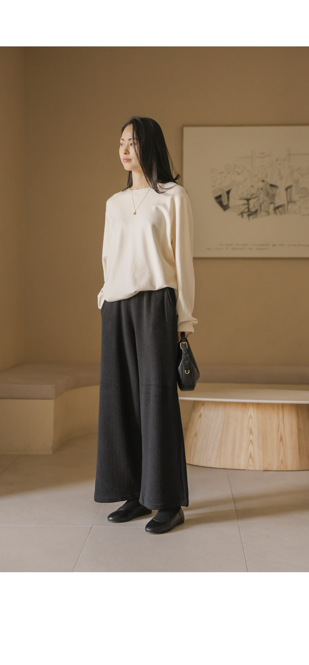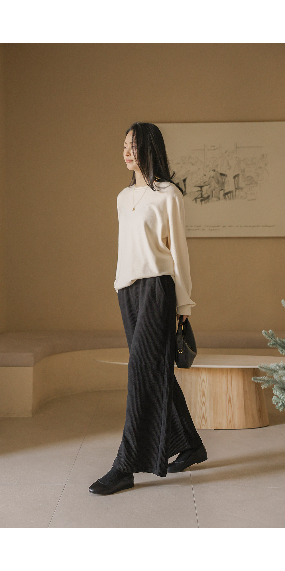 포그램 캐시미어 니트 _ 아이보리이보르 여유일자 팬츠 _ 블랙