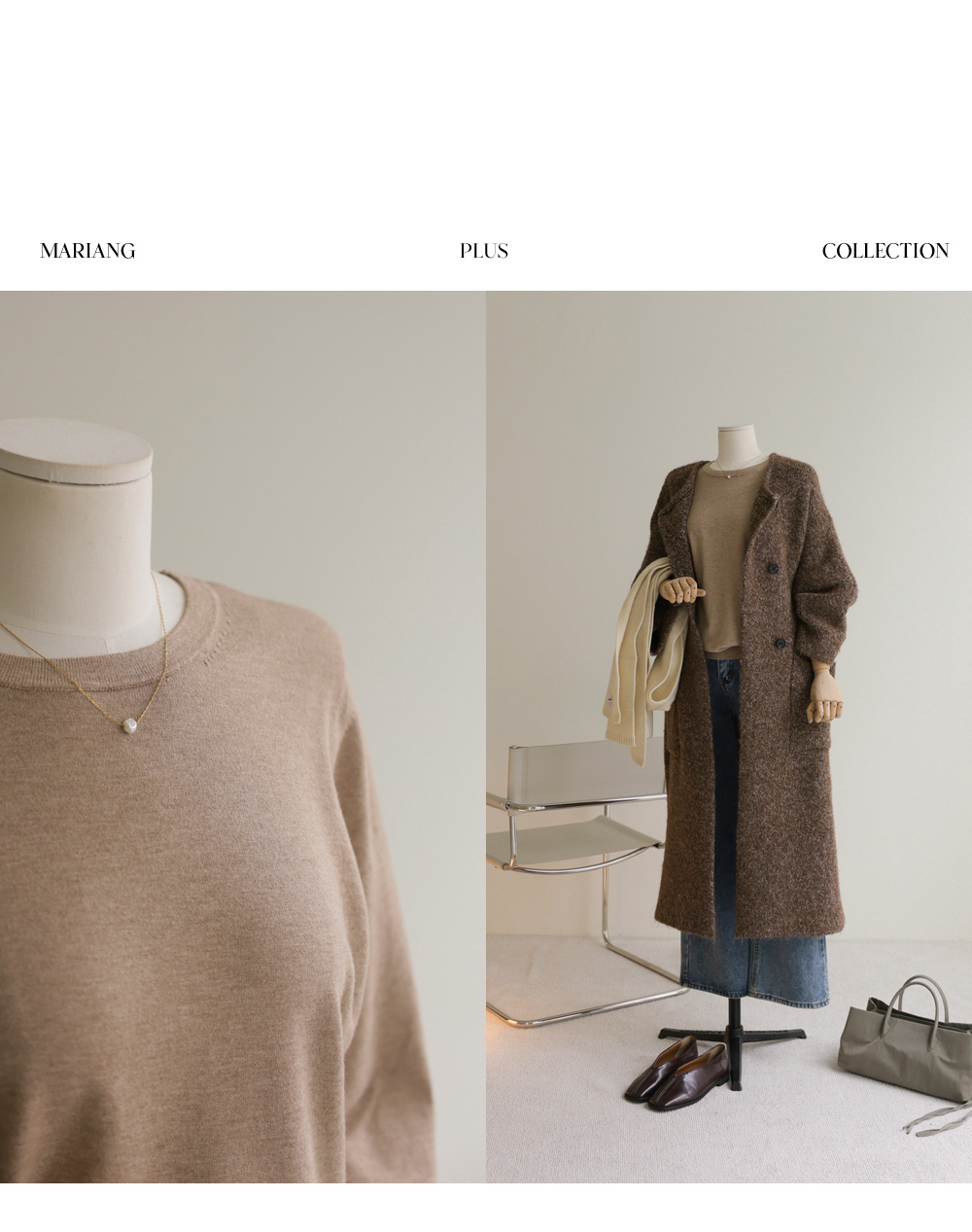 포그램 캐시미어 니트 캐시미어 혼방소재감으로 부드러운 촉감이기분좋은 착용감을 드리는 니트에요 자연스럽게 바디라인을 감싸주면서 부담스럽지 않게 체형을 커버해주는 실루엣으로 부해보이지 않으면서 날씬해보이는 아이템이에요 톤다운된 다양한 컬러구성이 다가오는 가을,겨울 시즌에 어울려 여러 개 소장하셔도 활용가치가 높은 아이템이랍니다 베이직한 디자인과 실루엣으로 데일리로 즐기기 좋아 하나쯤 꼭 소장하시는 걸 추천드려요 정사이즈로 제작되었습니다.