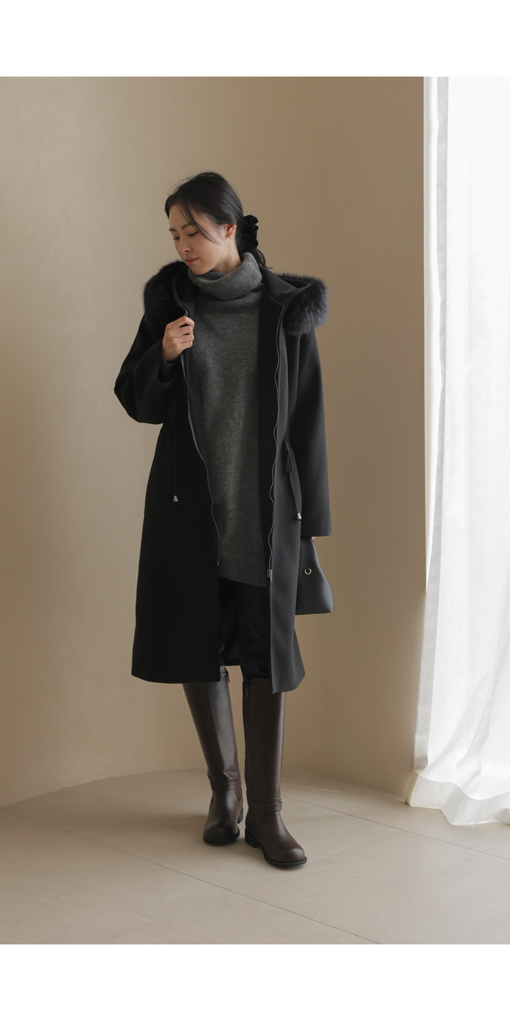 코디정보 시다비 후드 코트 _ 블랙베르컨 폴라 울니트 _ 차콜 제플리 부츠컷 팬츠 _ 다크데님