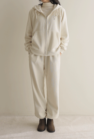 코디정보 에뚜플 패딩조끼 _ 크림주피나 후드 울니트 _ 베이지 프리트 여유배기 팬츠 _ 데님